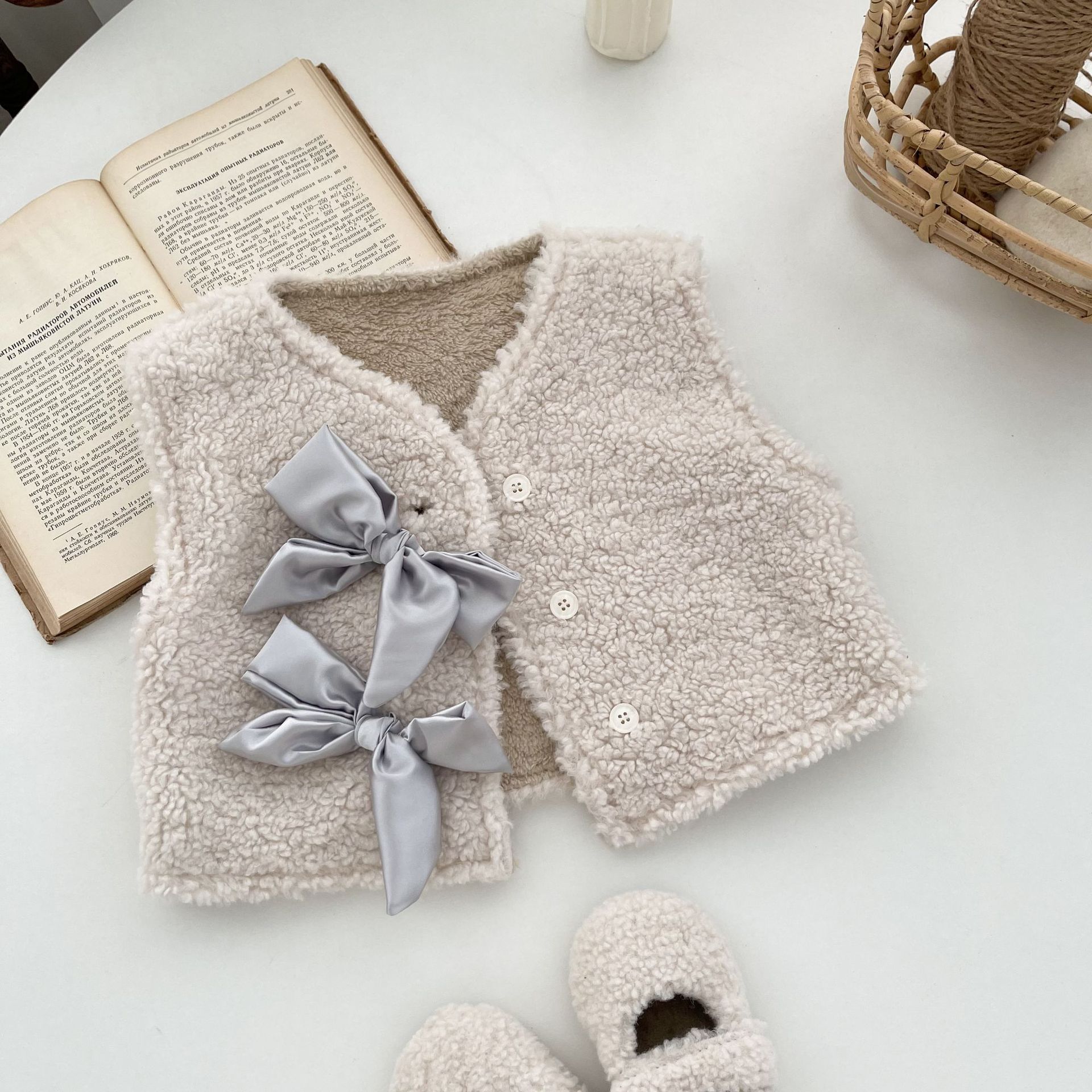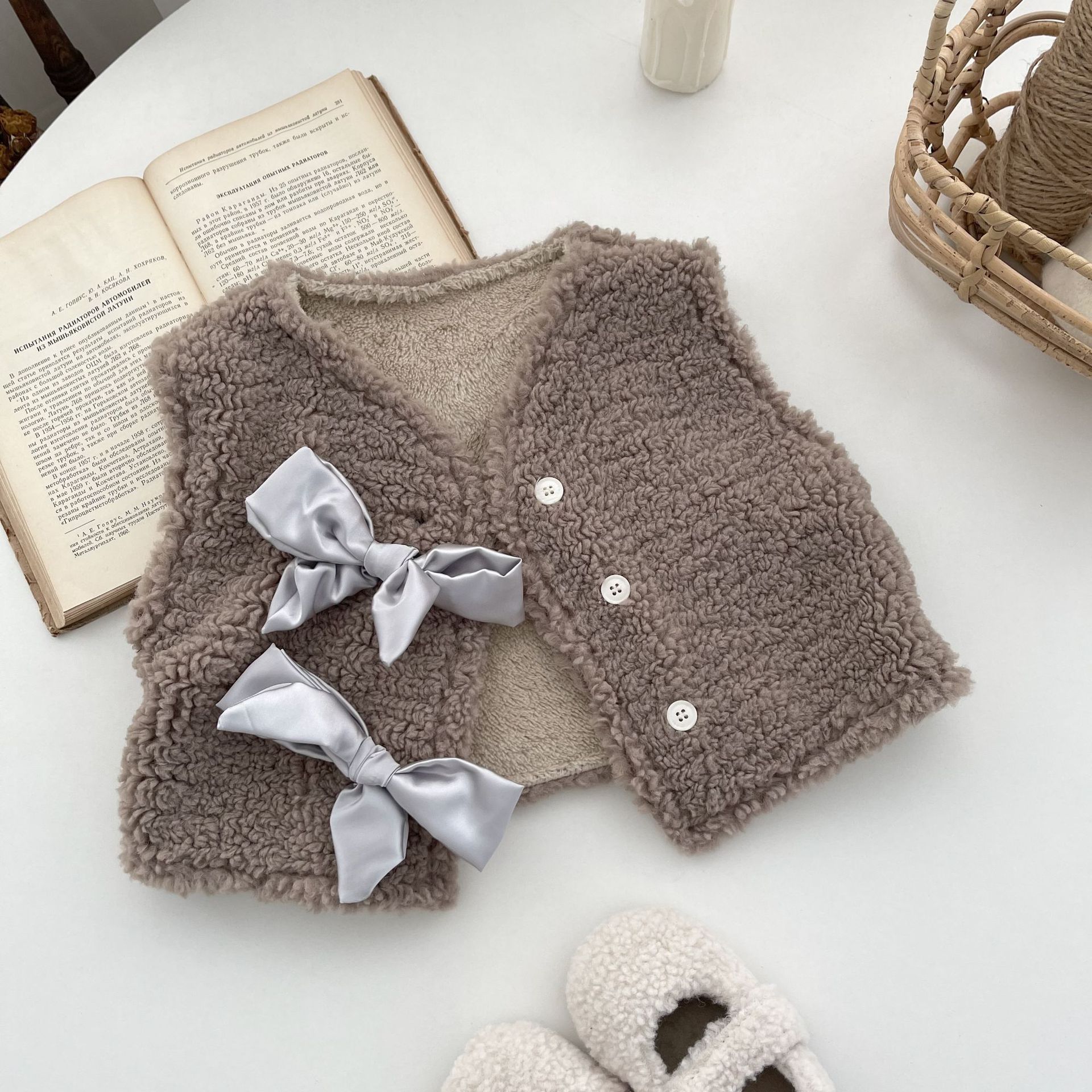 INS 가을과 겨울 아기 더블 플러시 따뜻한 양복 조끼 아기 여성 빈티지 활 민소매 재킷