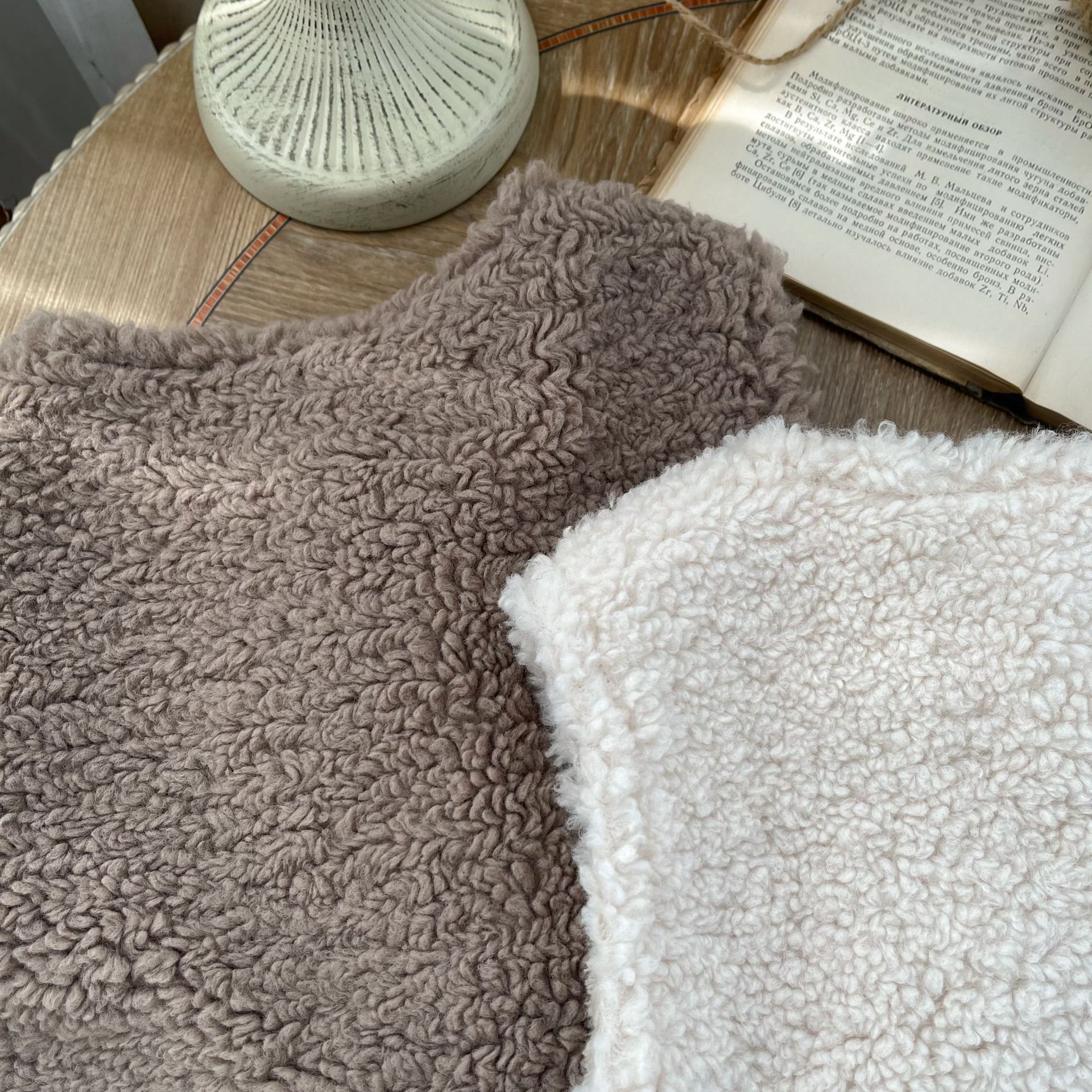 • 베이지 플러시 나비 조끼-더블 레이어 벨벳