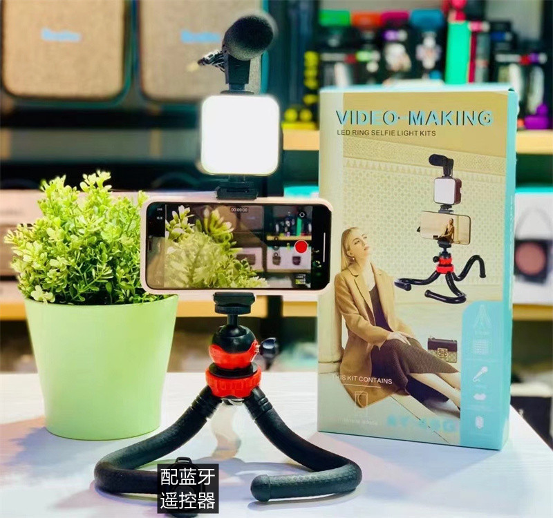 휴대 전화 라이브 셀카 뷰티 라이트 삼각대 LED 채우기 빛 PTZ 데스크탑 마이크 라이브 방송 휴대 전화 브래킷