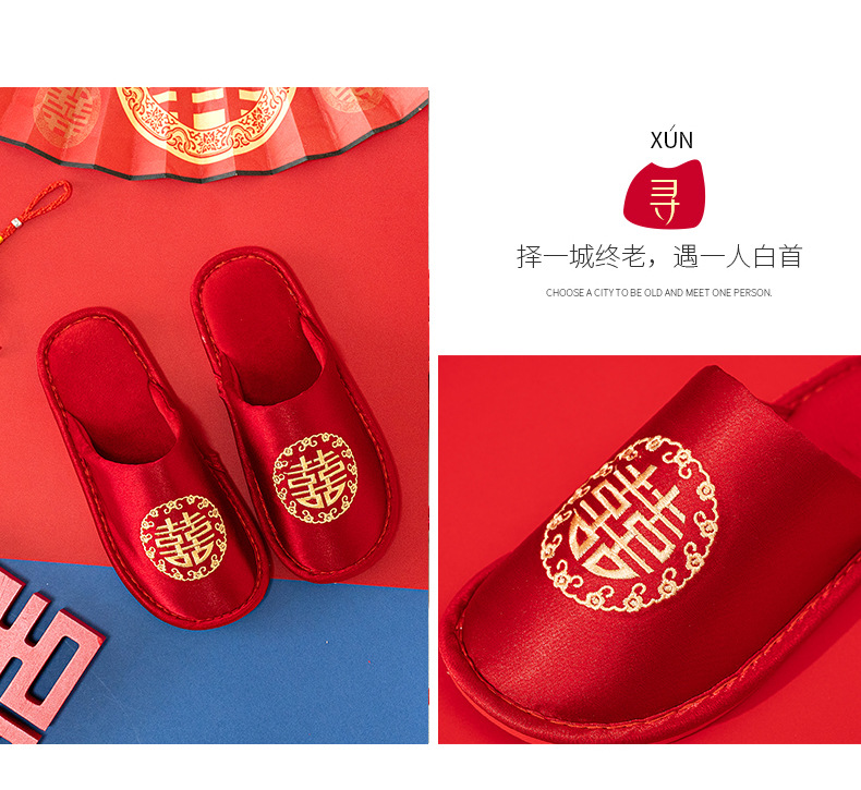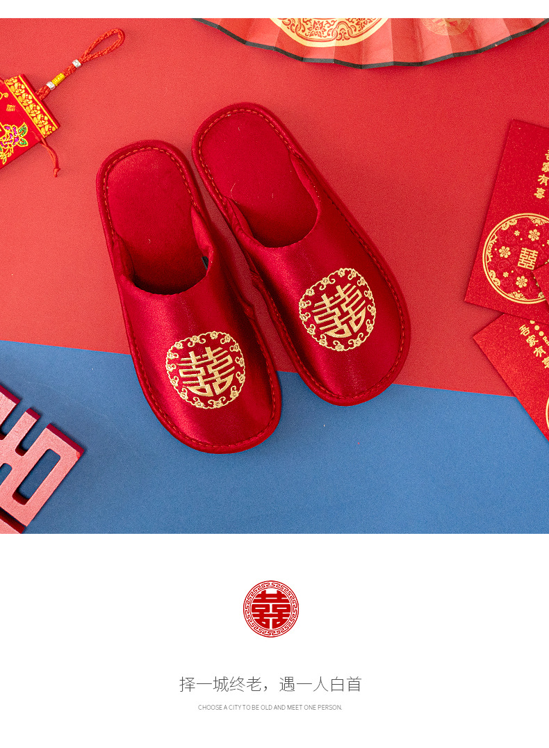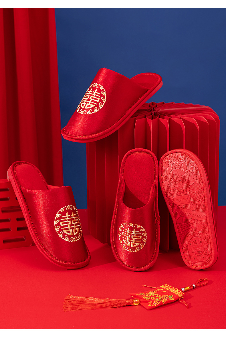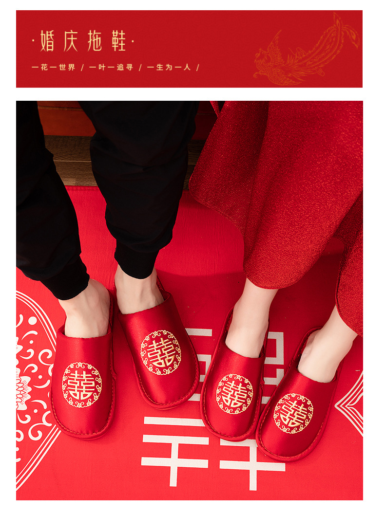 웨딩 슬리퍼 레드 홈 여성 봄과 가을 바닥 부드러운 홈 고급 웨딩 슬리퍼 축제 더블 행복 쌍 도매