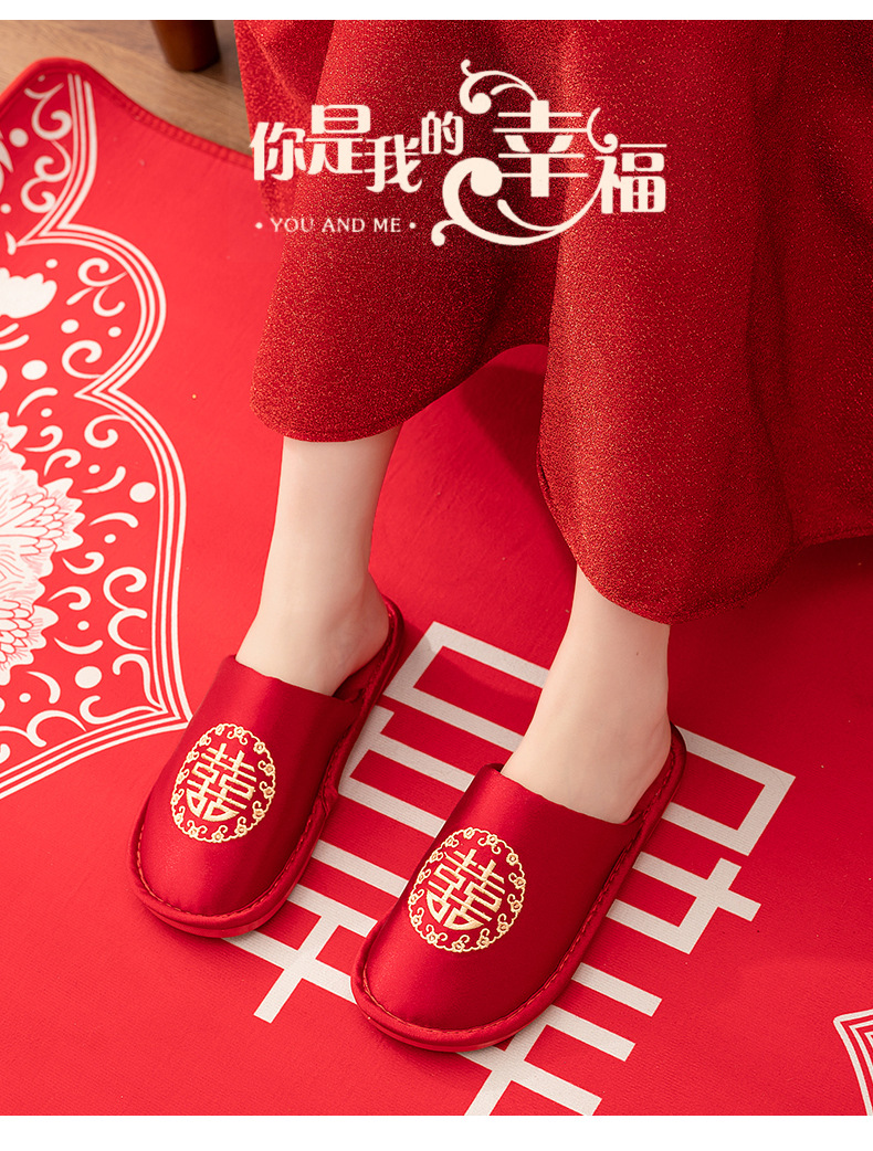 웨딩 슬리퍼 레드 홈 여성 봄과 가을 바닥 부드러운 홈 고급 웨딩 슬리퍼 축제 더블 행복 쌍 도매스토어 가기