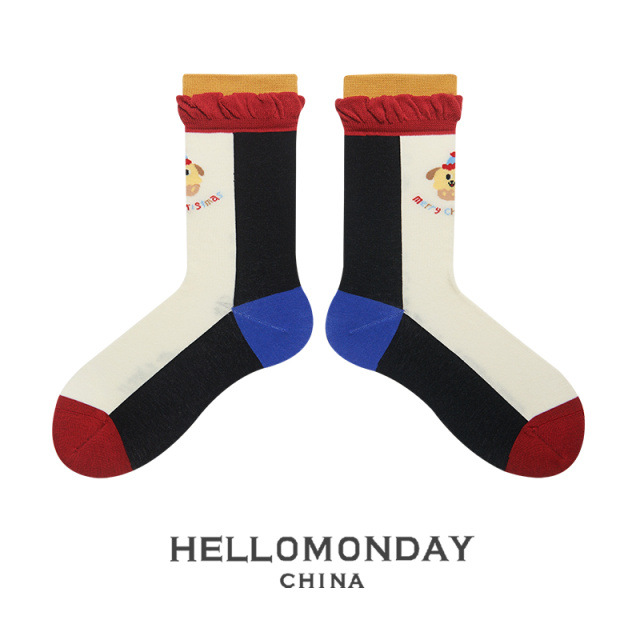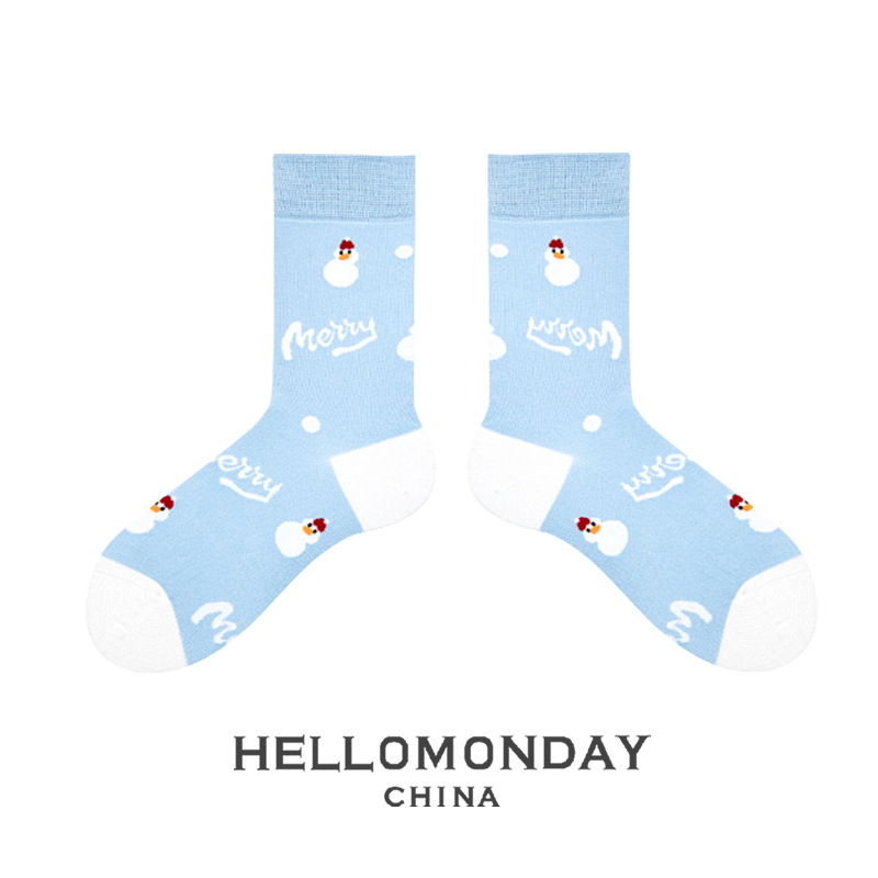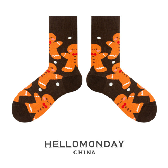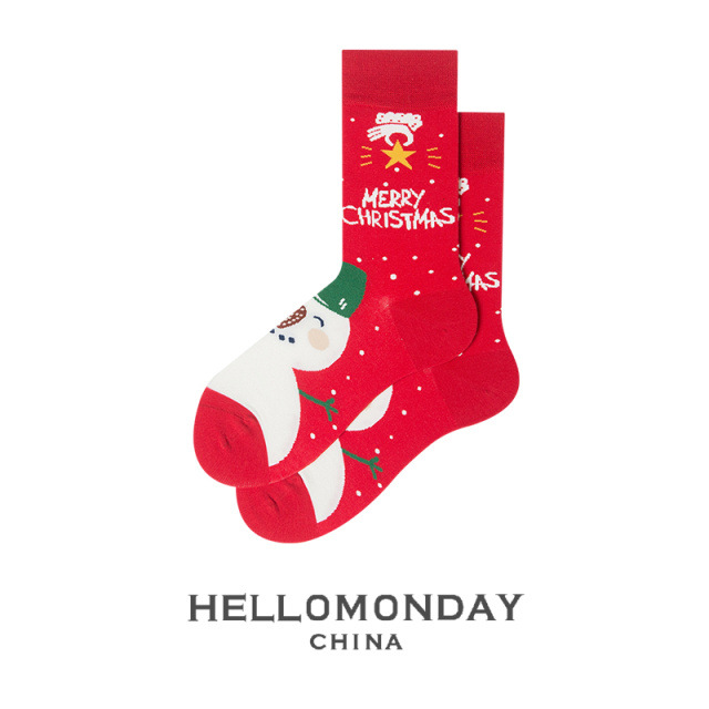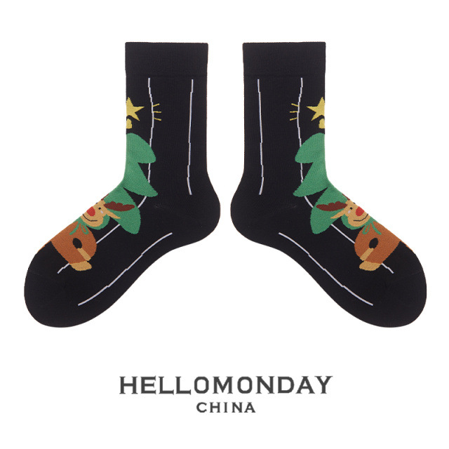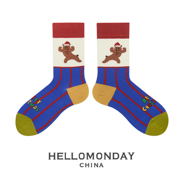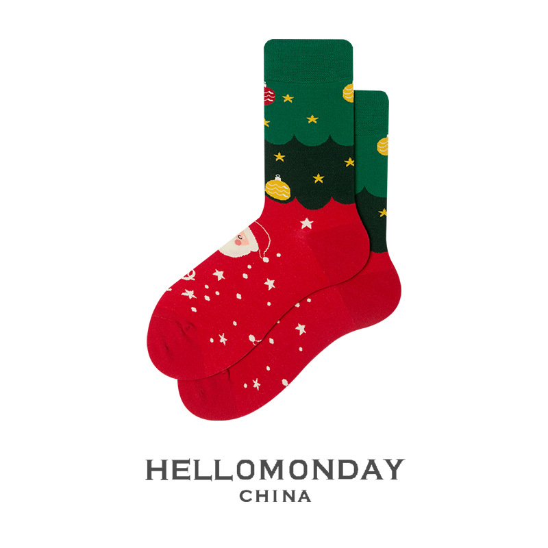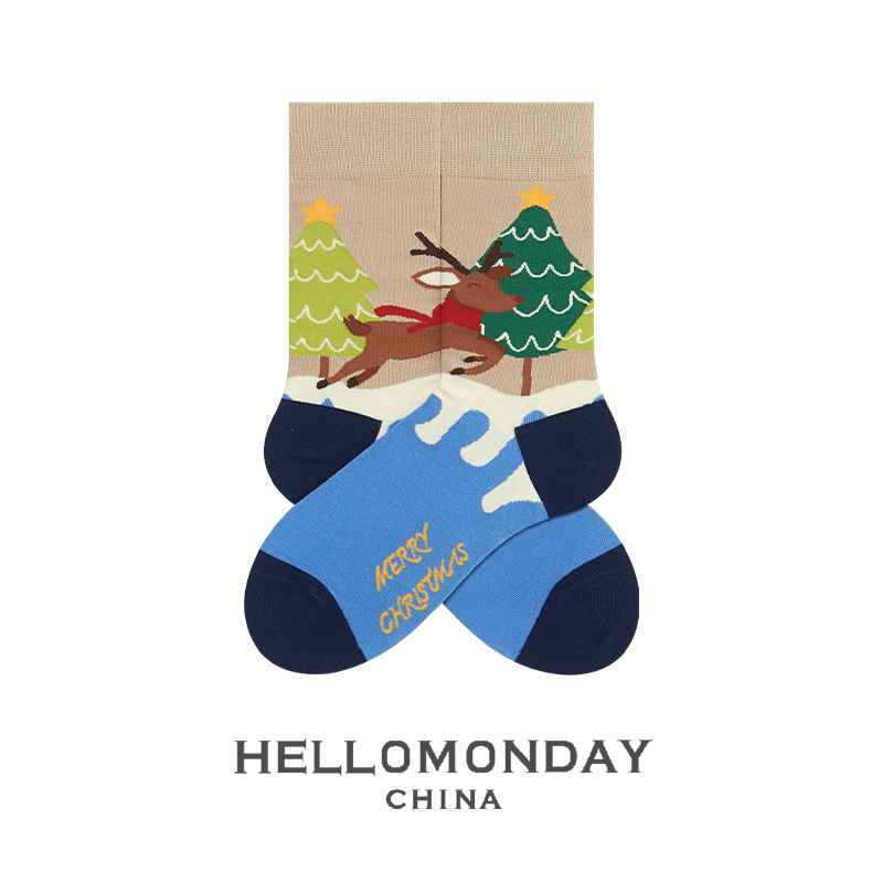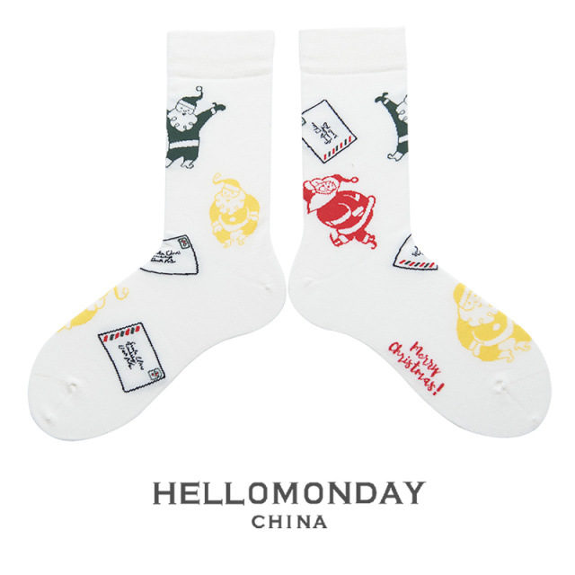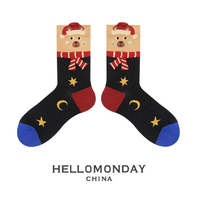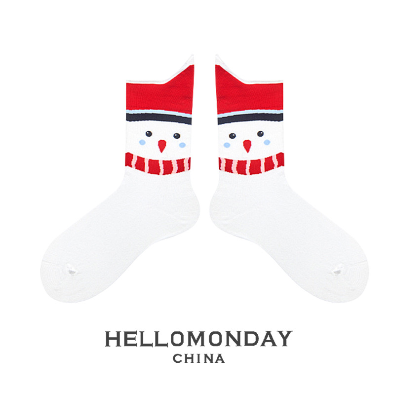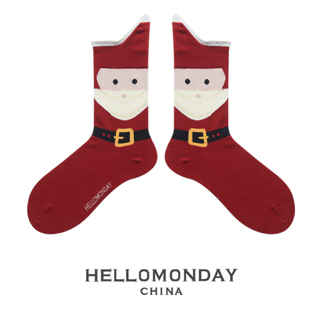 34580 Zhuji 양말 여자의 크리스마스 귀여운 중간 길이 양말 만화 산타 긴 배럴 가을과 겨울 연인 양말스토어 가기