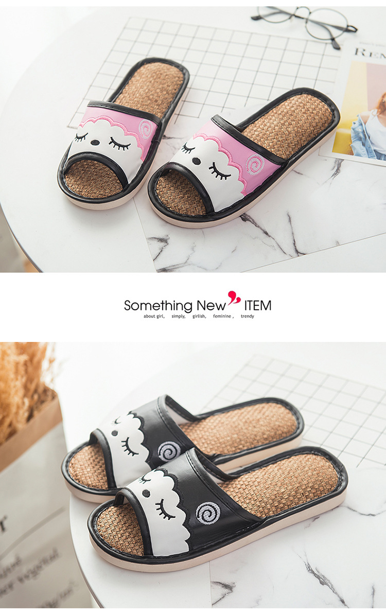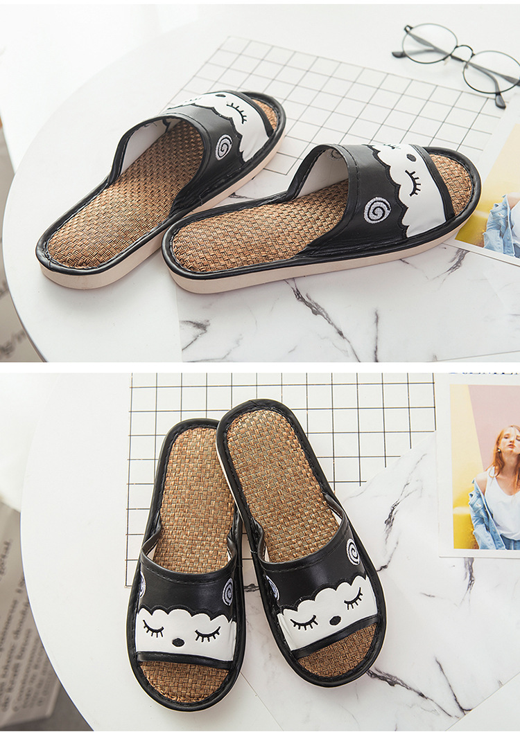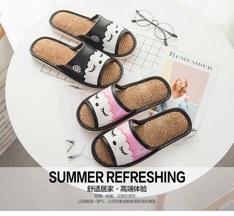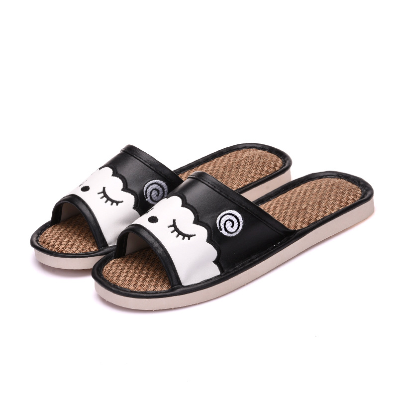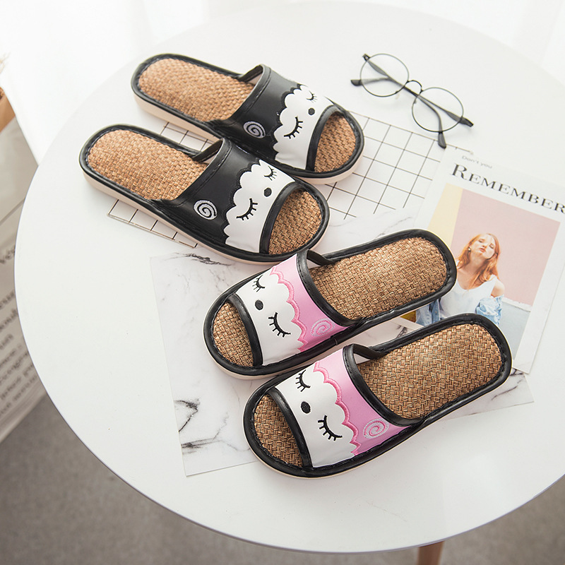 새로운 만화 린넨 슬리퍼 실내 연인 바닥 슬리퍼 남성과 여성 샌들 미끄럼 방지 가죽 슬리퍼 머리카락의 세대스토어 가기