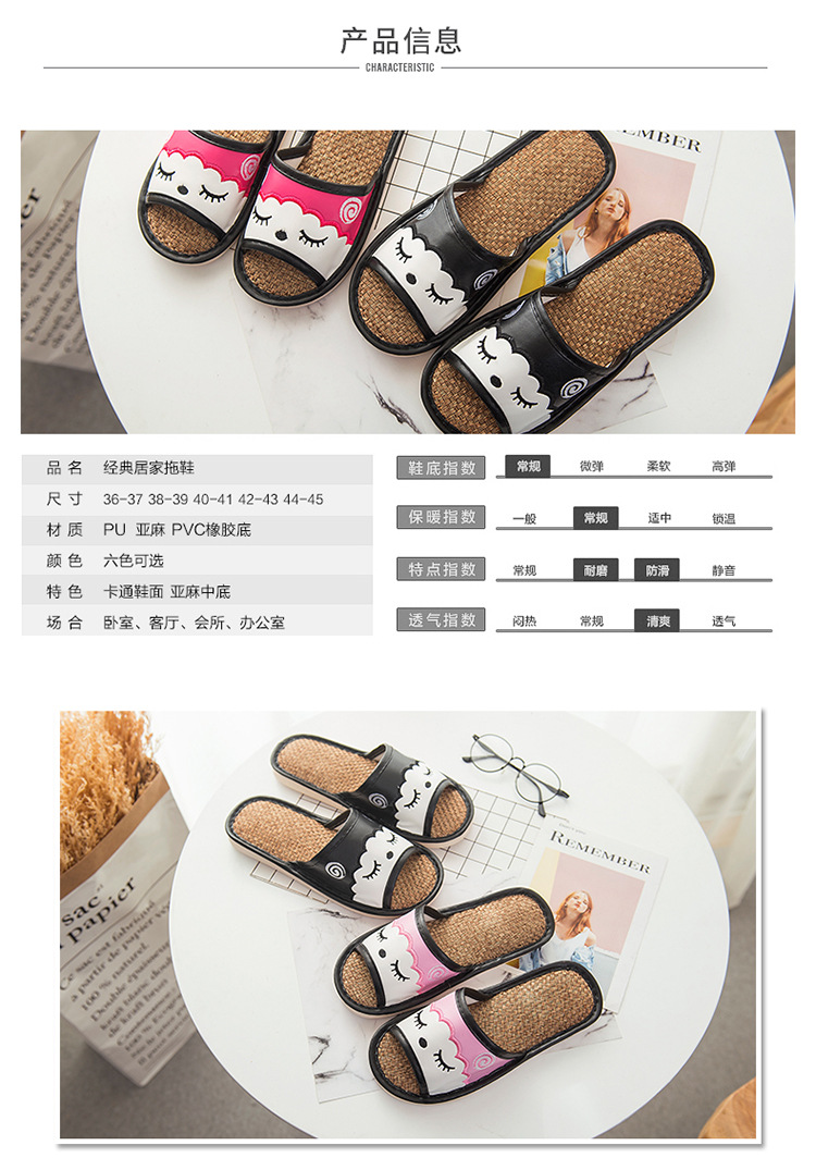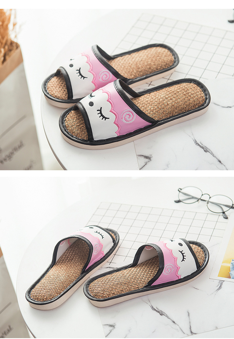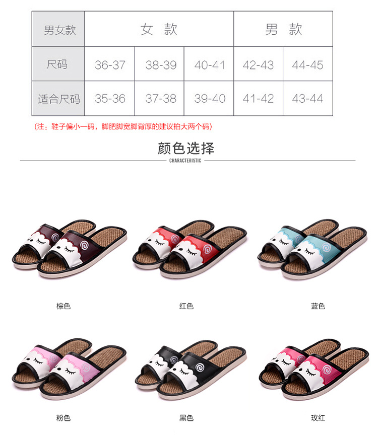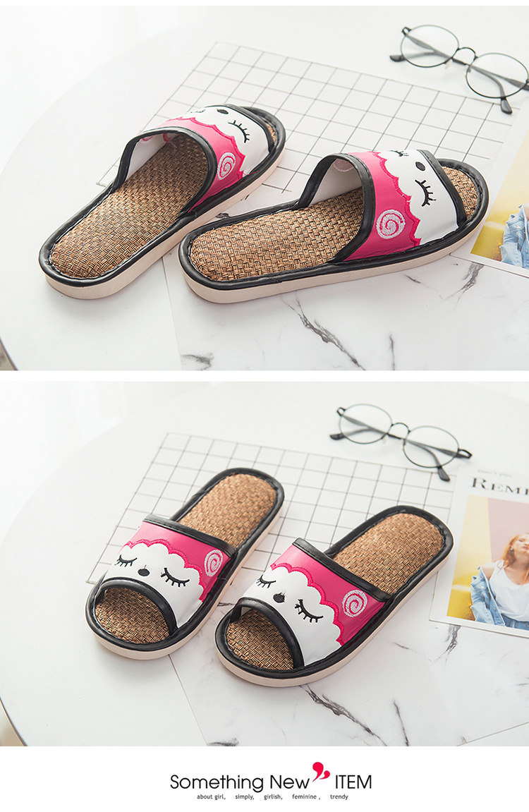 새로운 만화 린넨 슬리퍼 실내 연인 바닥 슬리퍼 남성과 여성 샌들 미끄럼 방지 가죽 슬리퍼 머리카락의 세대스토어 가기