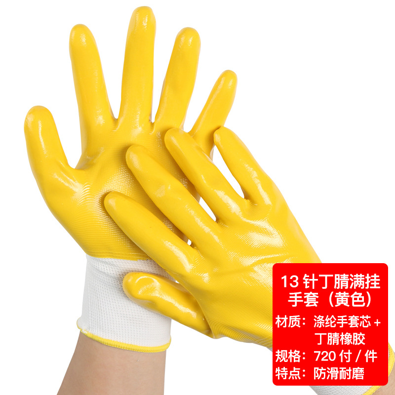 • 13 바늘 니트릴 전체 교수형 장갑 (노란색)