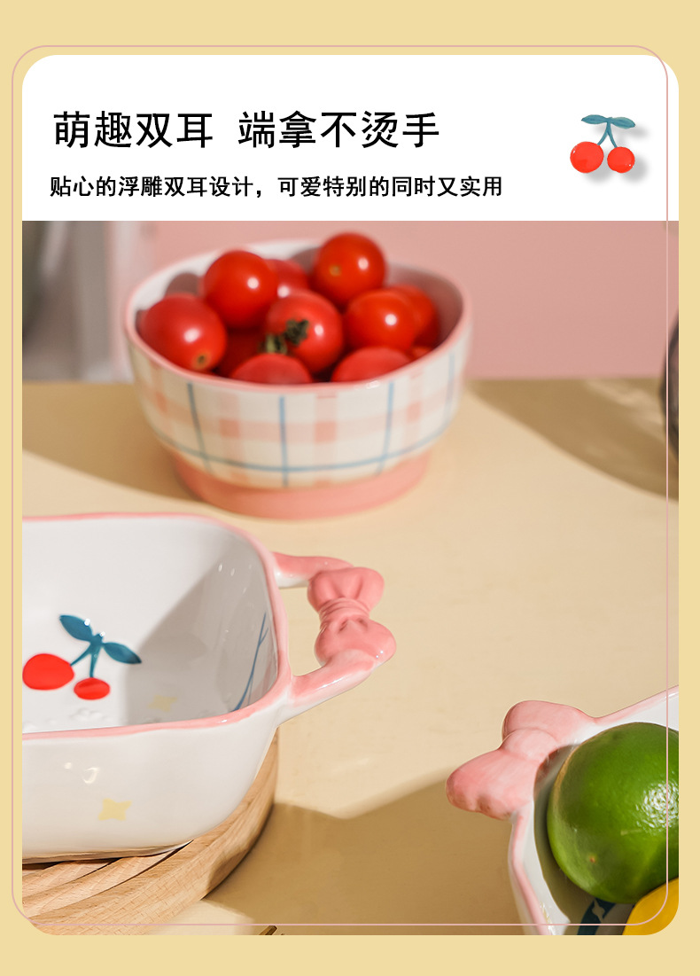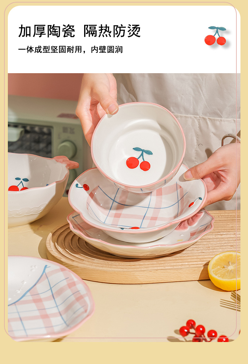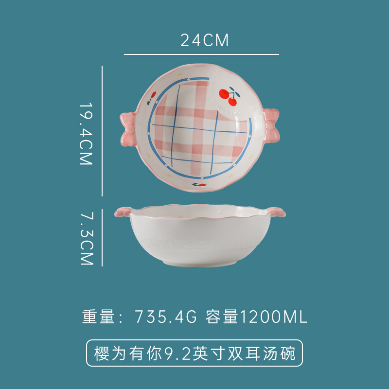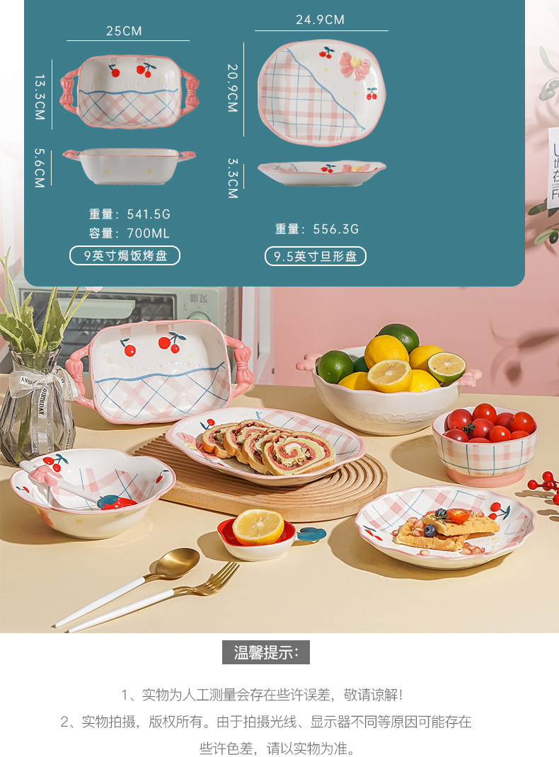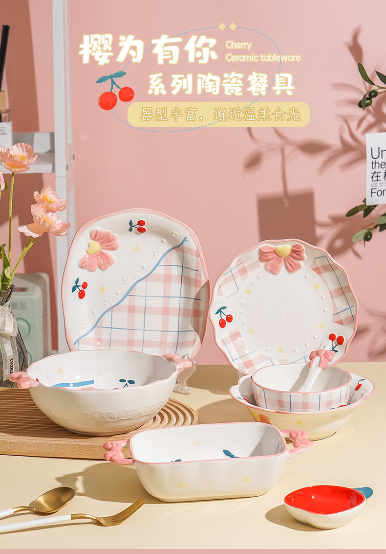 귀여운 고가의 디저트 도매 세라믹 식기 세트 용 사쿠라 컬러 바이노럴 수프 그릇 가정용 접시스토어 가기