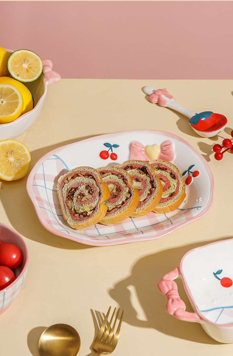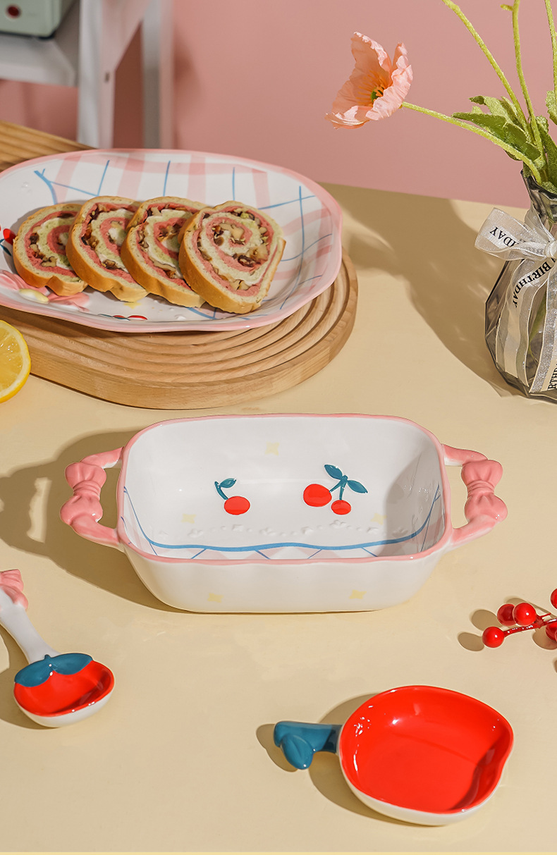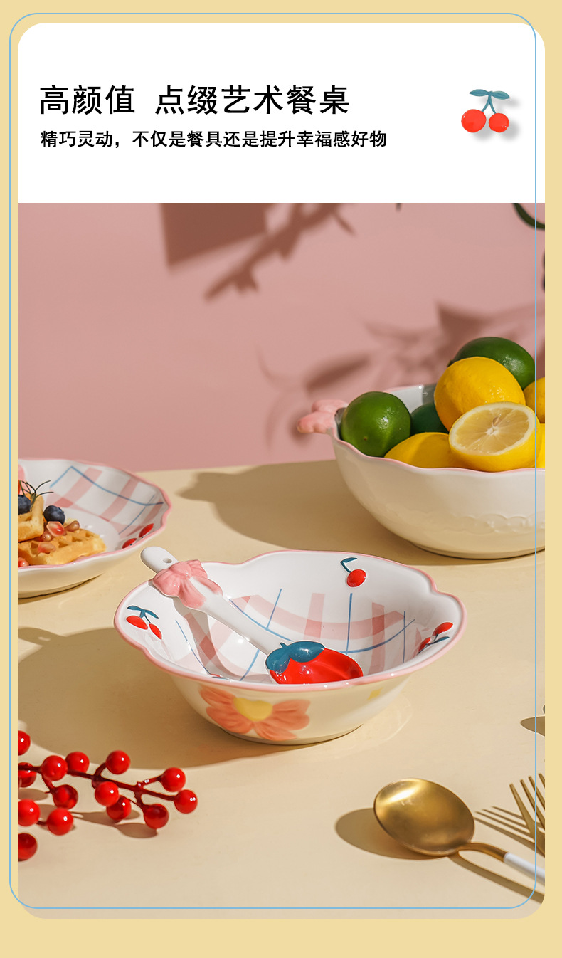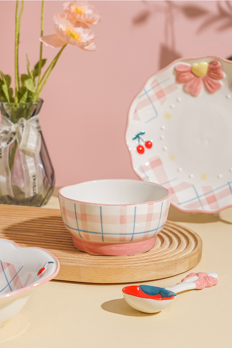 귀여운 고가의 디저트 도매 세라믹 식기 세트 용 사쿠라 컬러 바이노럴 수프 그릇 가정용 접시스토어 가기