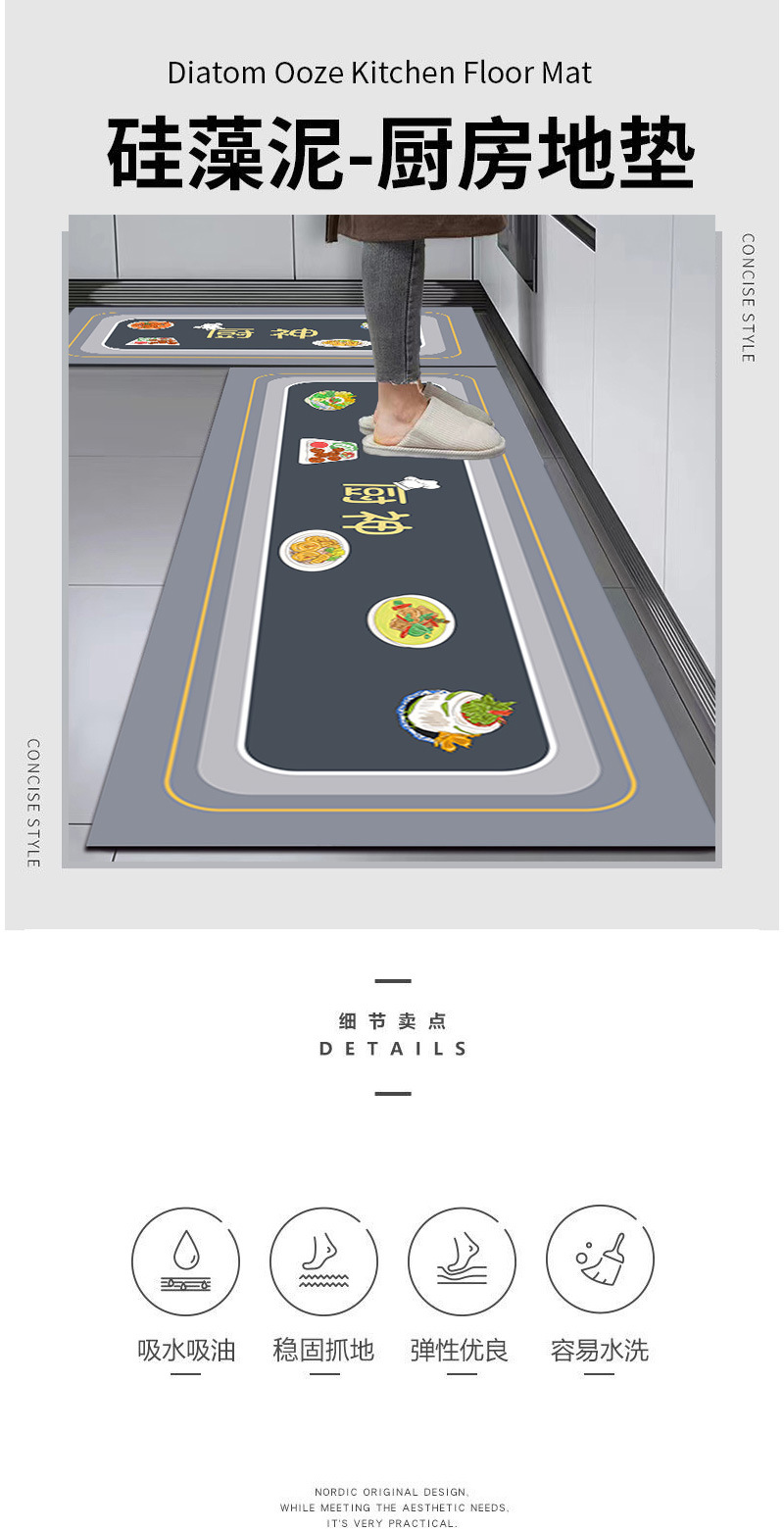 규조 진흙 주방 매트 내유성 미끄럼 방지 흡수성 발 매트 가정용 더러운 방지 세척 방지 가정용 카펫 스트립
