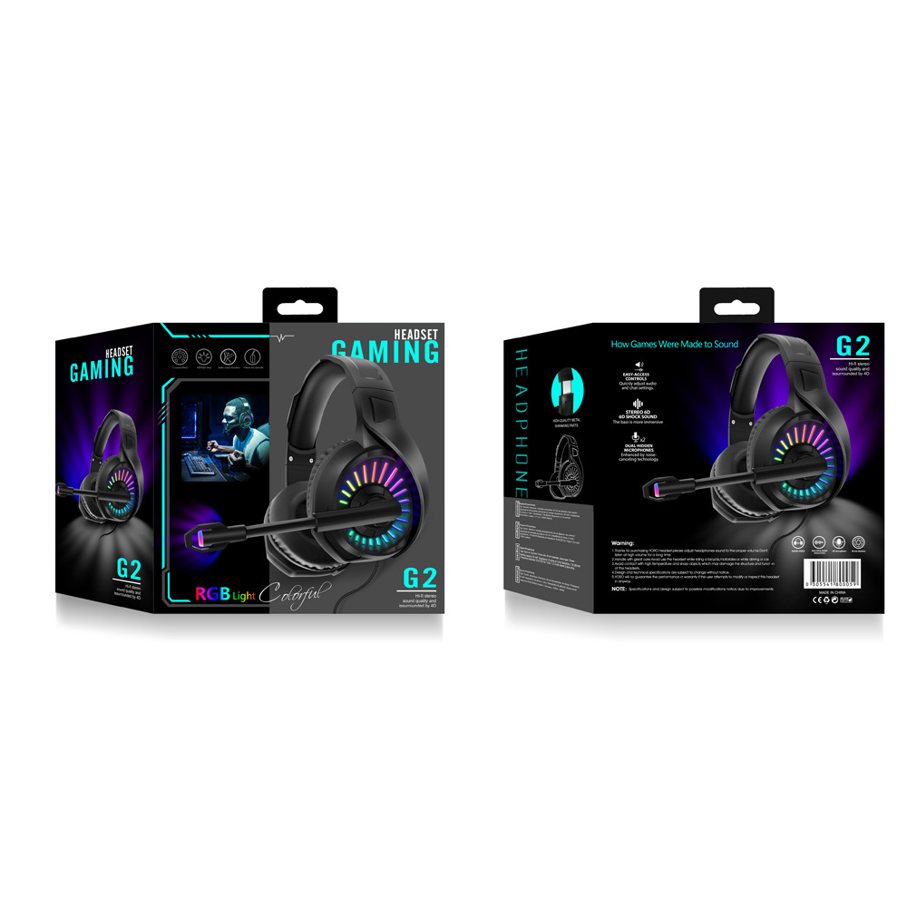 G2 헤드셋 컴퓨터 게임 헤드셋 RGB 다채로운 발광 LED e 스포츠 유선 헤드셋 (마이크 공장 콘센트 포함)
