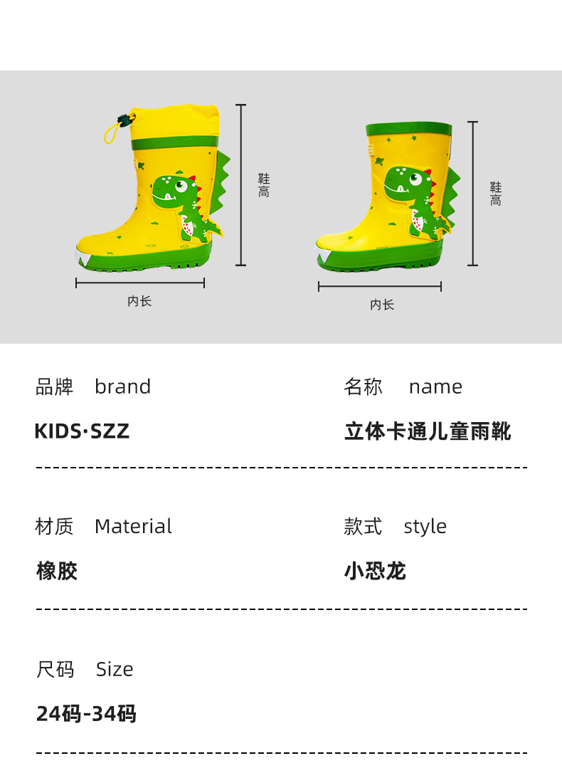 어린이 비 부츠 만화 공룡 유니콘 미끄럼 방지 초등학교 어린이 사계절 유치원 물 신발 소년 소녀 비 신발