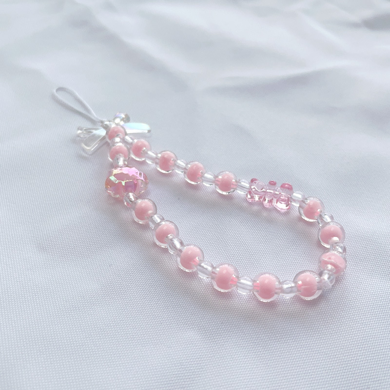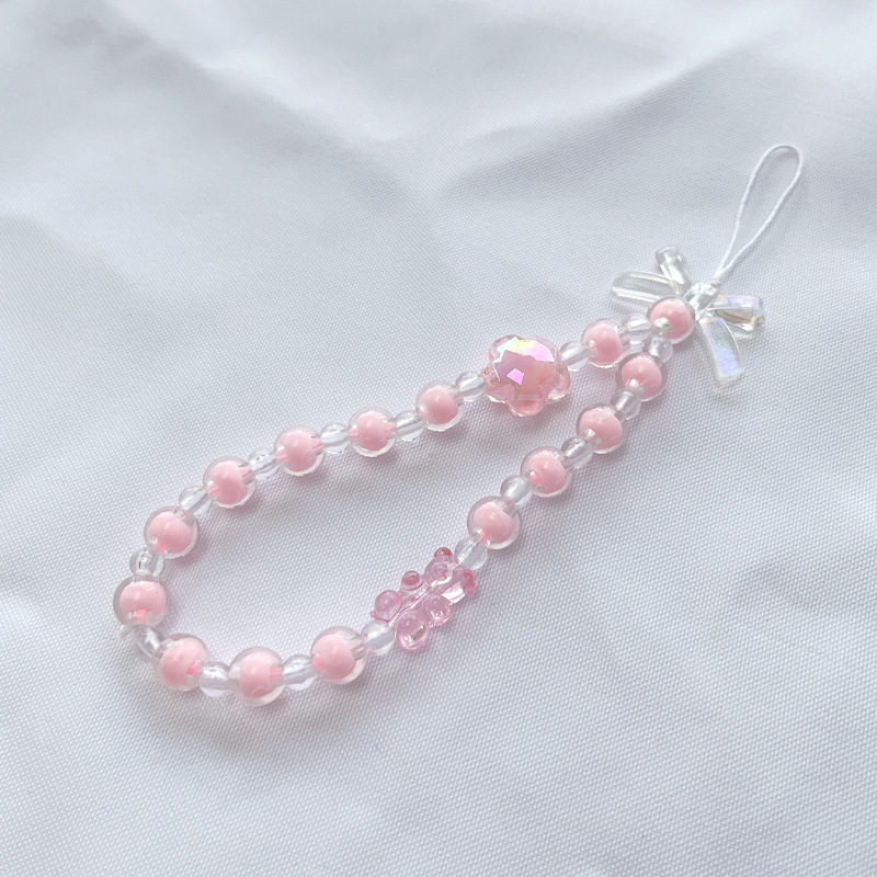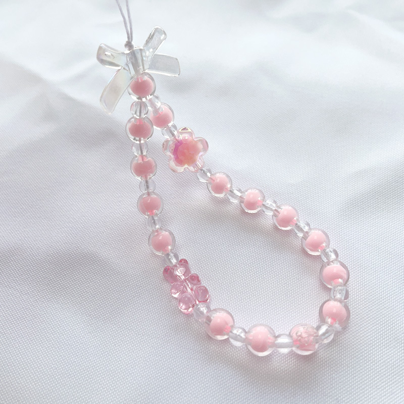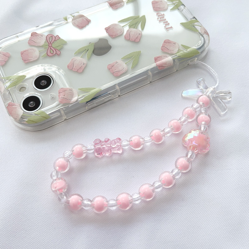 새로운 핑크 꽃 곰 휴대 전화 펜던트 투명 컬러 활 작은 신선한 달콤한 끈 휴대 전화 케이스 유니버설스토어 가기