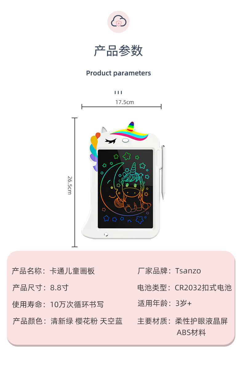 아마존 8.8 인치 유니콘 LCD 쓰기 보드 교육 장난감 어린이 전자 그림 낙서 쓰기 보드