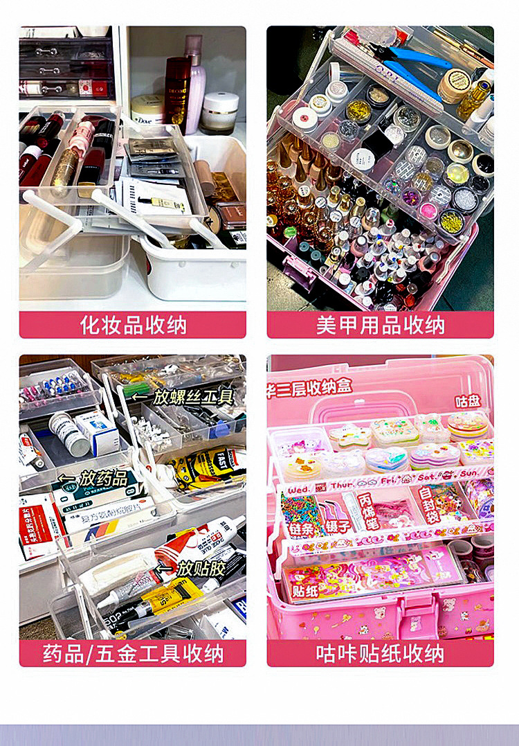 3 층 휴대용 다기능 보관함 접이식 구 카드 도구 상자 매니큐어 케이스 미술 플라스틱 보관함