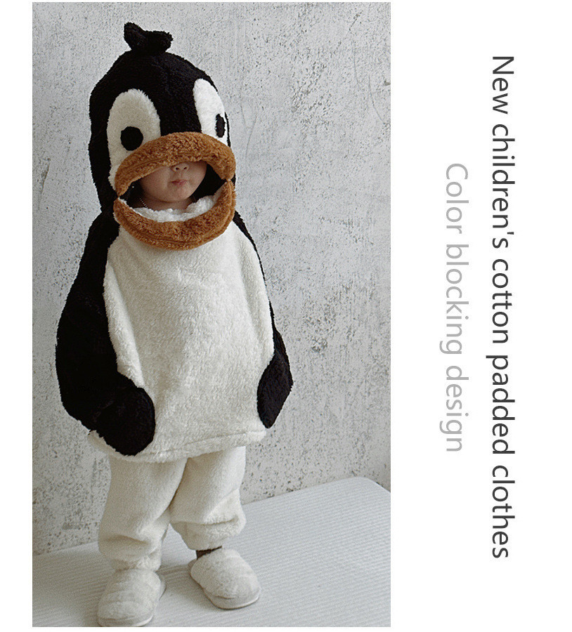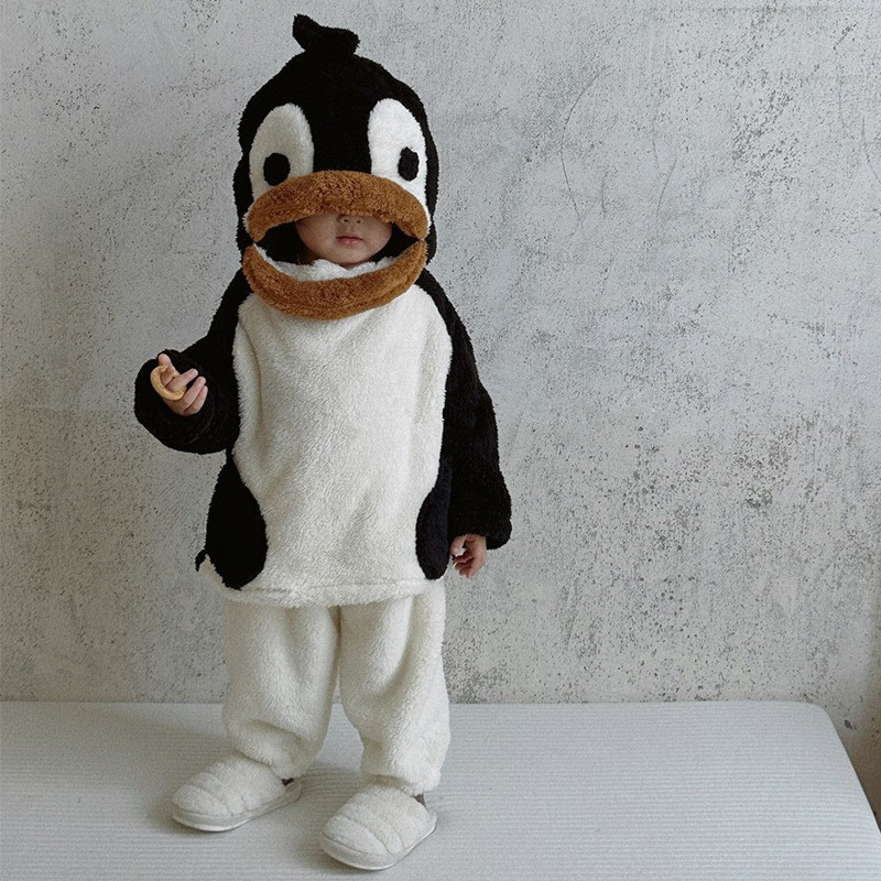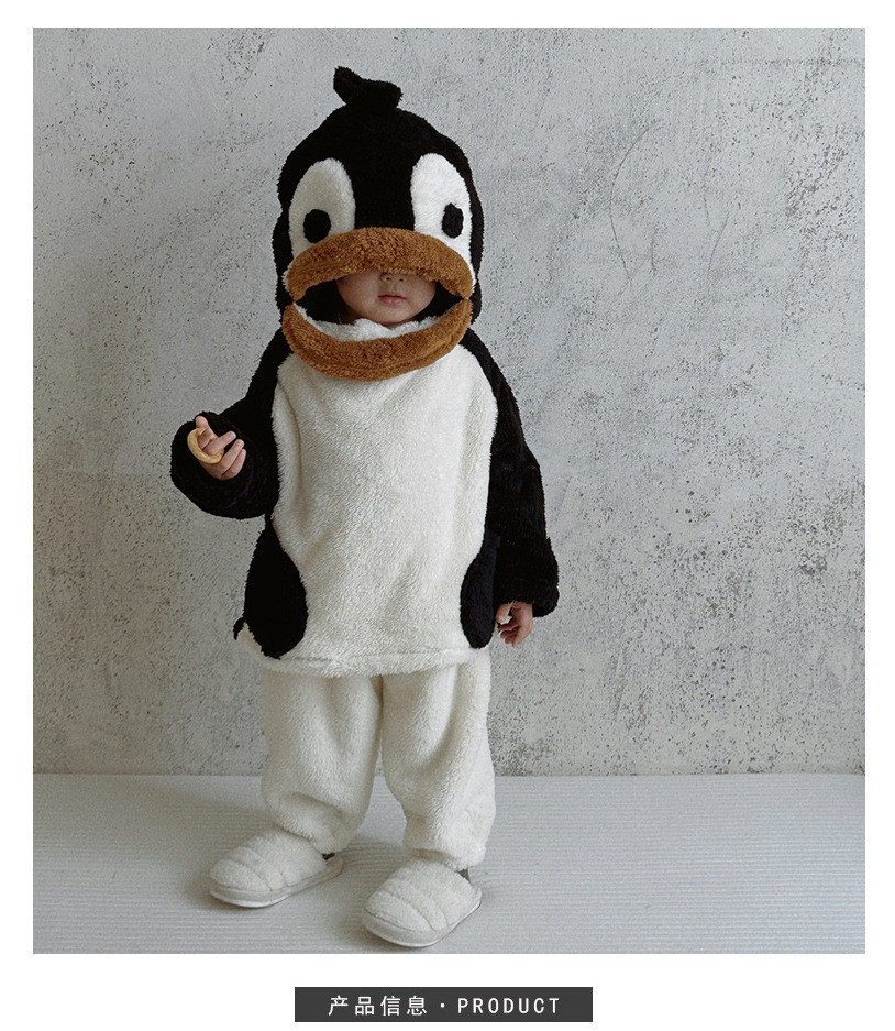 가을 겨울 신상 아동 펭귄 플러시 세트 남녀 아기 겨울 양면 플러시 홈 세트