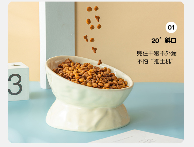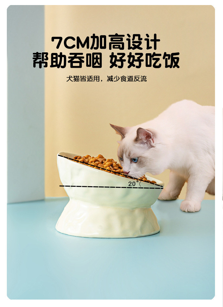 고양이 그릇 강아지 음식 분지 세라믹 애완 동물 특별 용품 음식 식사 대각선 그릇 마시는 그릇 전복 방지 보호 경추