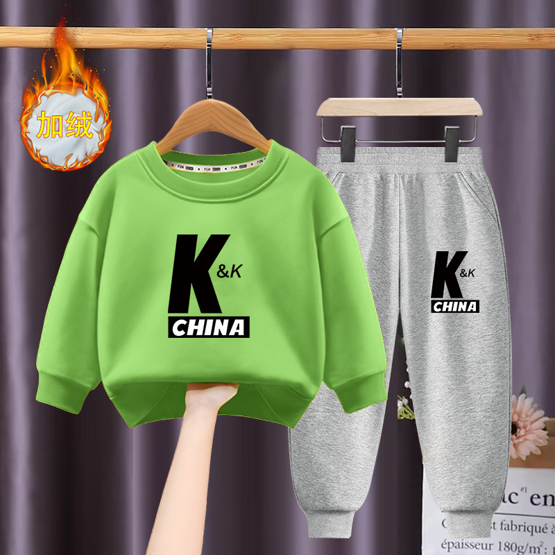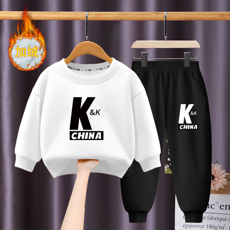 어린이 세트 가을과 겨울 기모 소년 소녀 긴팔 아동복 어린이 아기 스웨터 바지 투피스 세트스토어 가기