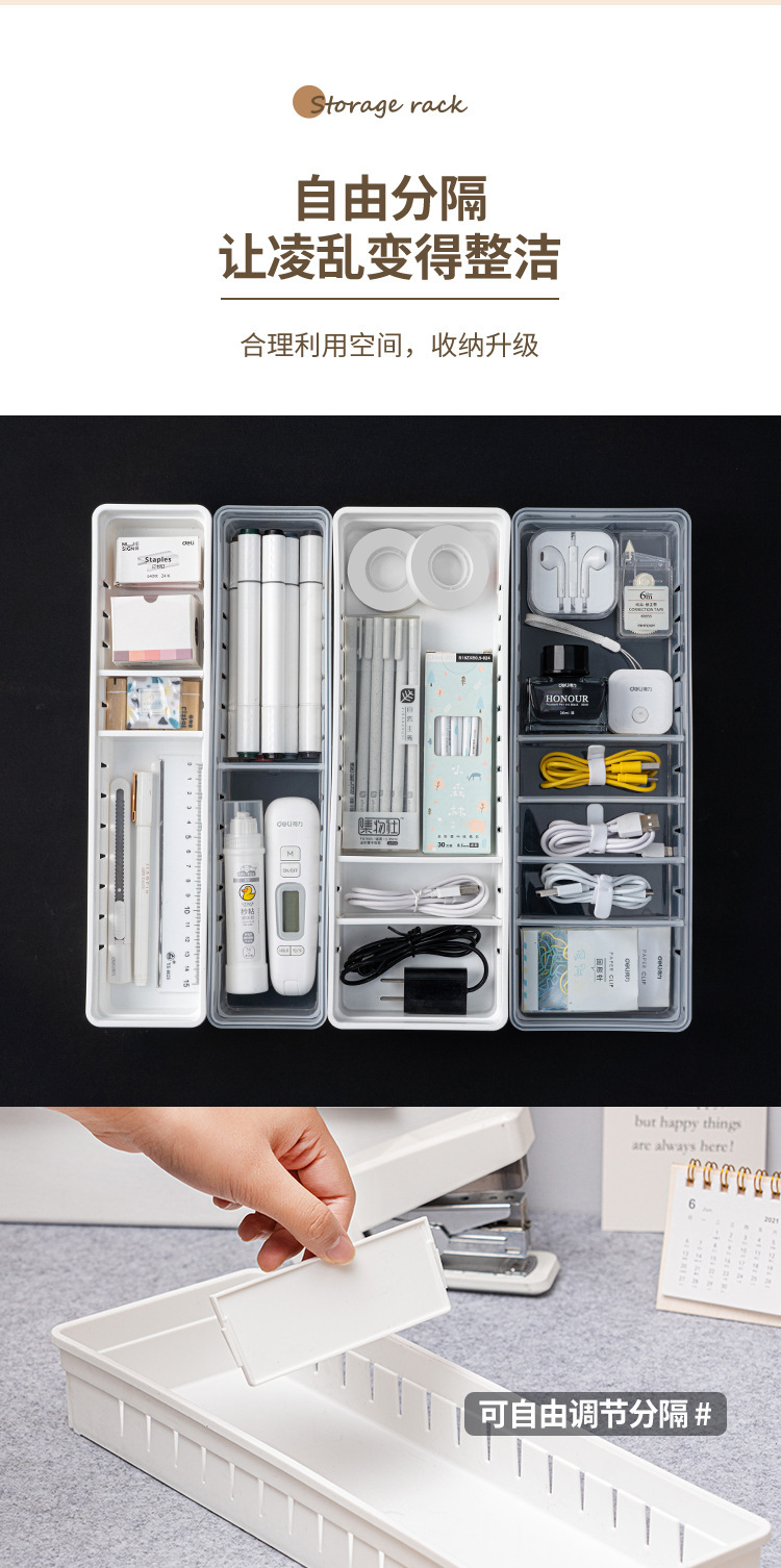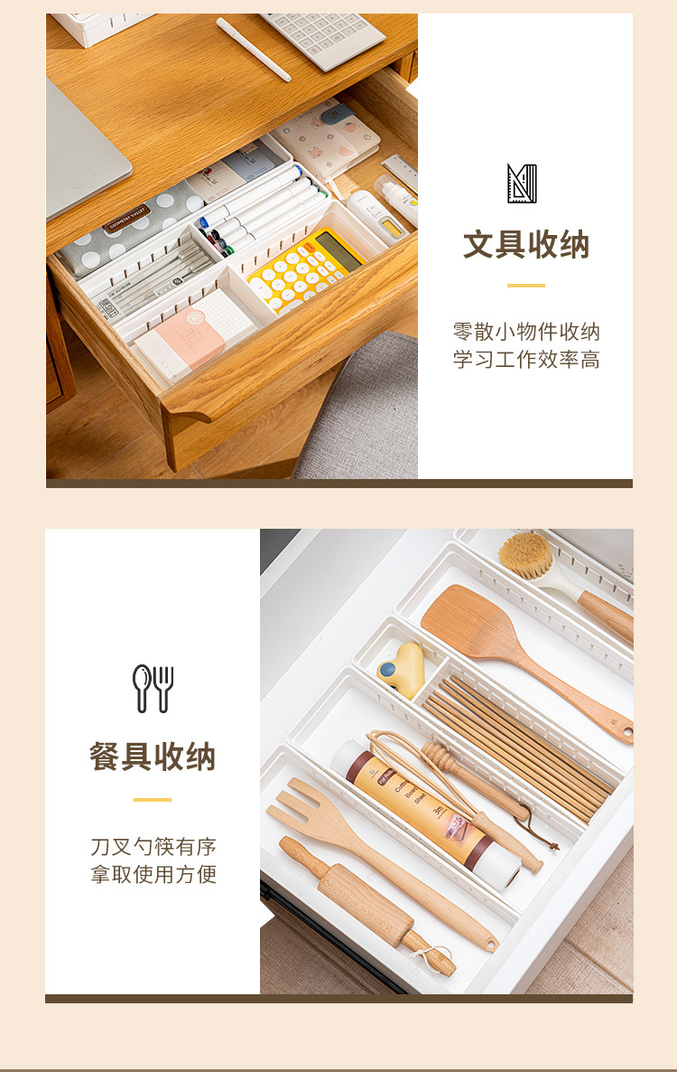 自由叠加厨房抽屉分隔盒整理盒塑料化妆品抽屉分隔收纳盒杂物整理