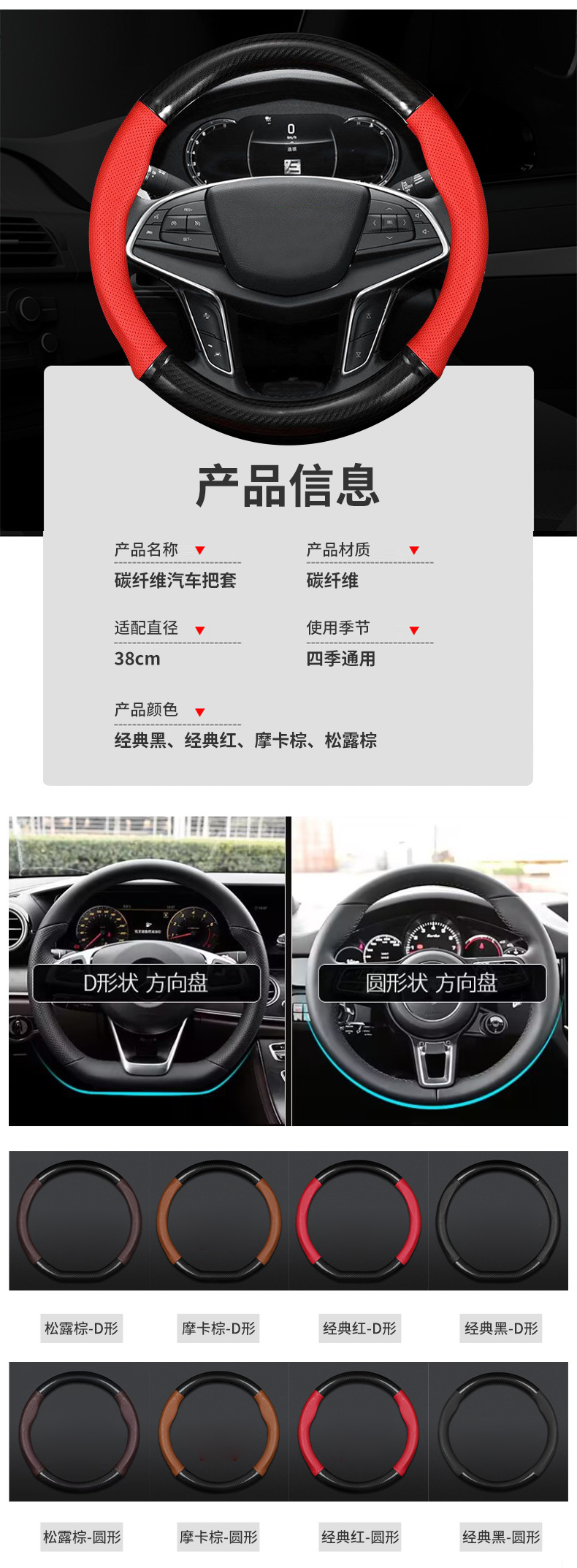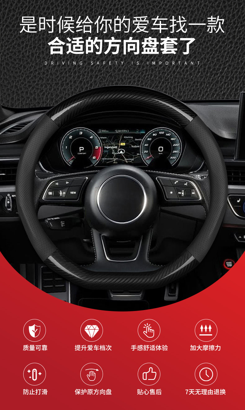 패션 대기 핸들 커버 통기성 땀 흡수 탄소 섬유 접합 핸들 커버 크로스 보더 자동차 인테리어 D 형 핸들 커버스토어 가기