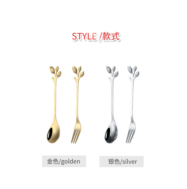 그물 레드 크리에이티브 스테인레스 스틸 식기 리프 스푼 포크 레스토랑 우유 차 가게 커피 믹싱 스푼 디저트 케이크 포크스토어 가기