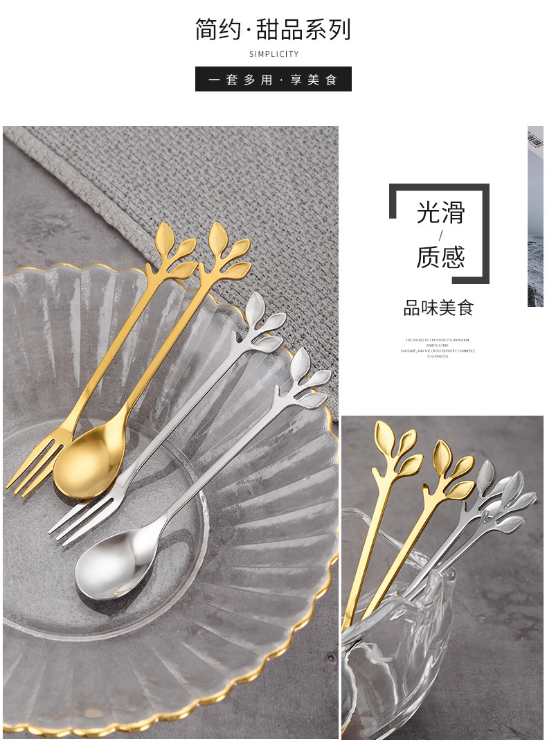 그물 레드 크리에이티브 스테인레스 스틸 식기 리프 스푼 포크 레스토랑 우유 차 가게 커피 믹싱 스푼 디저트 케이크 포크