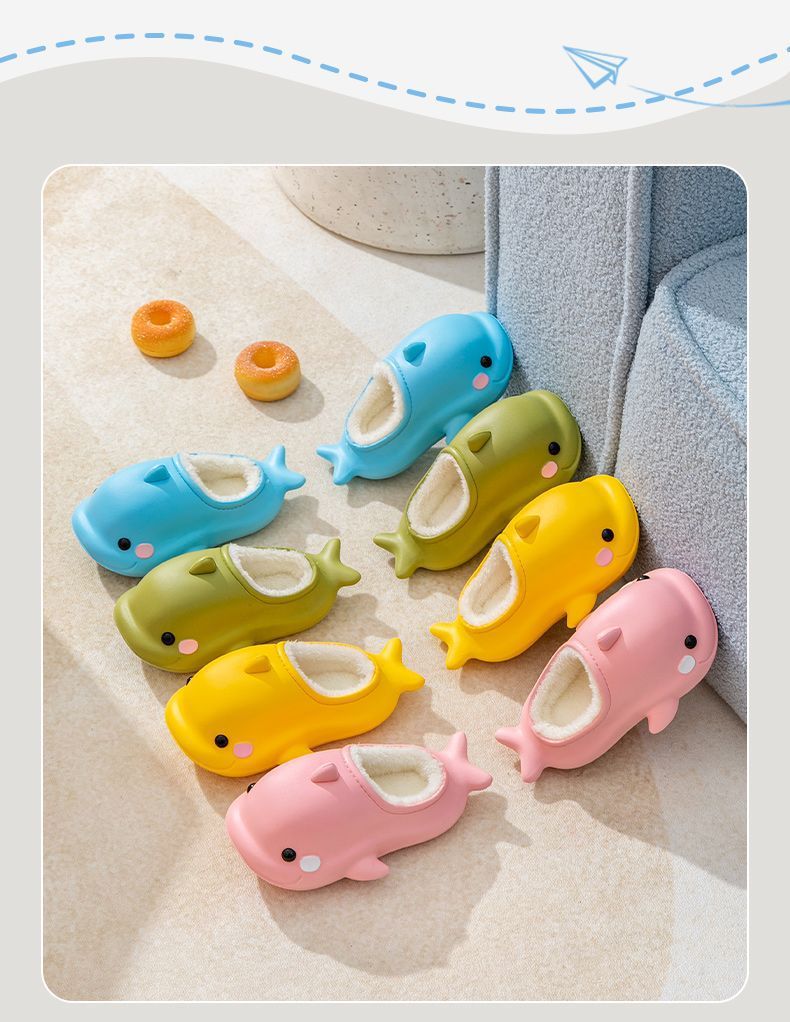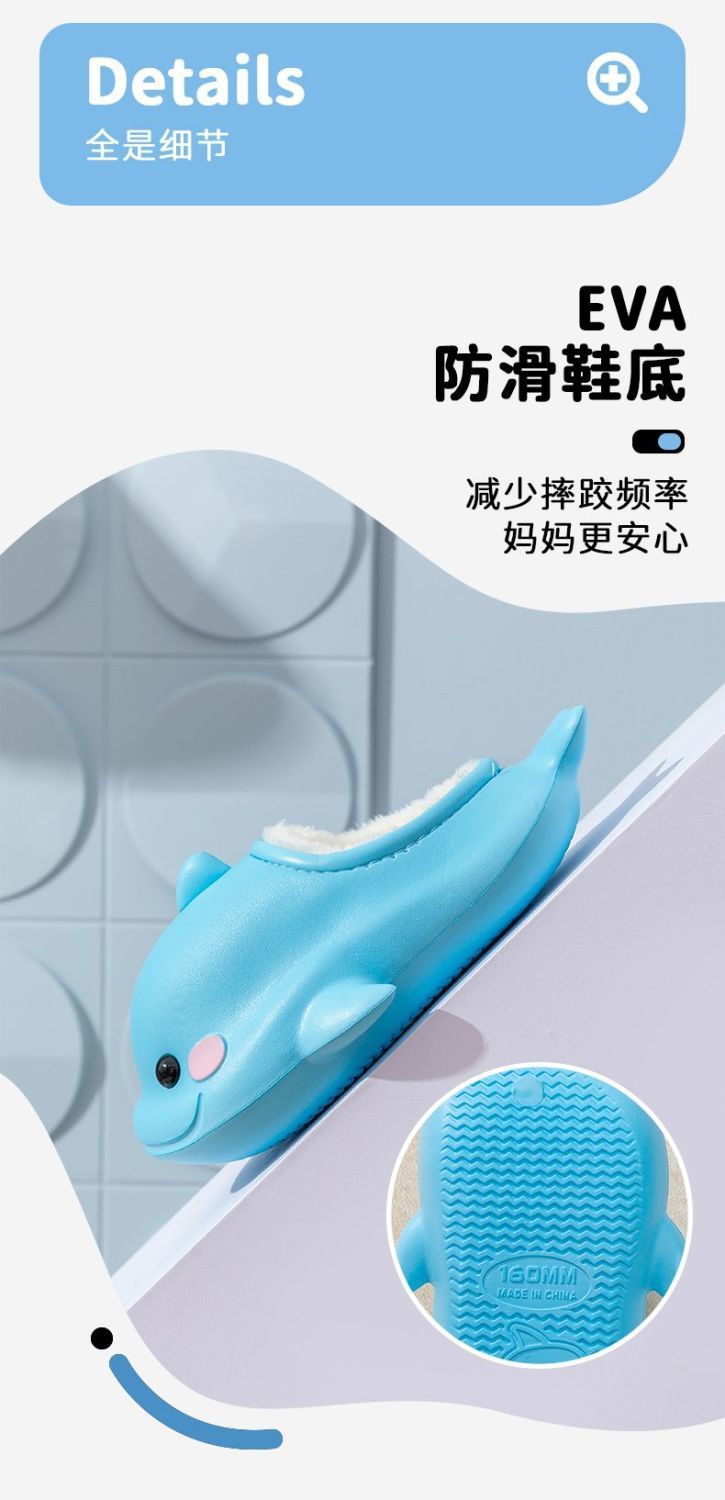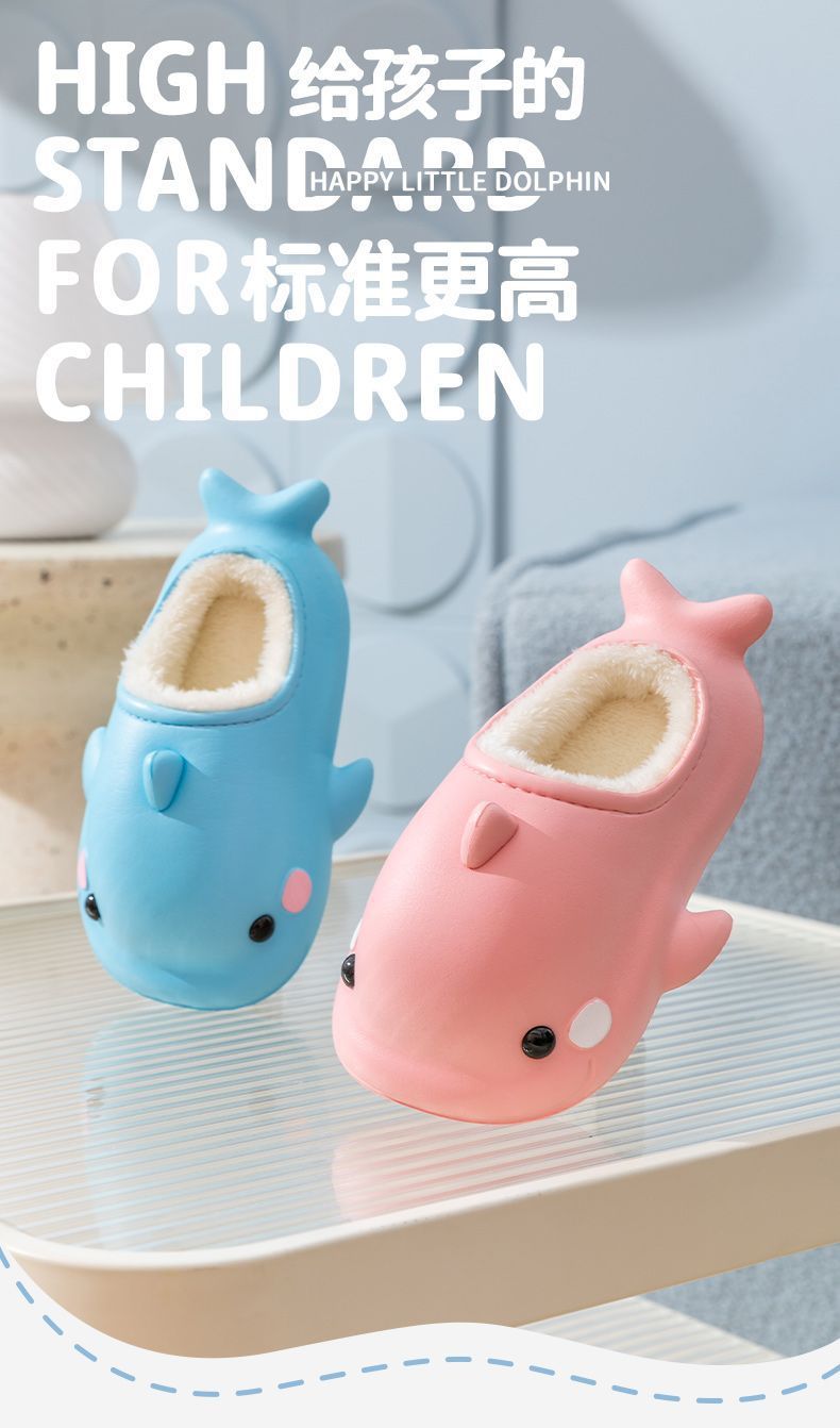 EVA 어린이 가정 면 신발 귀여운 돌고래 만화 기모 따뜻한 방수 미끄럼 방지 면 슬리퍼 아기 마오 마오 신발스토어 가기