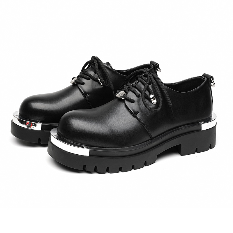 한국 스타일 모든 일치 큰 발가락 가죽 신발 남자의 작업 신발 2023 가을 새로운 패션 젊은 헤어 스타일리스트를위한 검은 가죽 신발