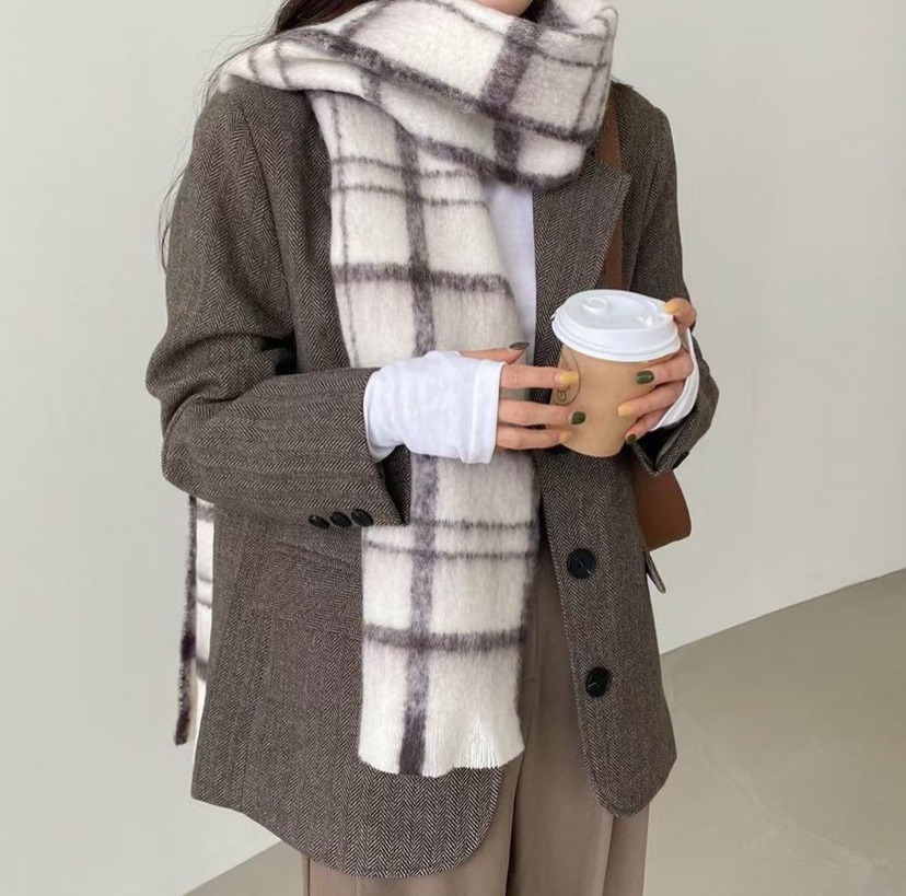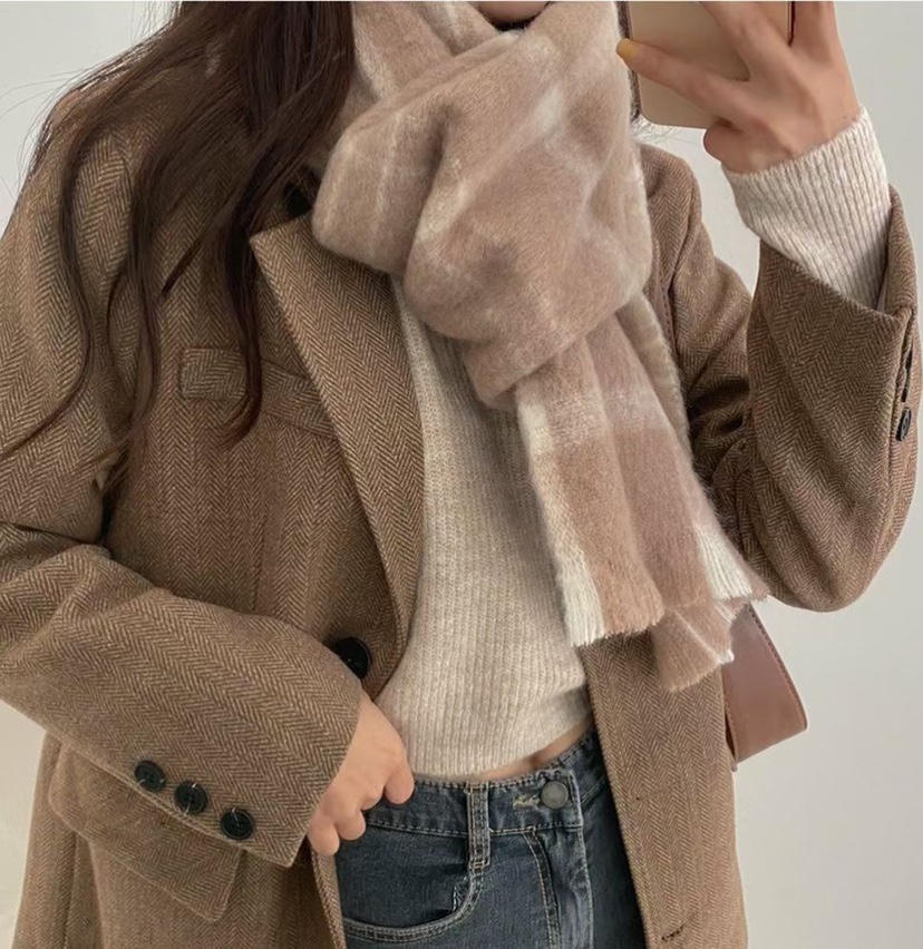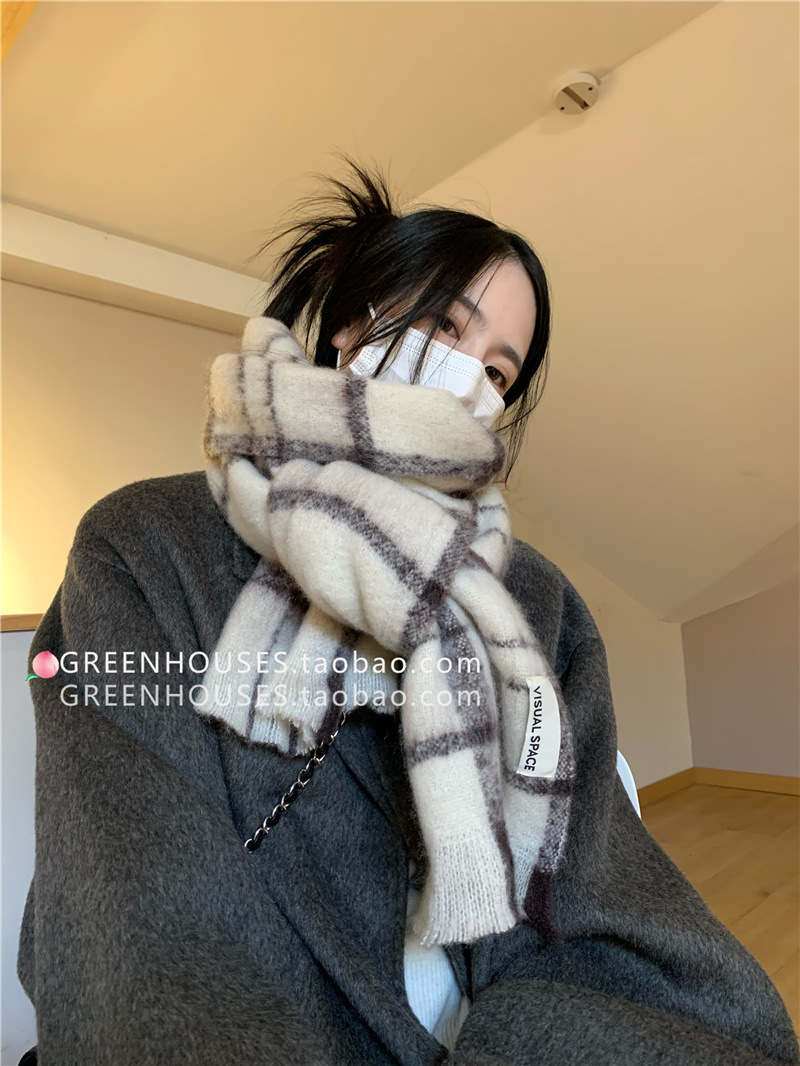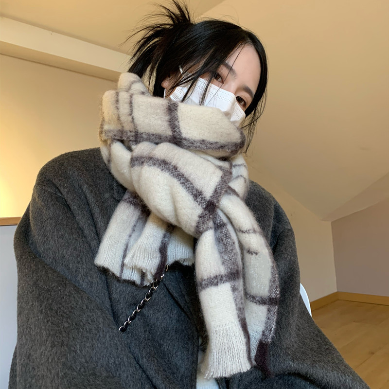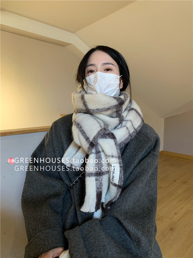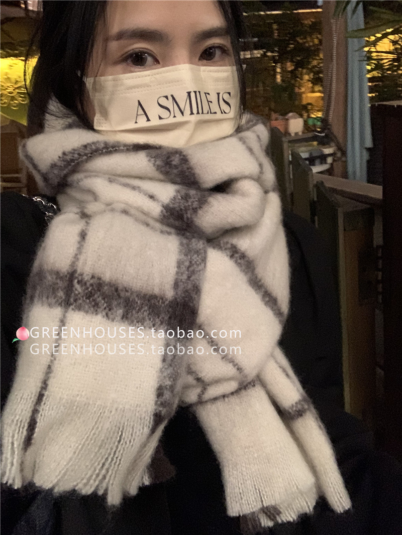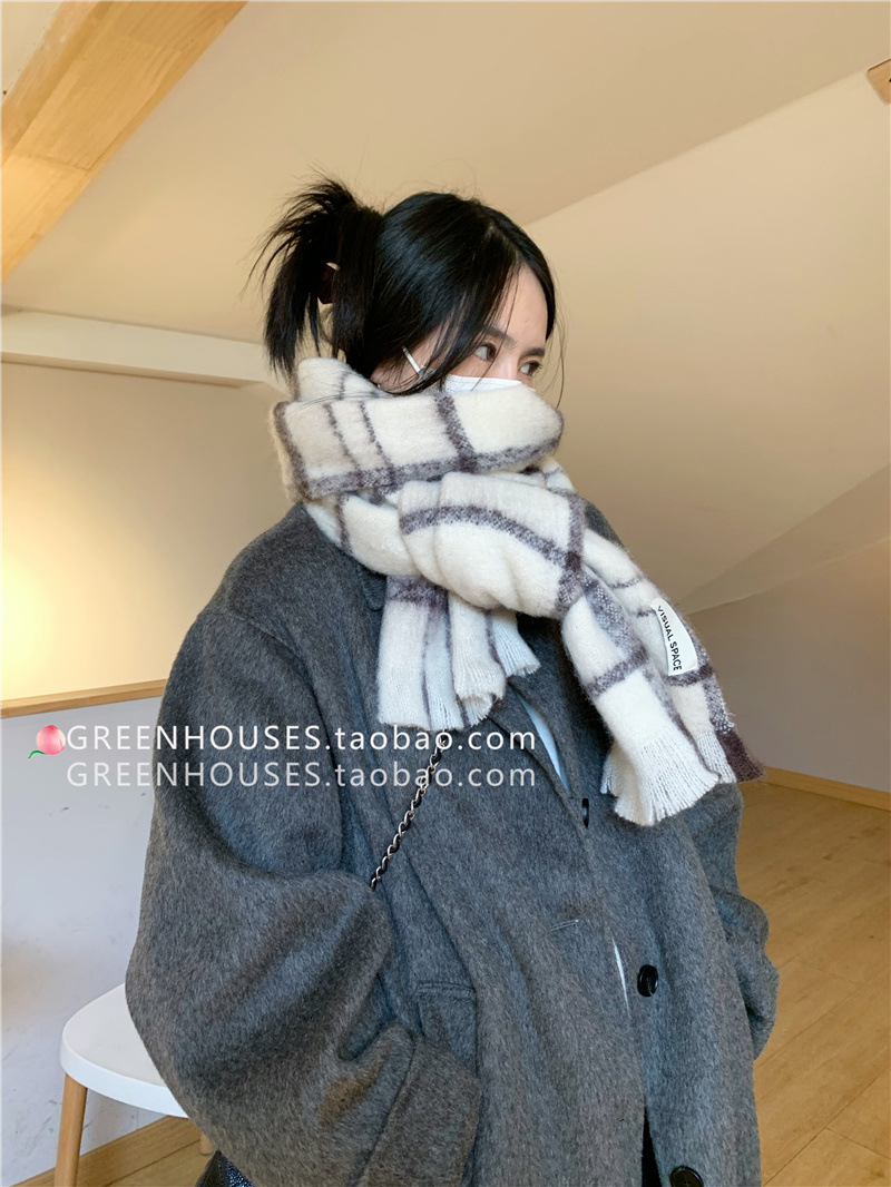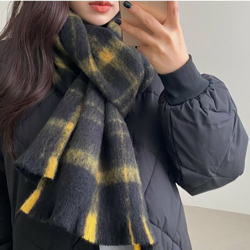 한국식 분위기 두꺼운 모헤어 따뜻한 스카프 여성용 한국식 스트라이프 방한 가을과 겨울 스카프 올인원 남성 숄스토어 가기