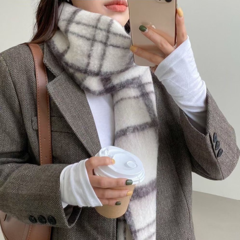 한국식 분위기 두꺼운 모헤어 따뜻한 스카프 여성용 한국식 스트라이프 방한 가을과 겨울 스카프 올인원 남성 숄