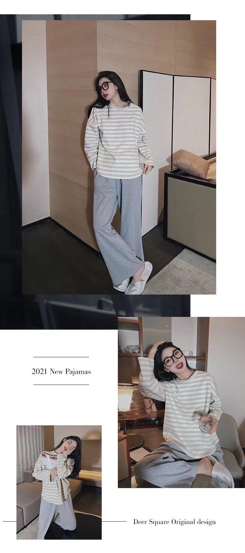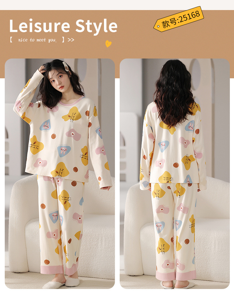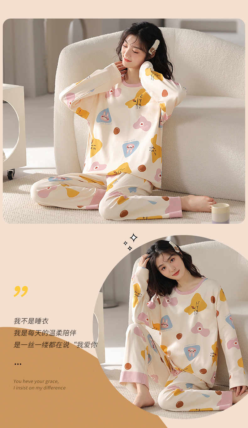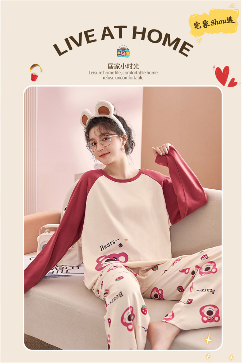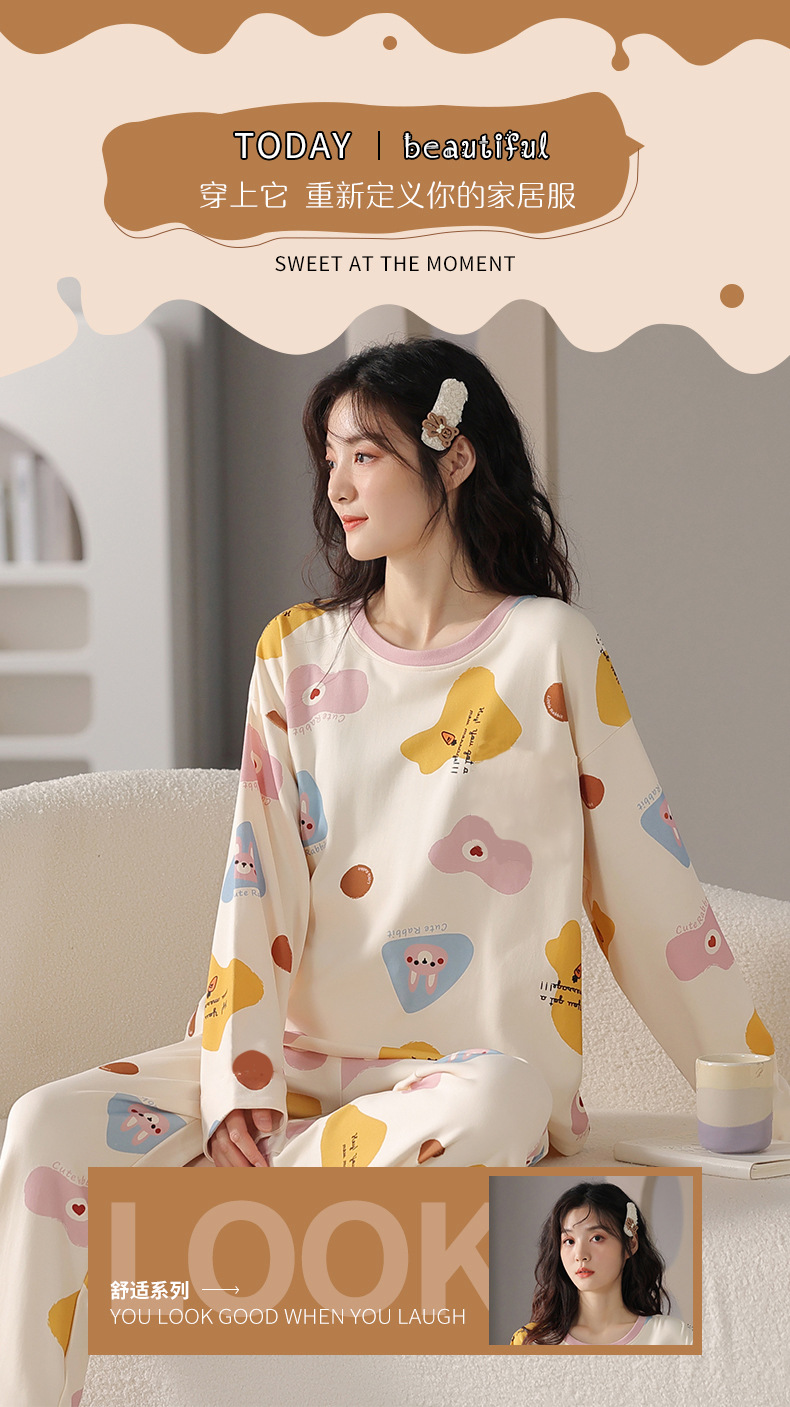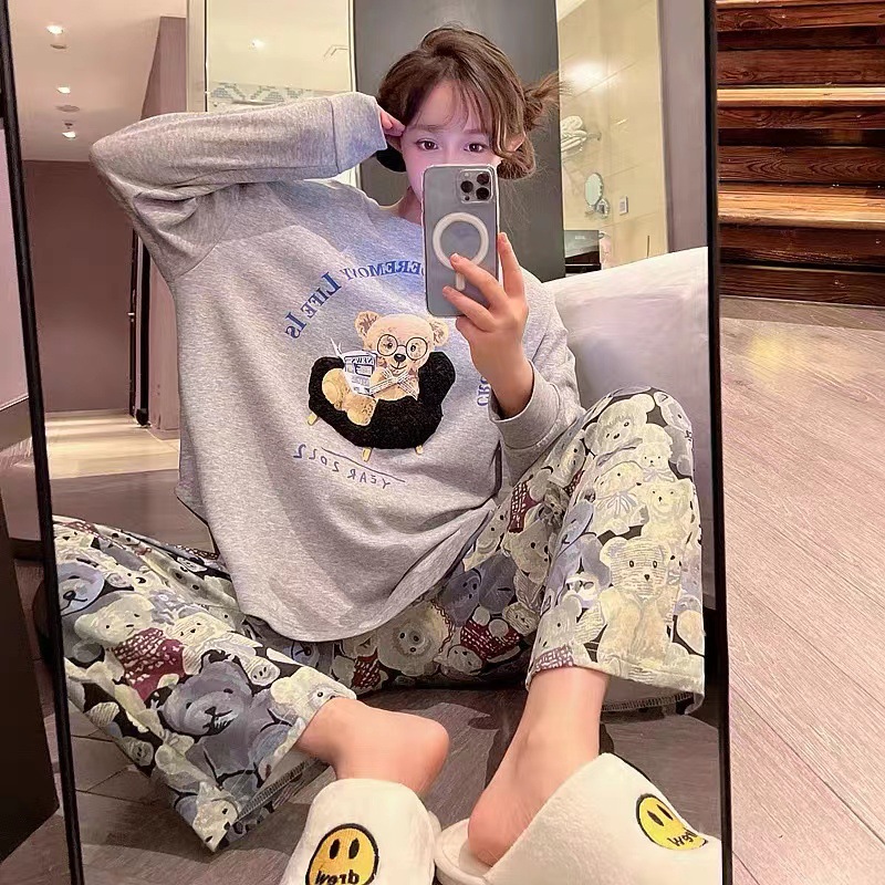 소스 제조 업체 도매 잠옷 여성의 봄과 가을 긴 소매 새로운 가을과 겨울 여성의 가정 의류 세트 마이크로 비즈니스 라이브스토어 가기