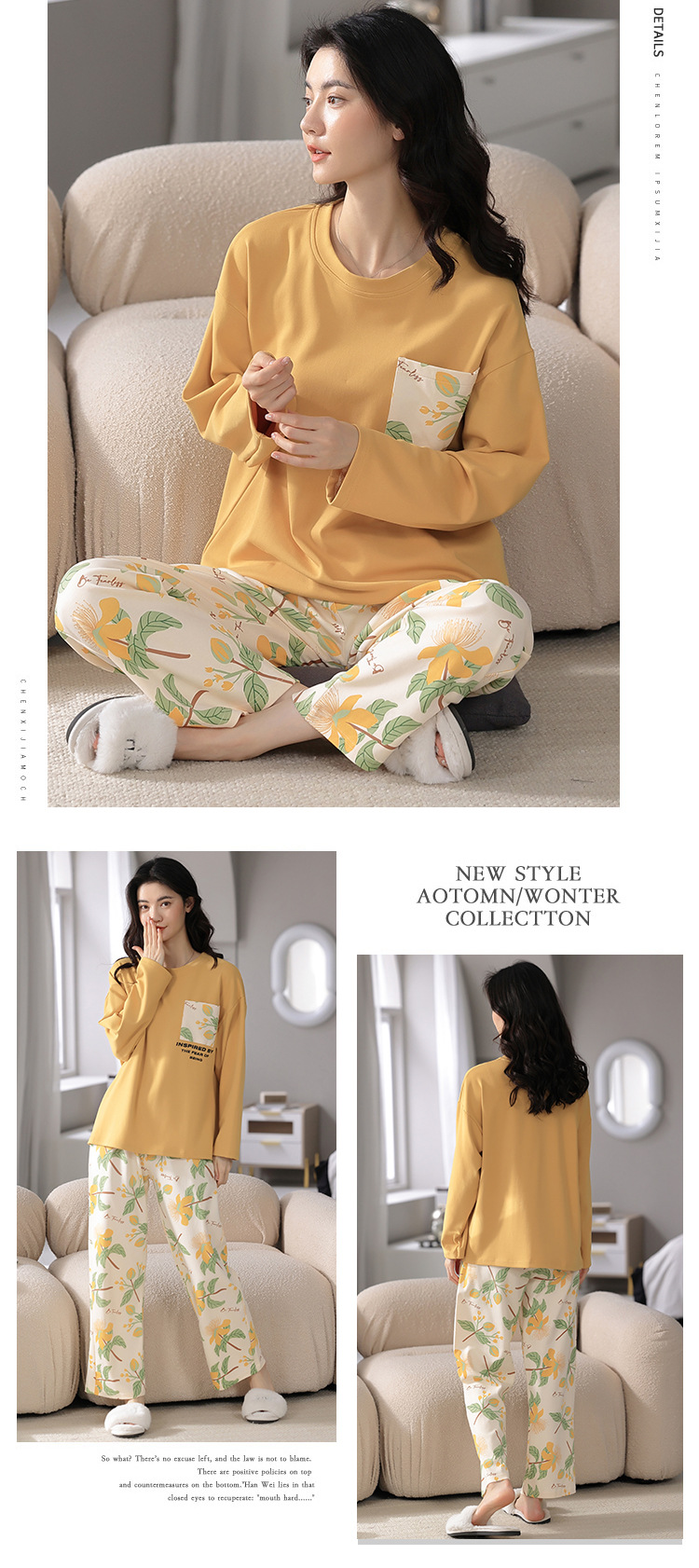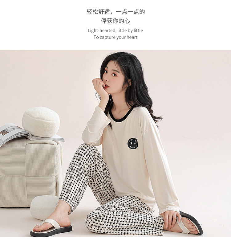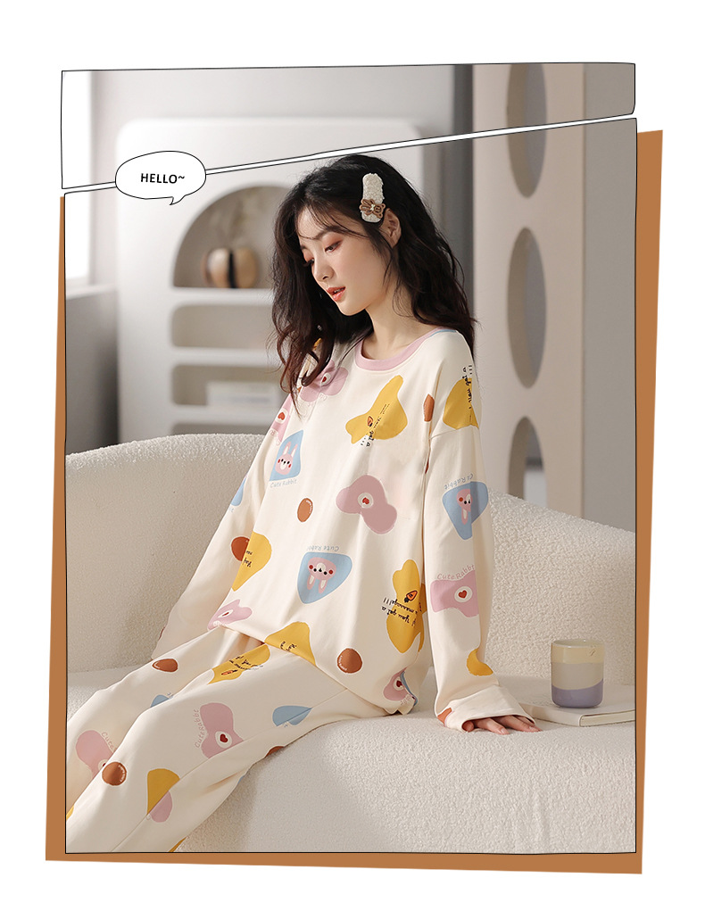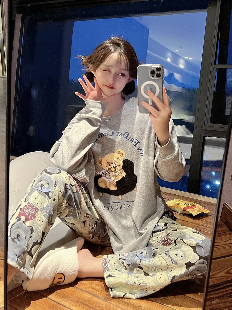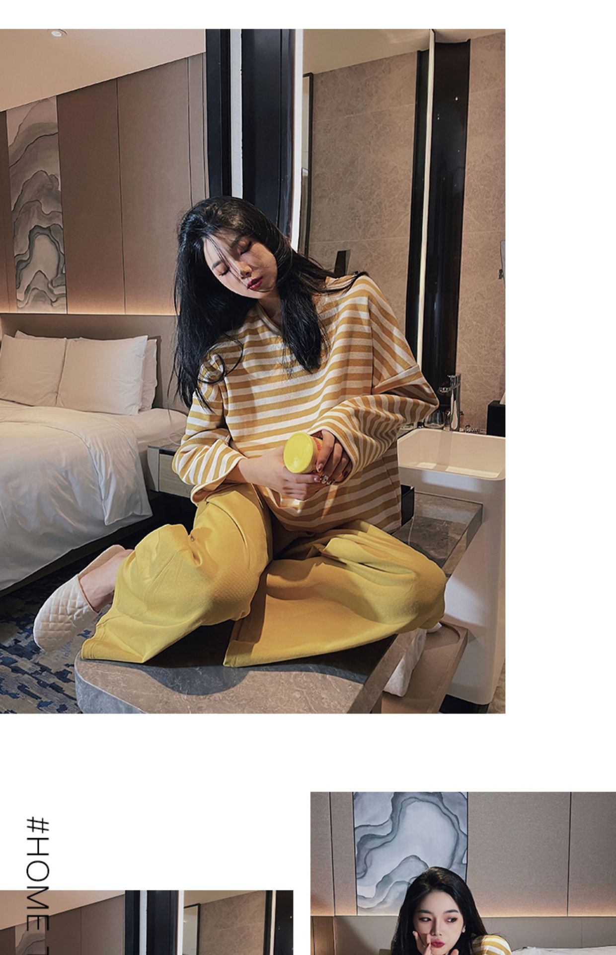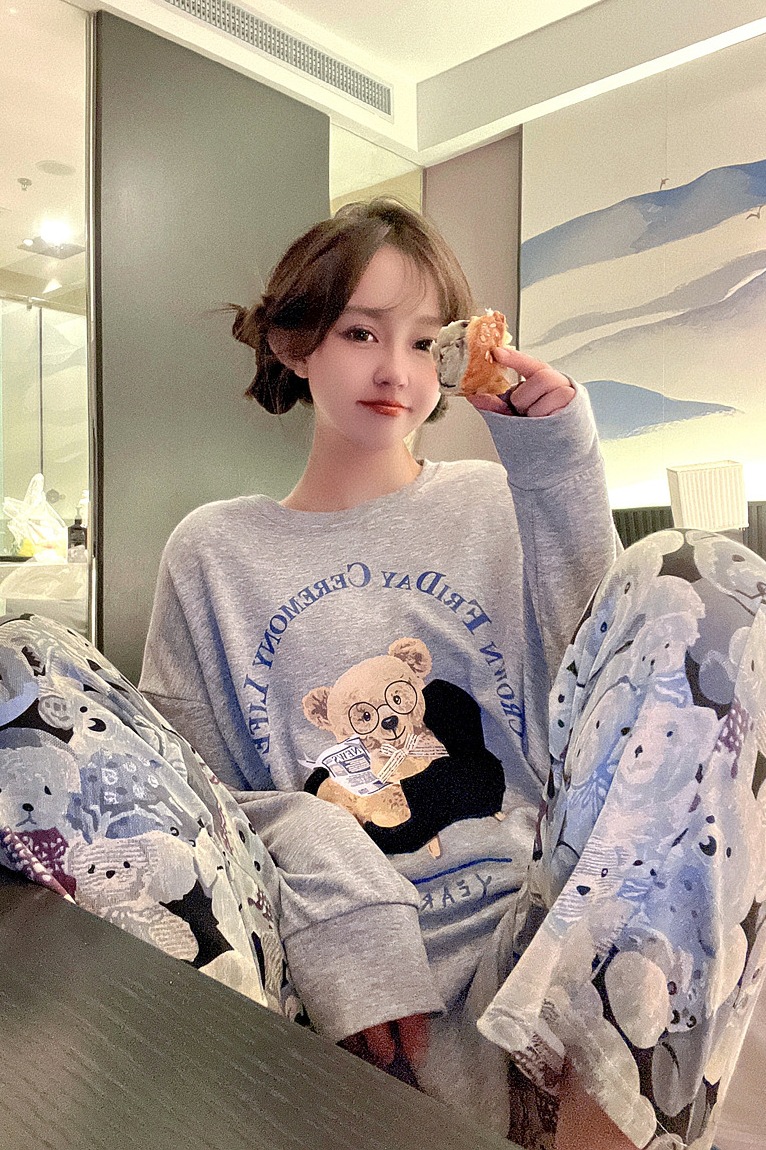 소스 제조 업체 도매 잠옷 여성의 봄과 가을 긴 소매 새로운 가을과 겨울 여성의 가정 의류 세트 마이크로 비즈니스 라이브스토어 가기