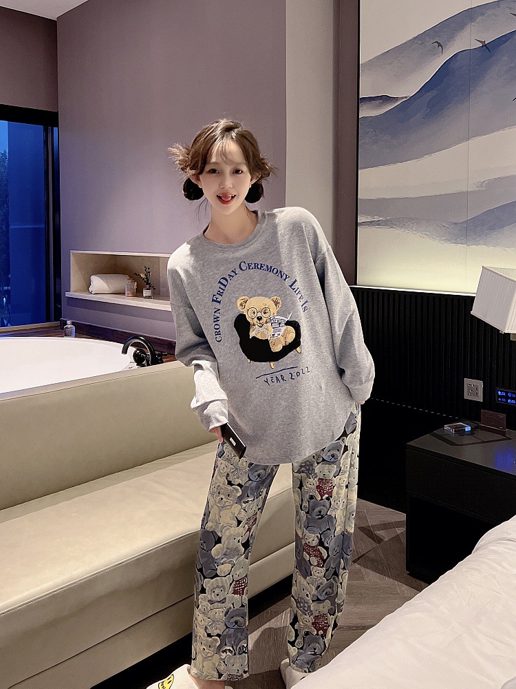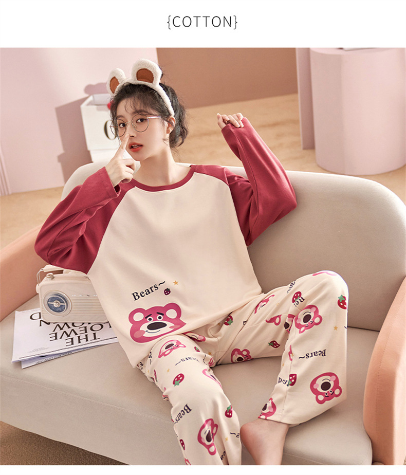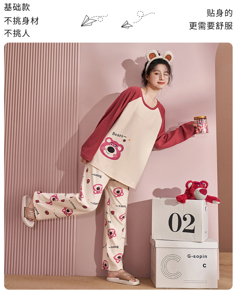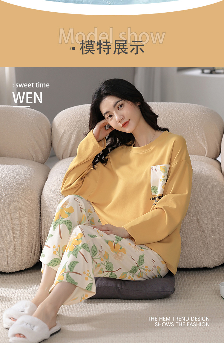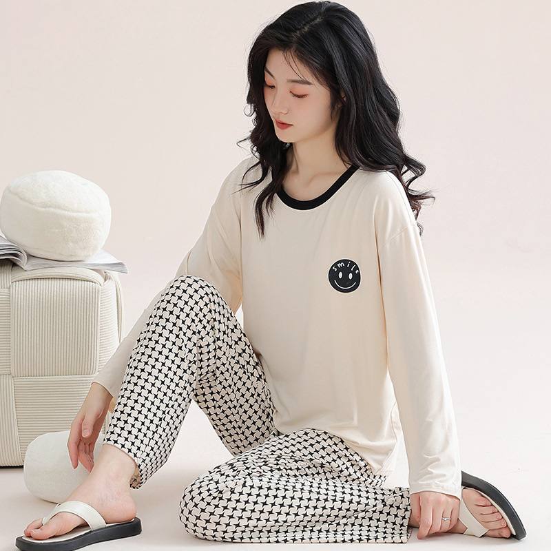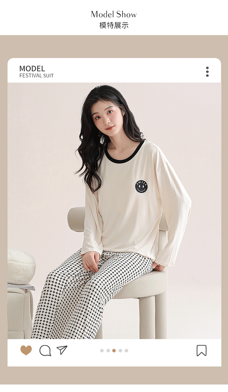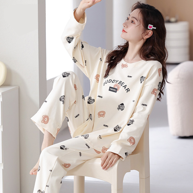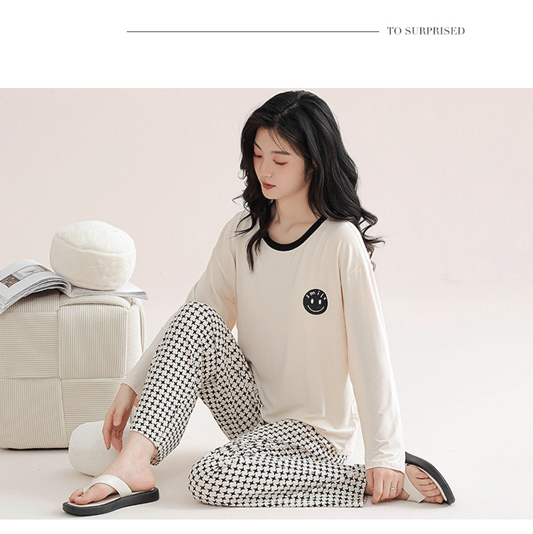 소스 제조 업체 도매 잠옷 여성의 봄과 가을 긴 소매 새로운 가을과 겨울 여성의 가정 의류 세트 마이크로 비즈니스 라이브스토어 가기