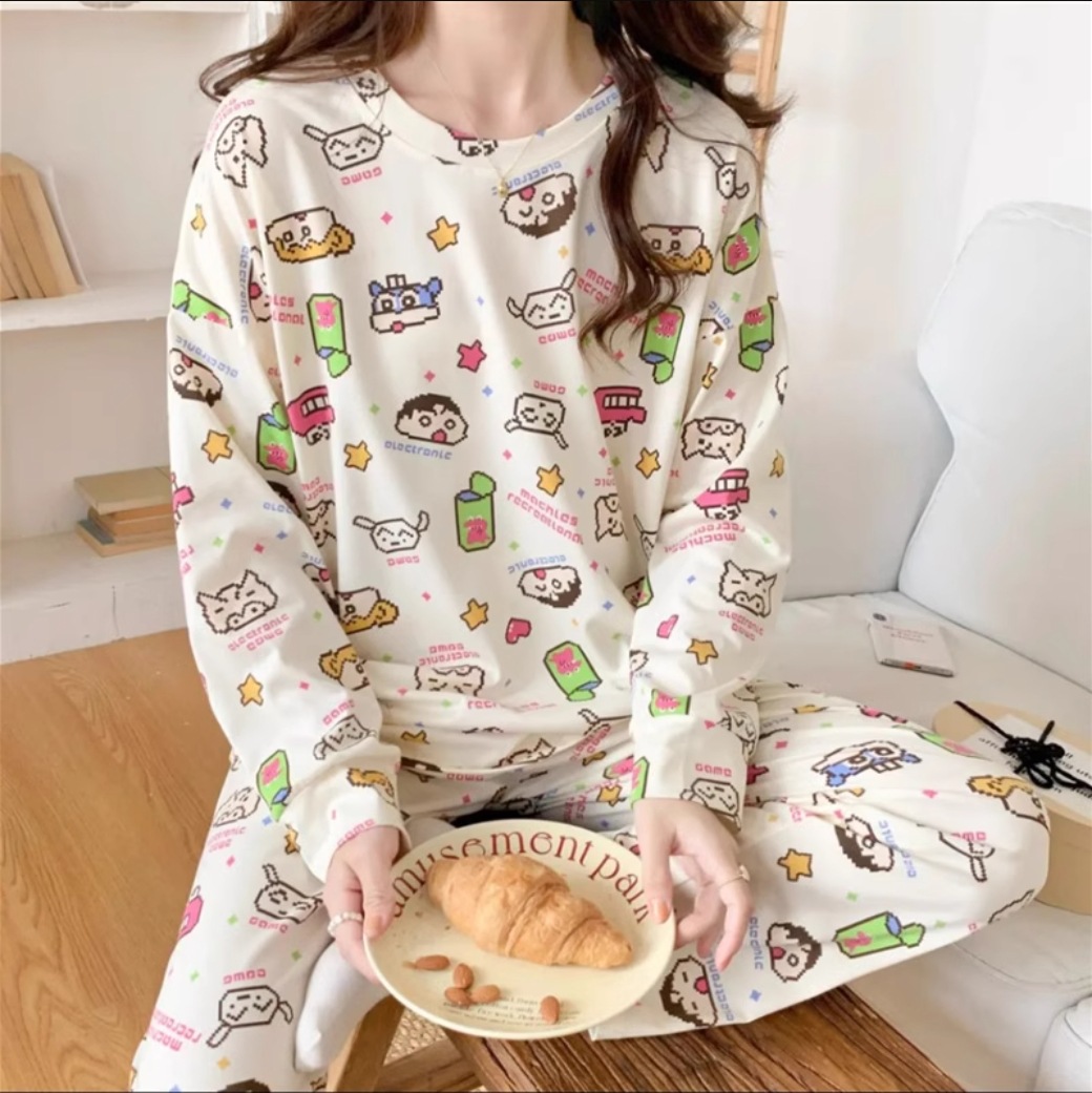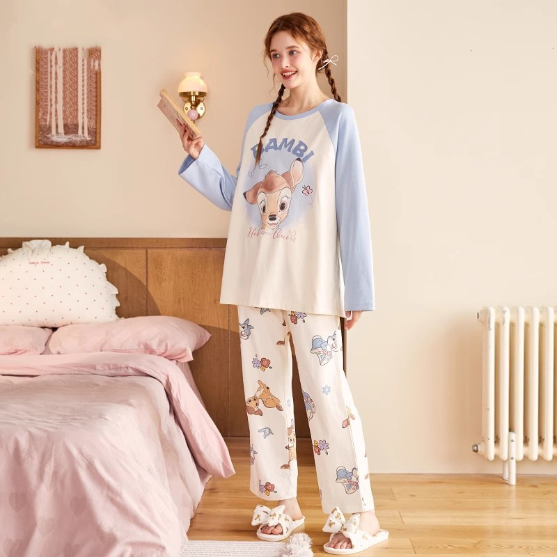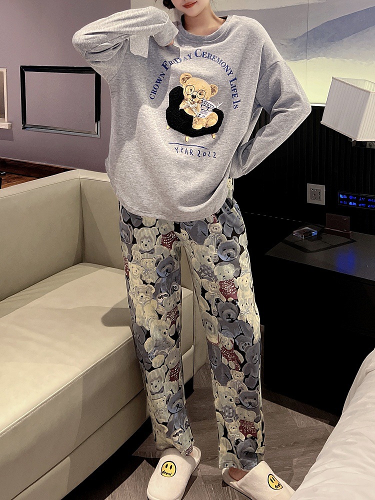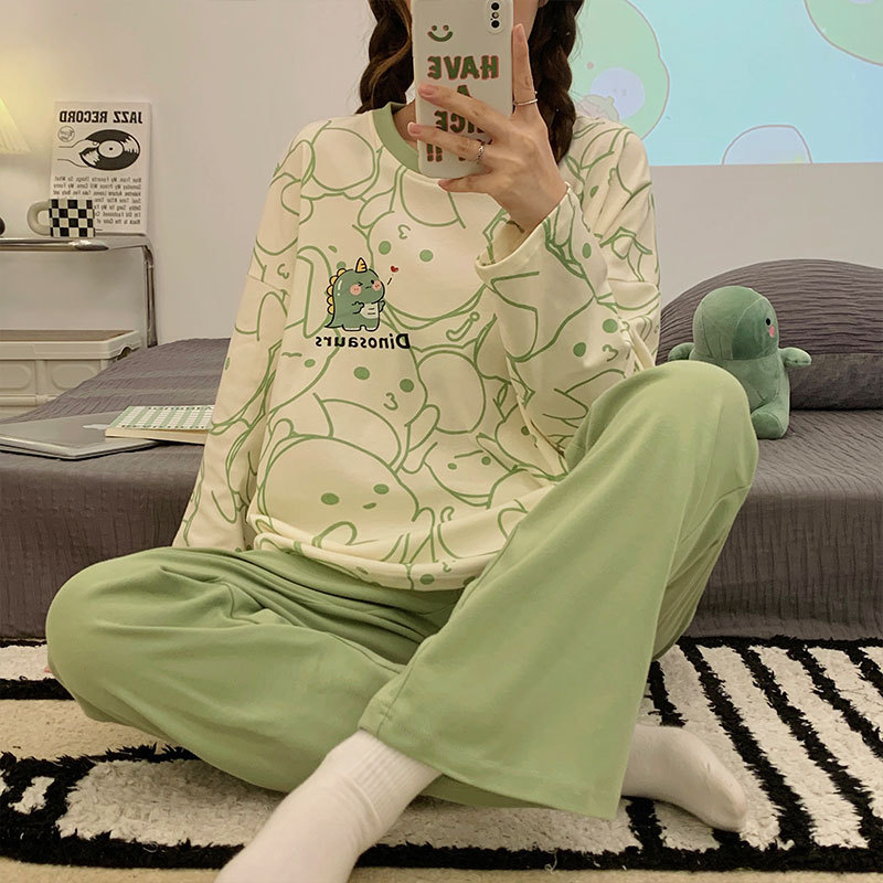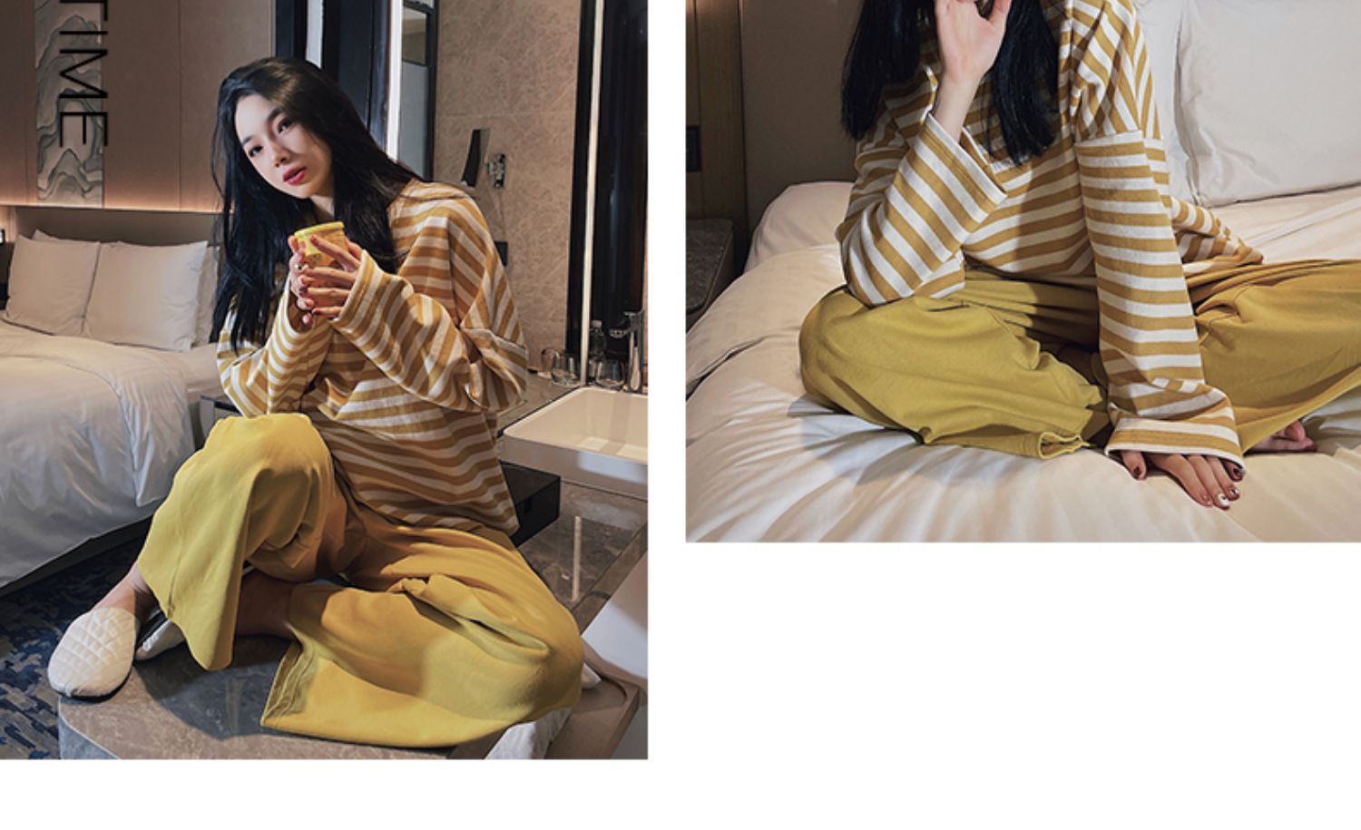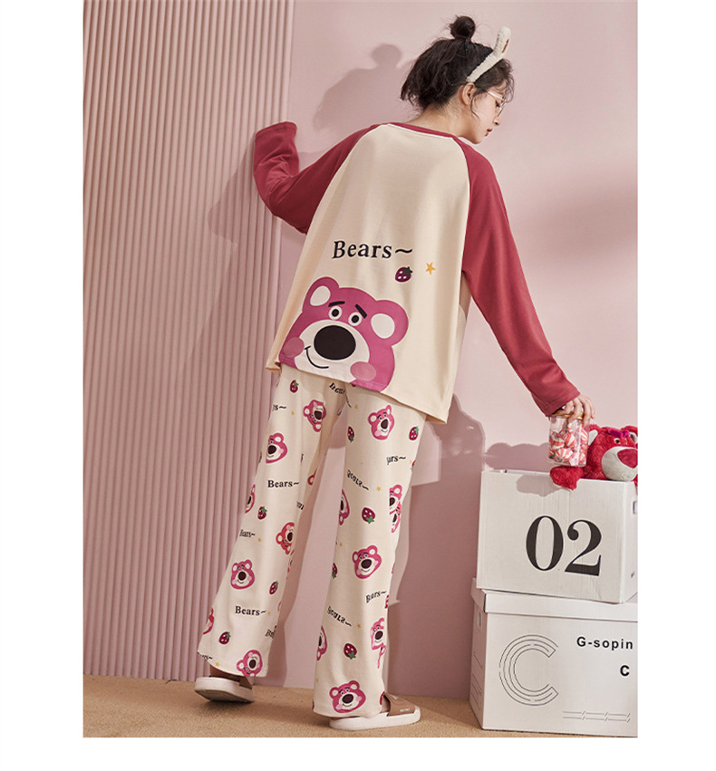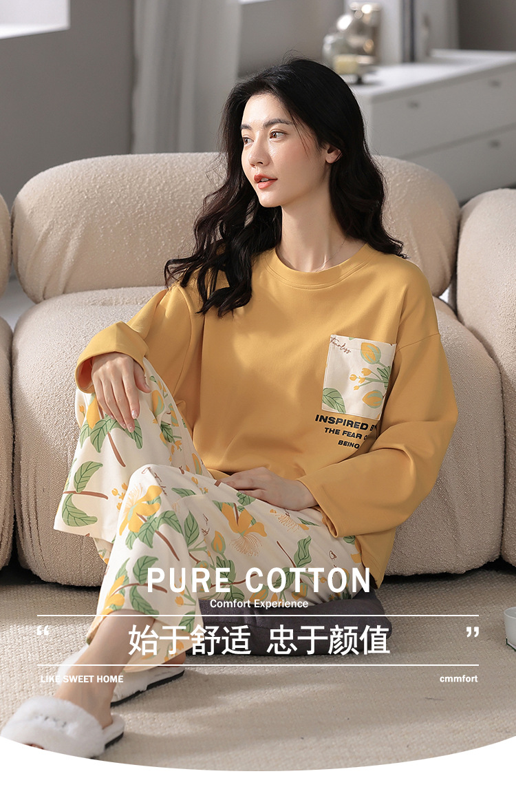 소스 제조 업체 도매 잠옷 여성의 봄과 가을 긴 소매 새로운 가을과 겨울 여성의 가정 의류 세트 마이크로 비즈니스 라이브스토어 가기