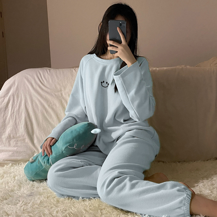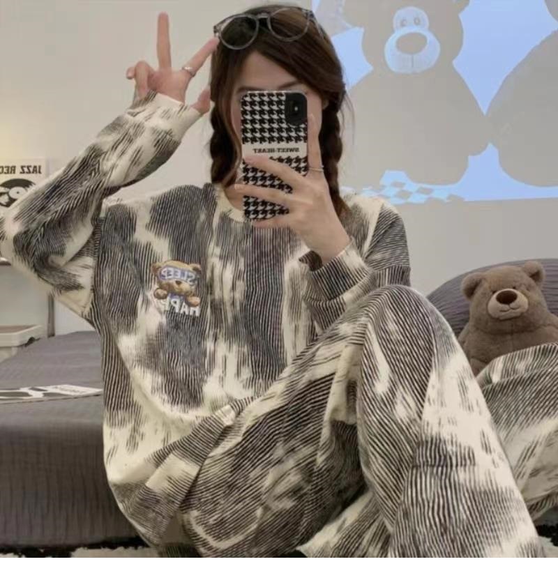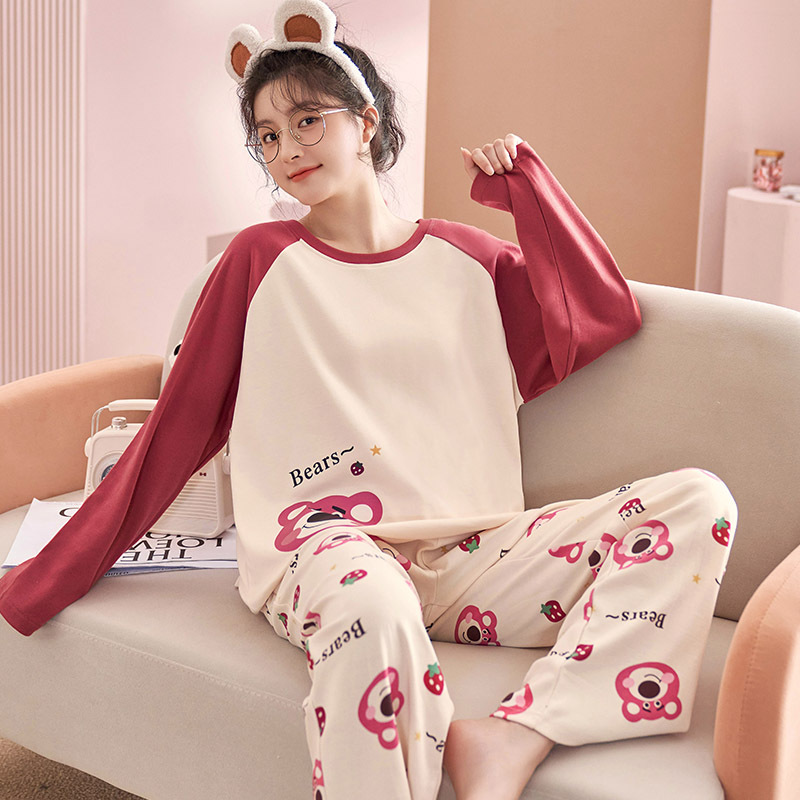 소스 제조 업체 도매 잠옷 여성의 봄과 가을 긴 소매 새로운 가을과 겨울 여성의 가정 의류 세트 마이크로 비즈니스 라이브