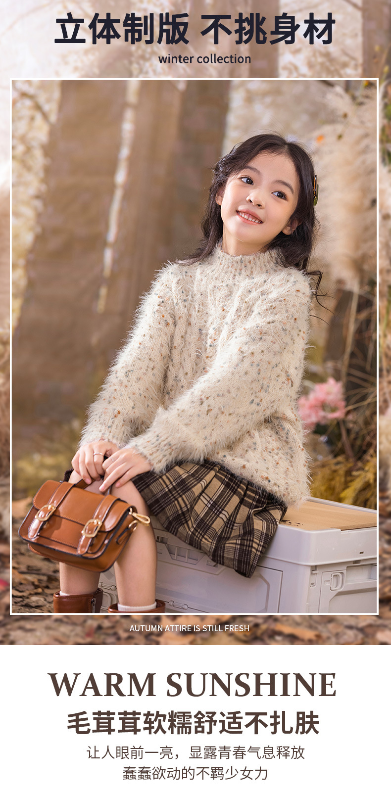 여아용 스웨터 2025 신상 가을 겨울 패셔너블한 큰 아이들 겨울용 밍크 벨벳 풀오버 니트 베이스 셔츠스토어 가기