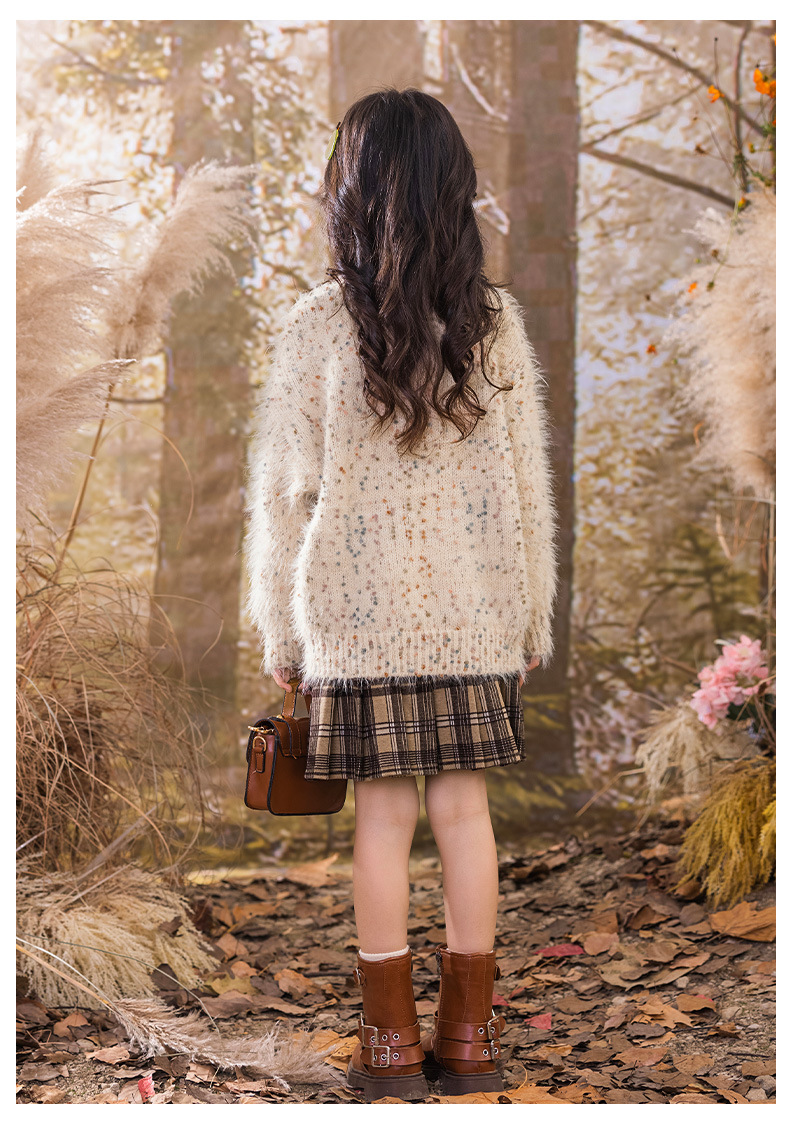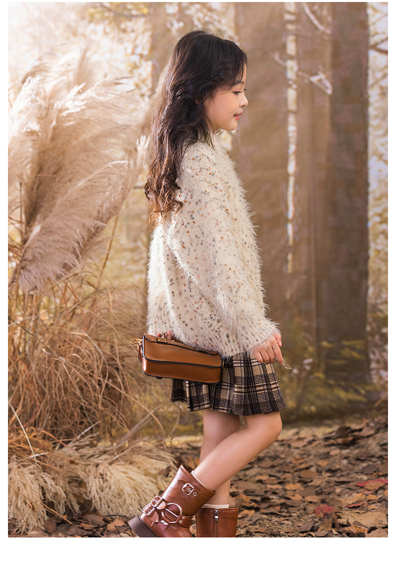 女童毛衣套装2024春秋季新款中大童开衫外套衬衫百褶裙童装三件套