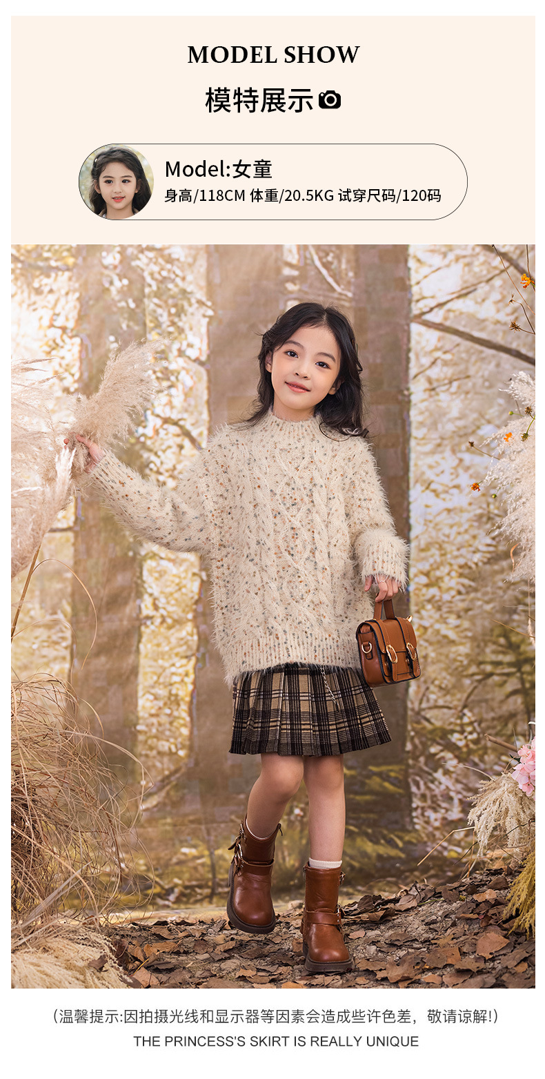 女童套装裙2024秋冬装新款格子背带裙儿童打底毛衣两件套公主裙
