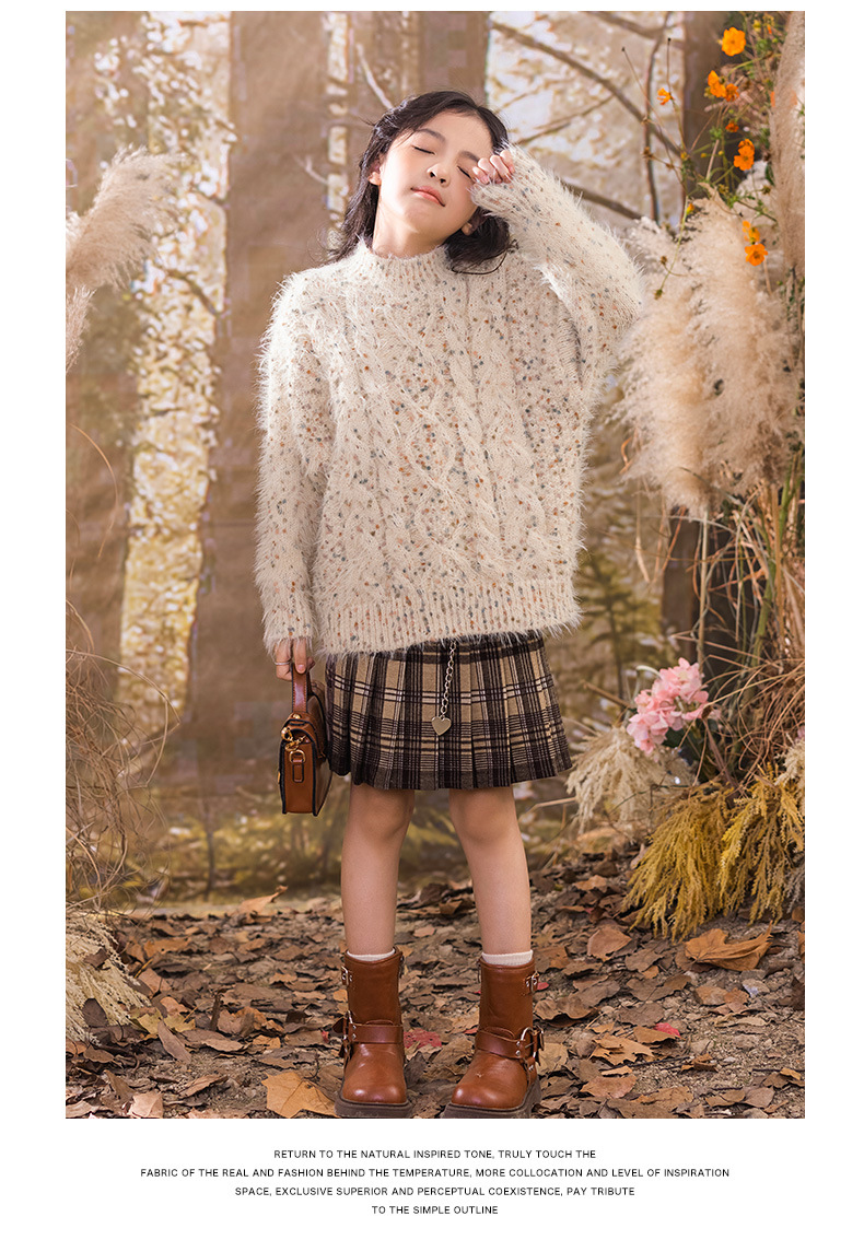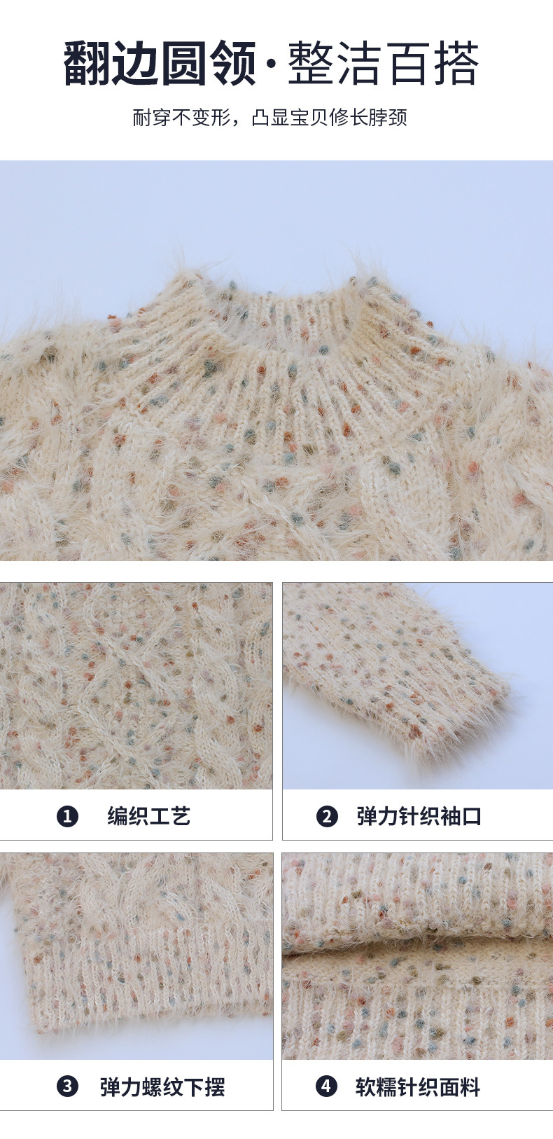 여아용 스웨터 2025 신상 가을 겨울 패셔너블한 큰 아이들 겨울용 밍크 벨벳 풀오버 니트 베이스 셔츠