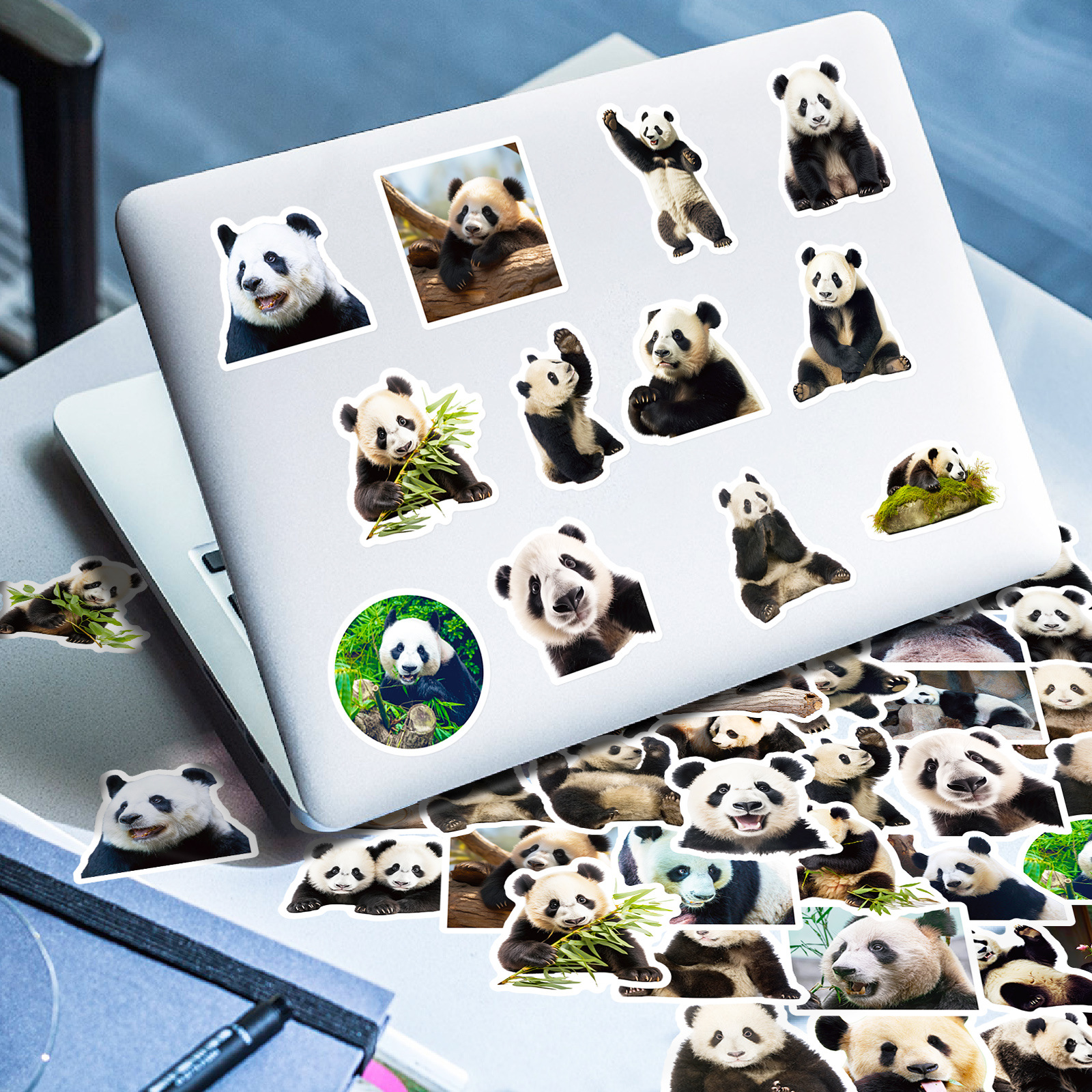 50 팬더 현실적인 스티커 귀여운 핫 팬더 꽃 표현 가방 스티커 컴퓨터 휴대 전화 물 컵 스티커스토어 가기