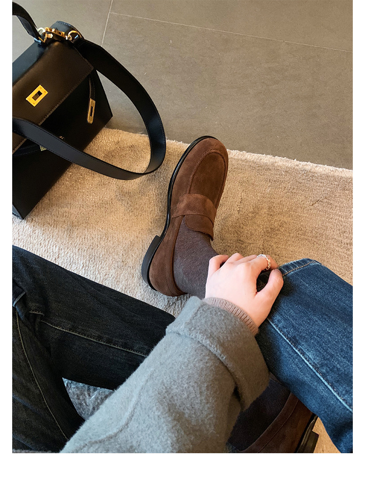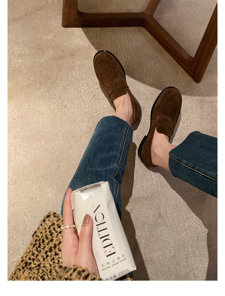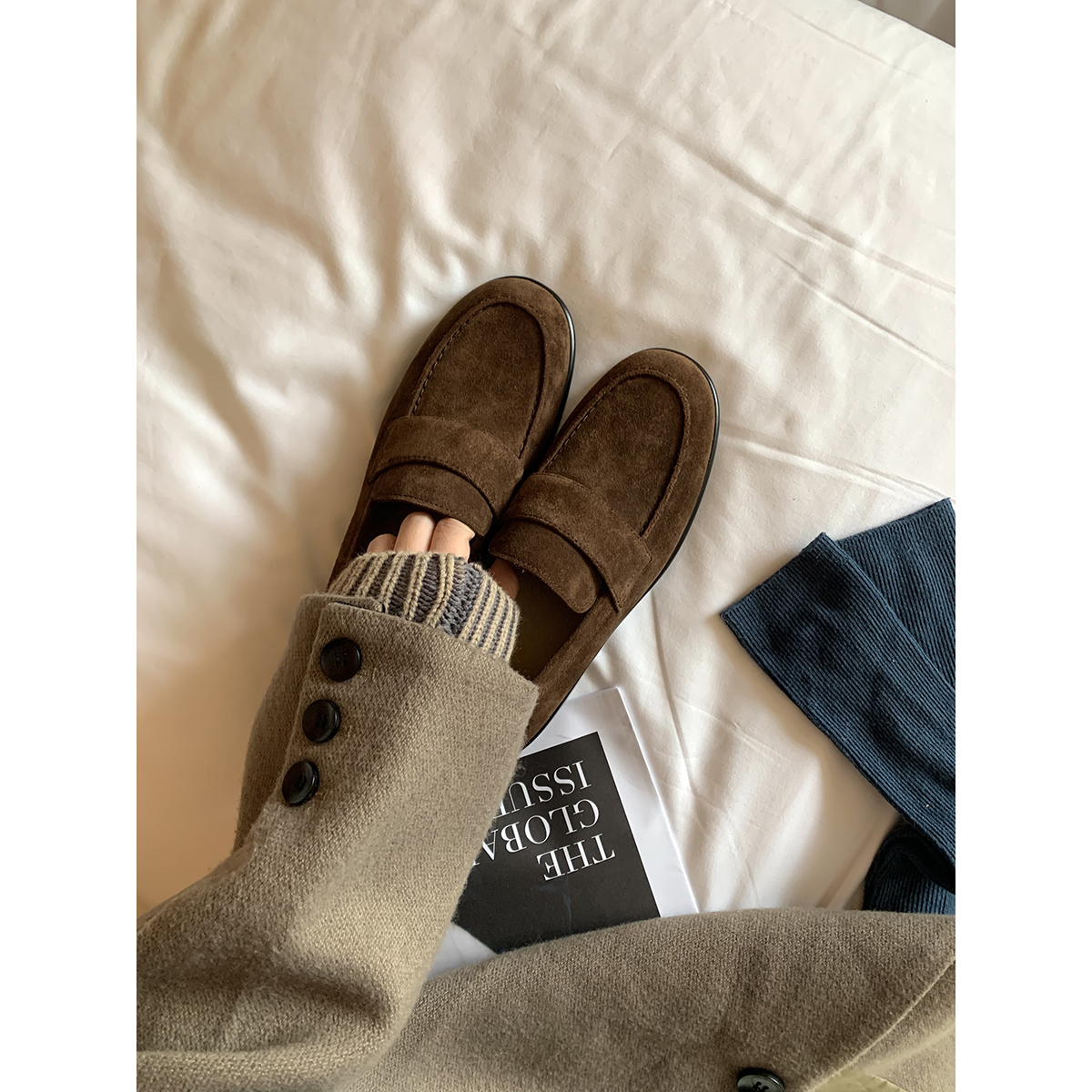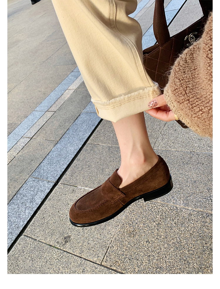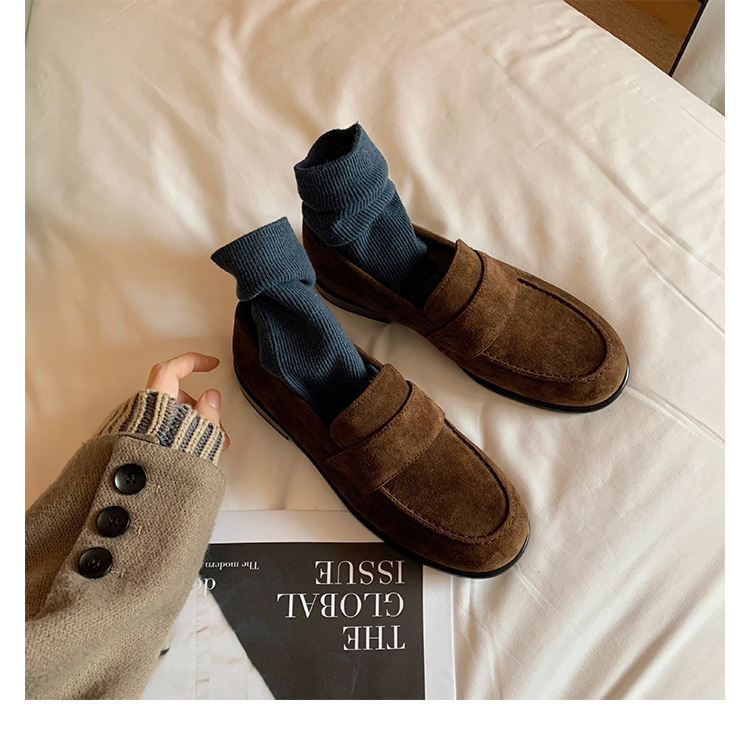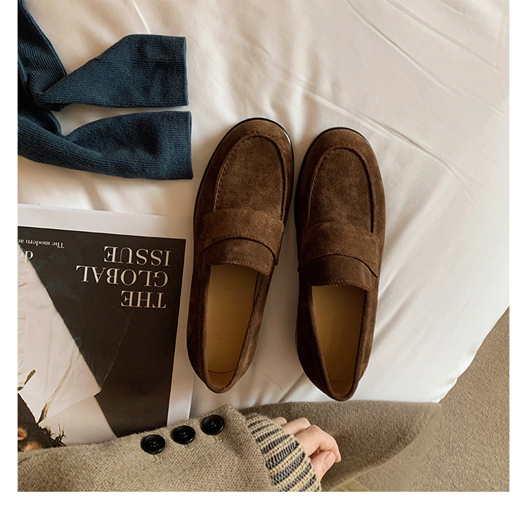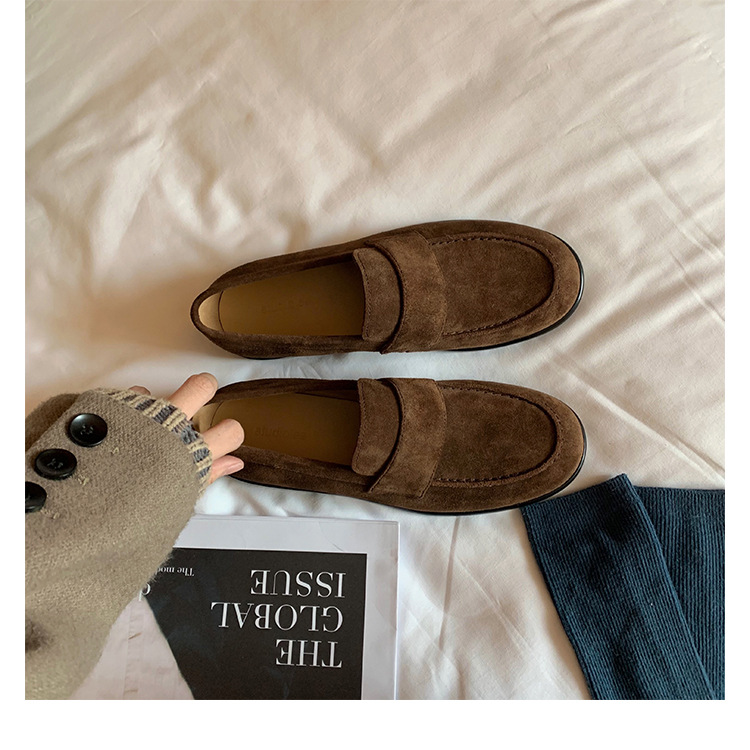 재고 레트로 영국 스타일 대학 스타일 플랫 캐주얼 올 매치 플랫 슬립 온 게으른 로퍼 여성용 가죽 신발스토어 가기