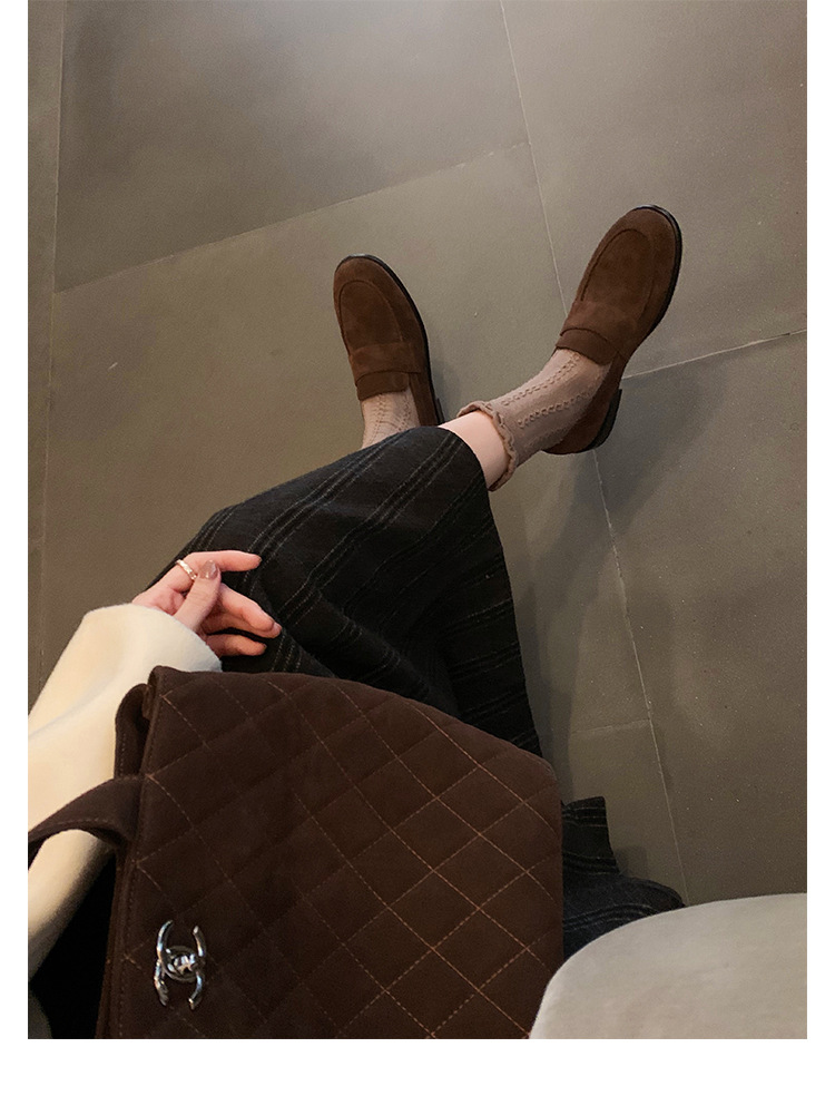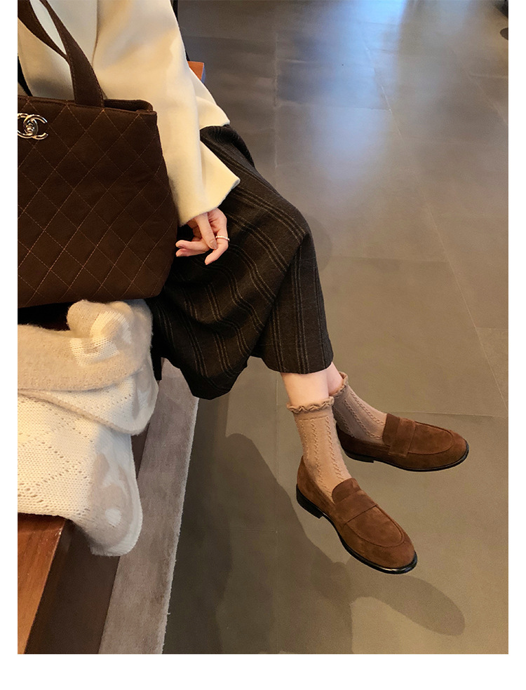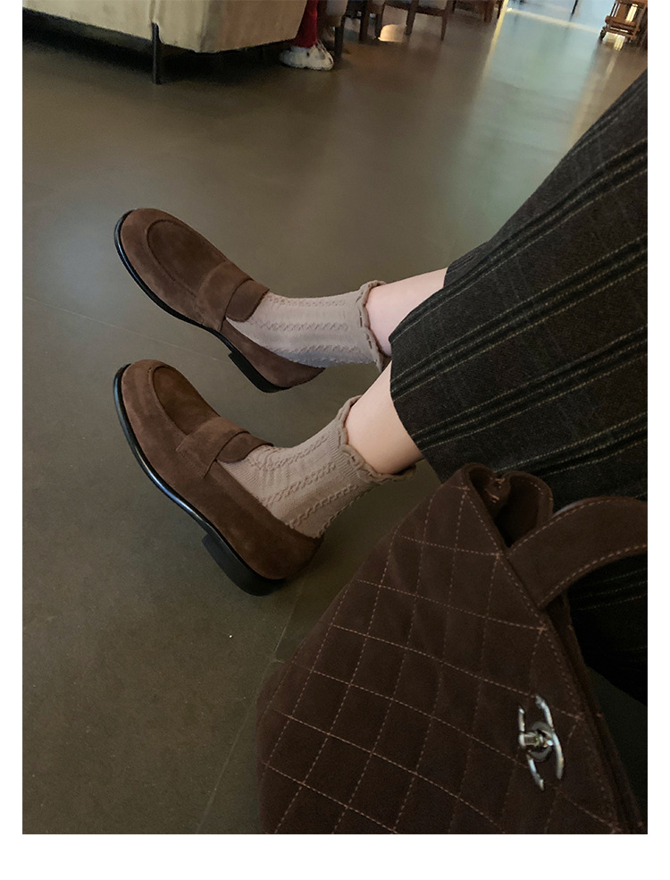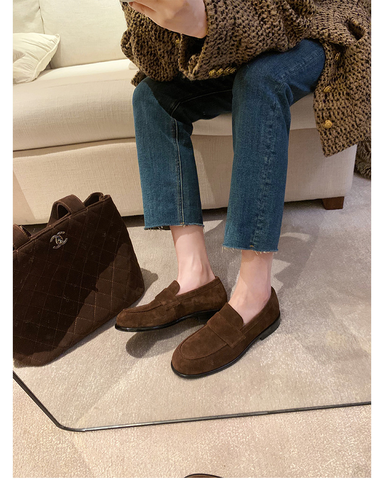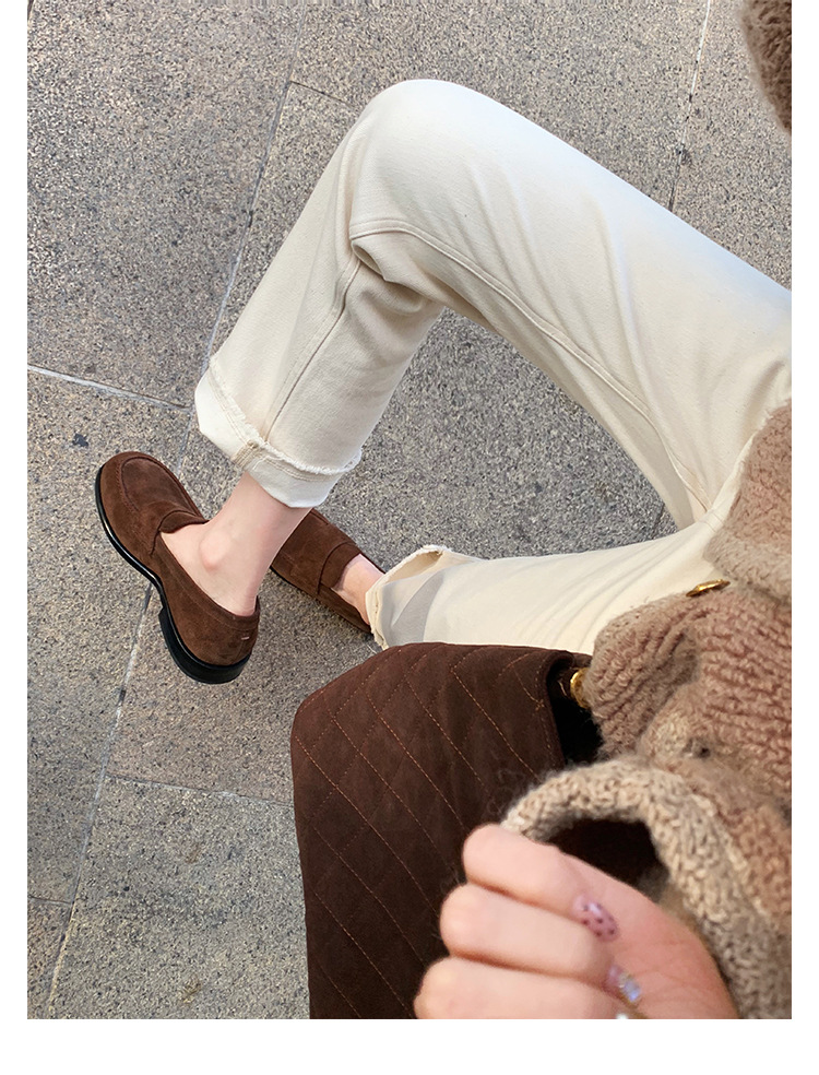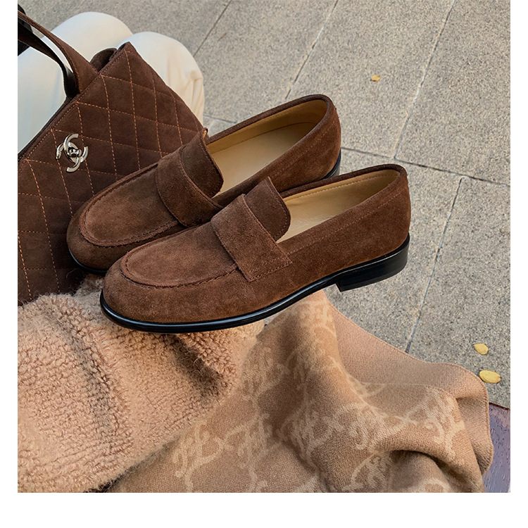 재고 레트로 영국 스타일 대학 스타일 플랫 캐주얼 올 매치 플랫 슬립 온 게으른 로퍼 여성용 가죽 신발스토어 가기