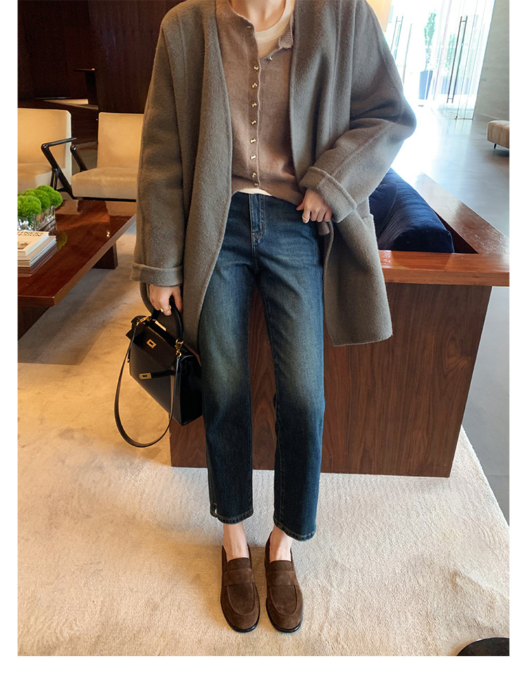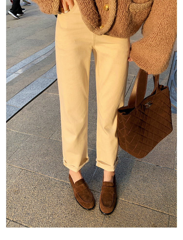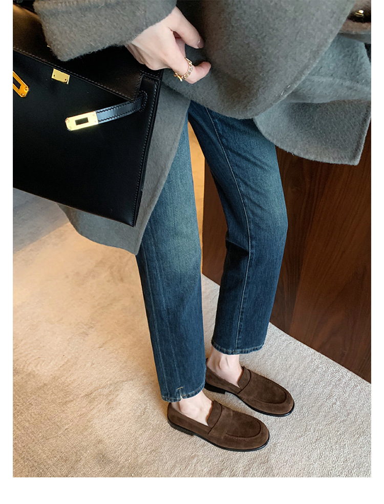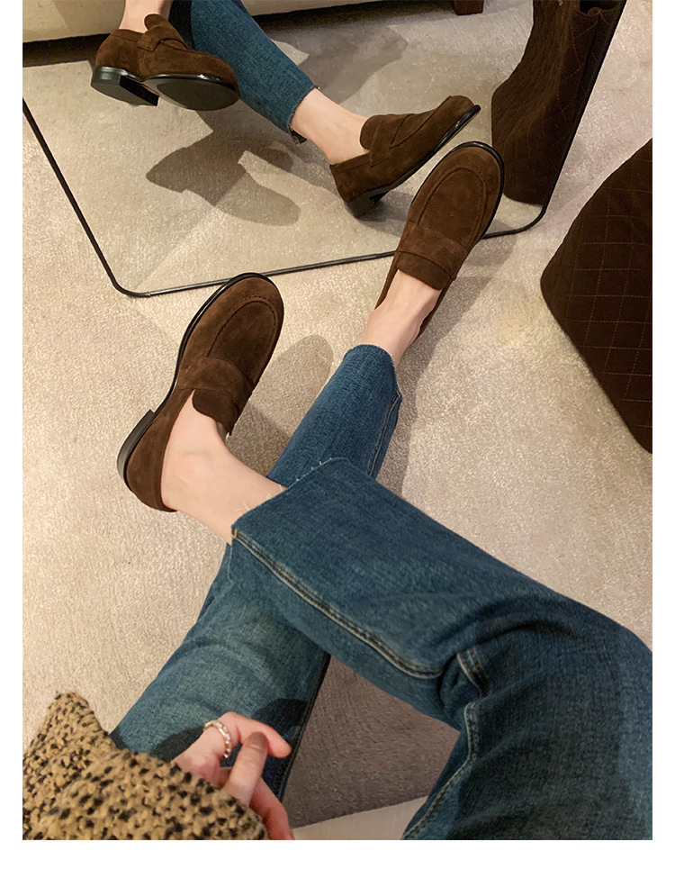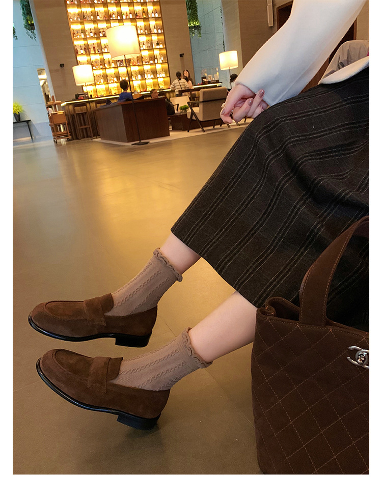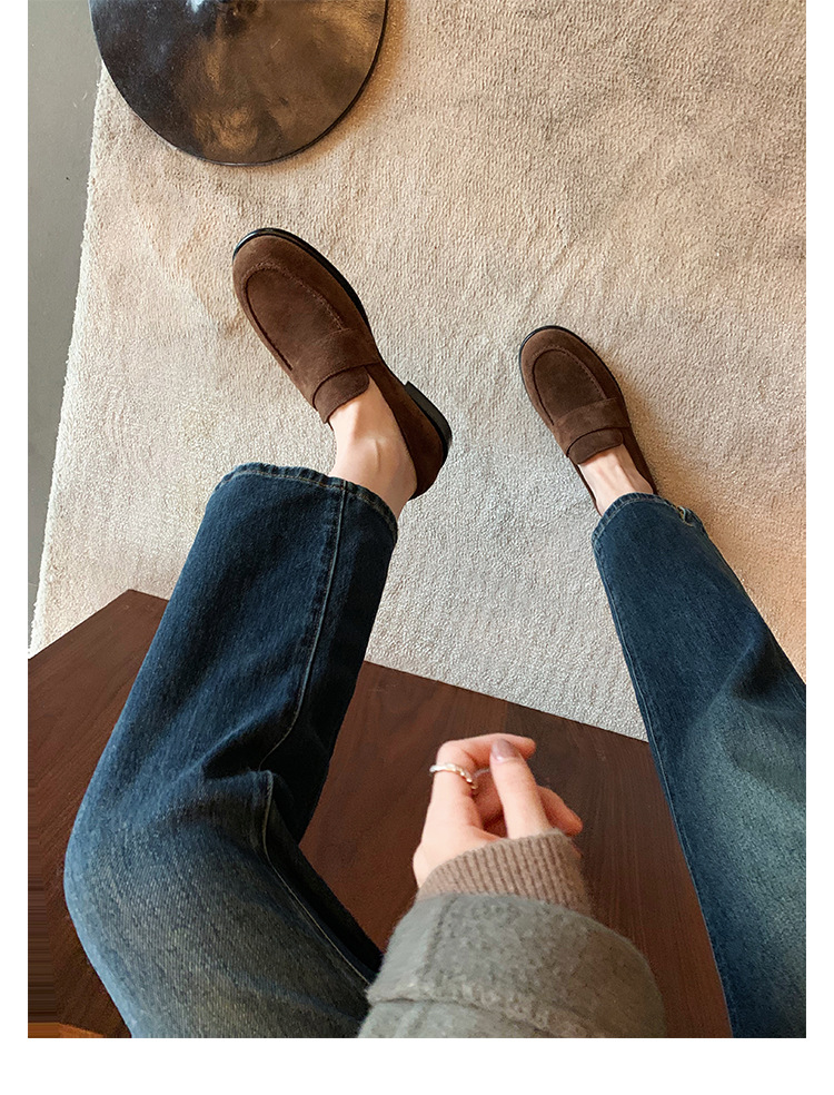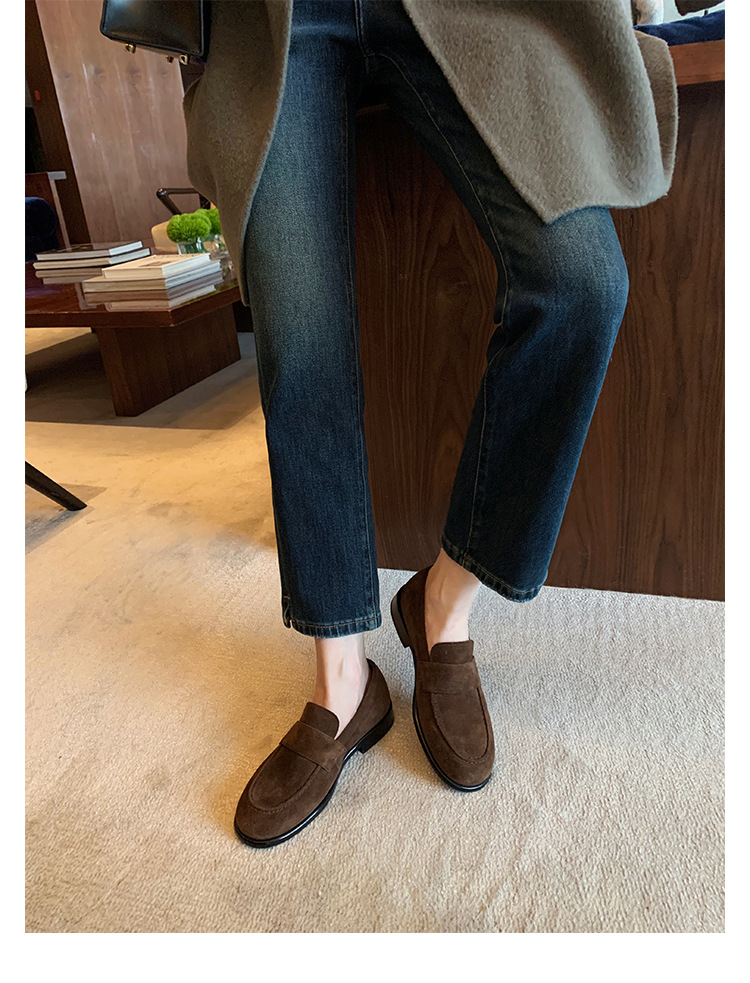 재고 레트로 영국 스타일 대학 스타일 플랫 캐주얼 올 매치 플랫 슬립 온 게으른 로퍼 여성용 가죽 신발스토어 가기