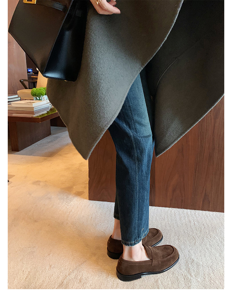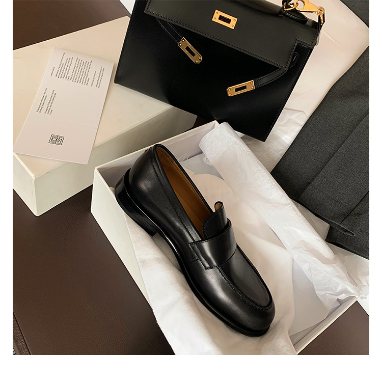 재고 레트로 영국 스타일 대학 스타일 플랫 캐주얼 올 매치 플랫 슬립 온 게으른 로퍼 여성용 가죽 신발