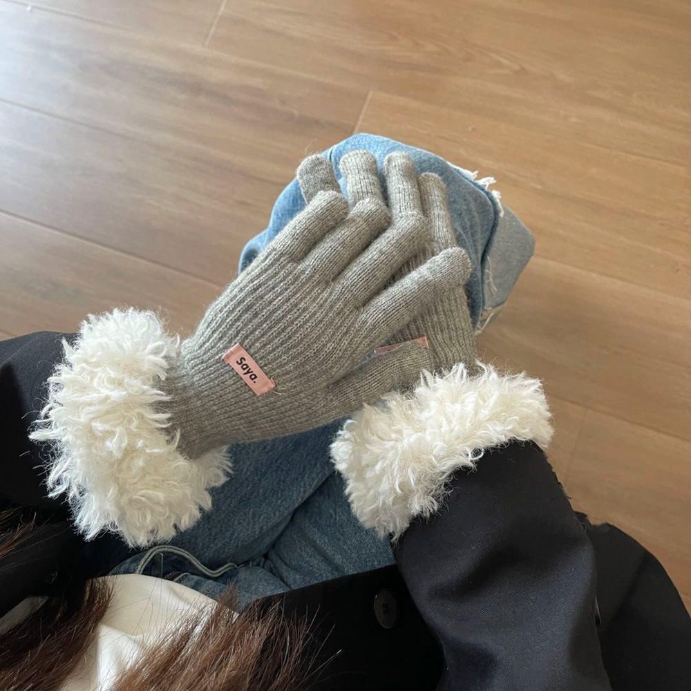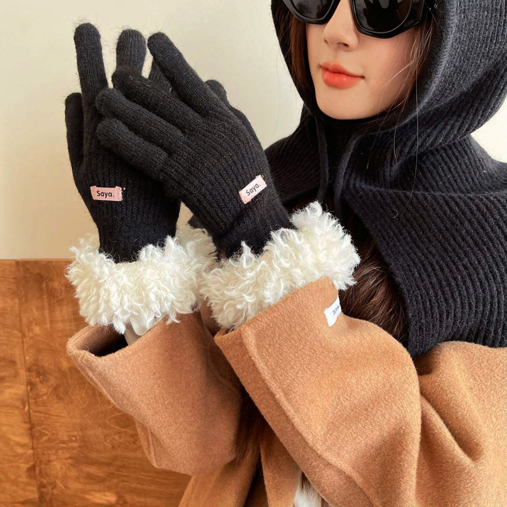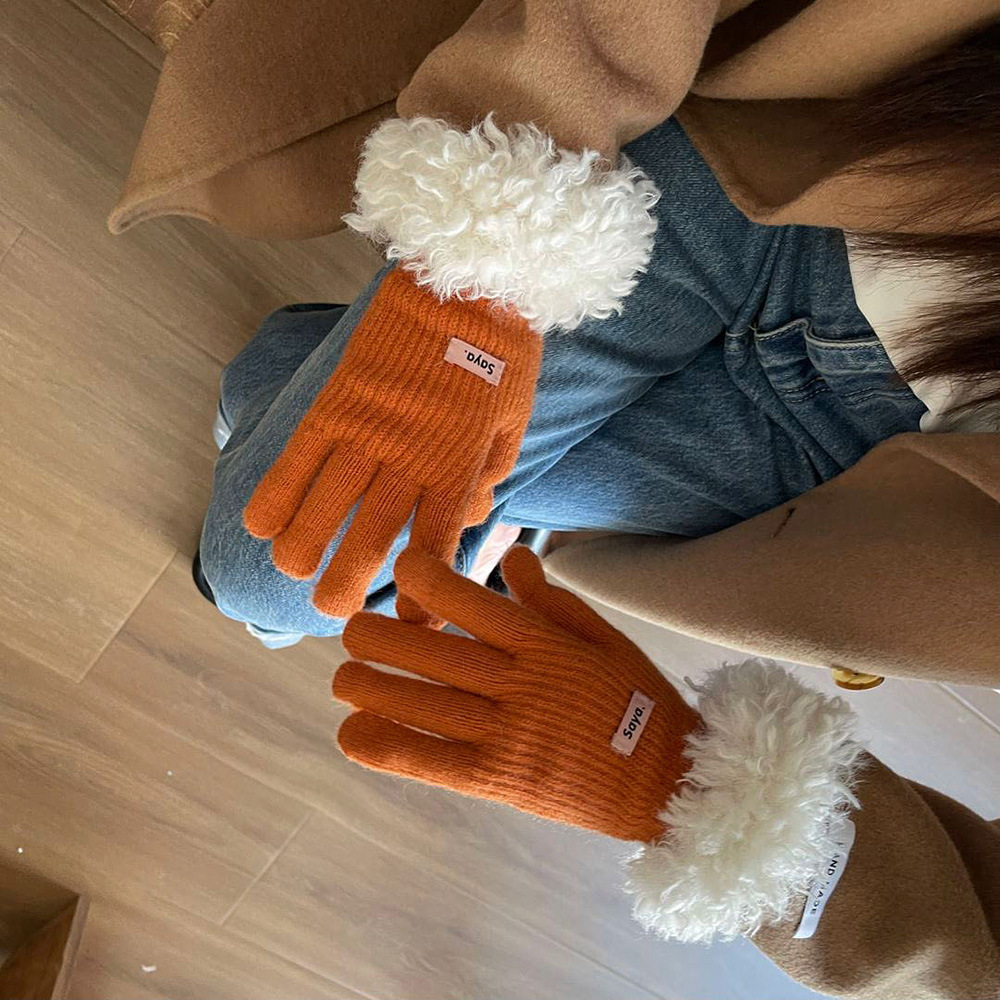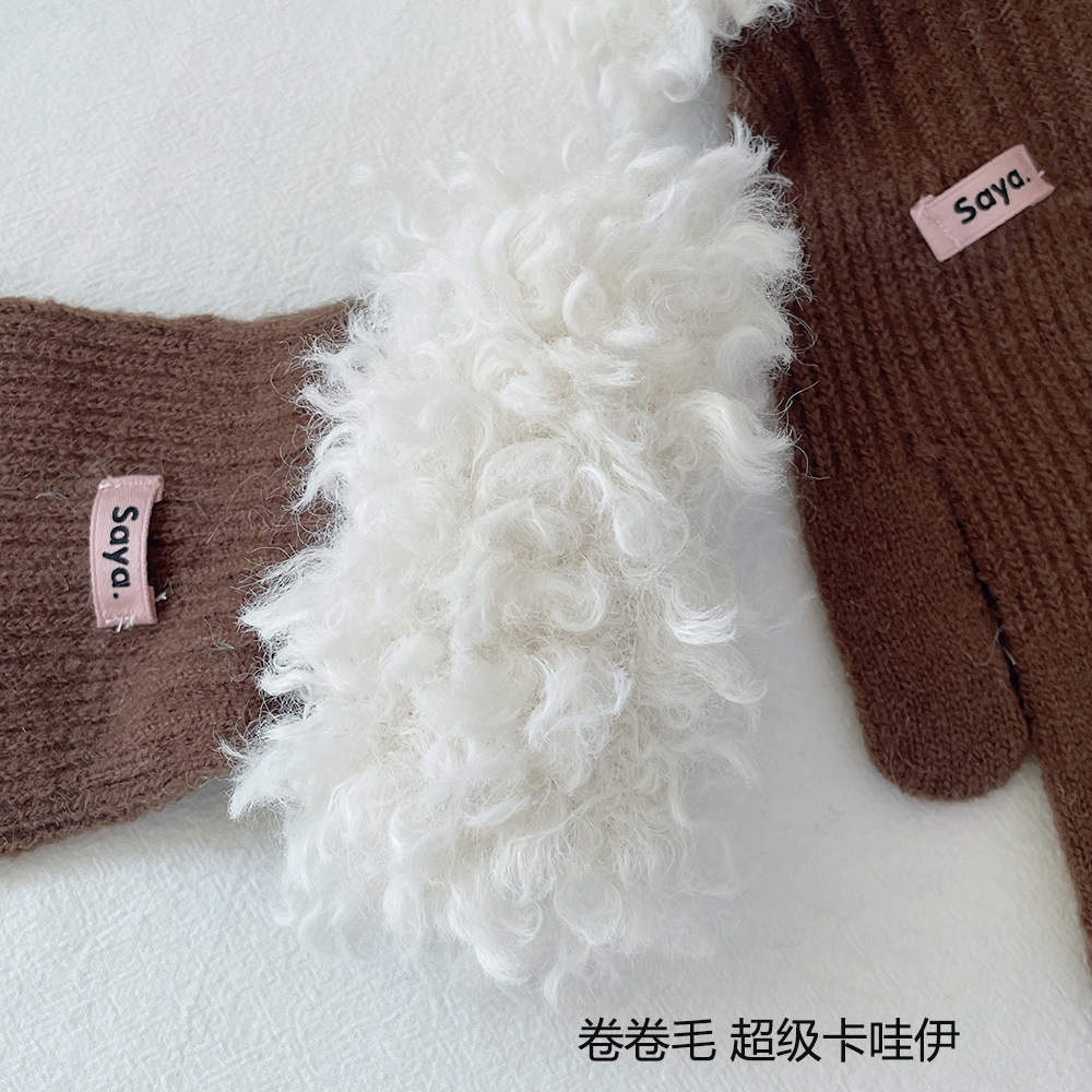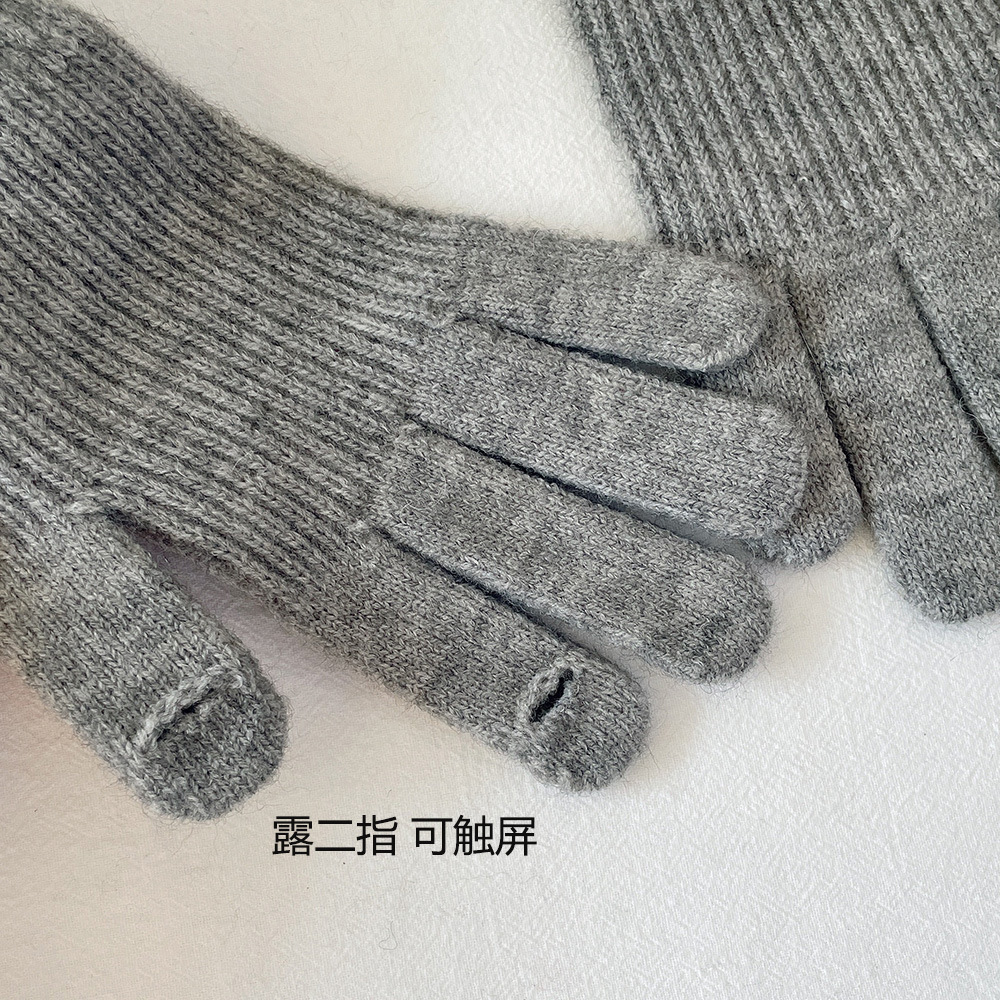 고가 마오 니트 울 장갑 여성용 이슬 두 손가락 풀 커버 터치 스크린 장갑 손목 방풍 및 보온 장갑스토어 가기