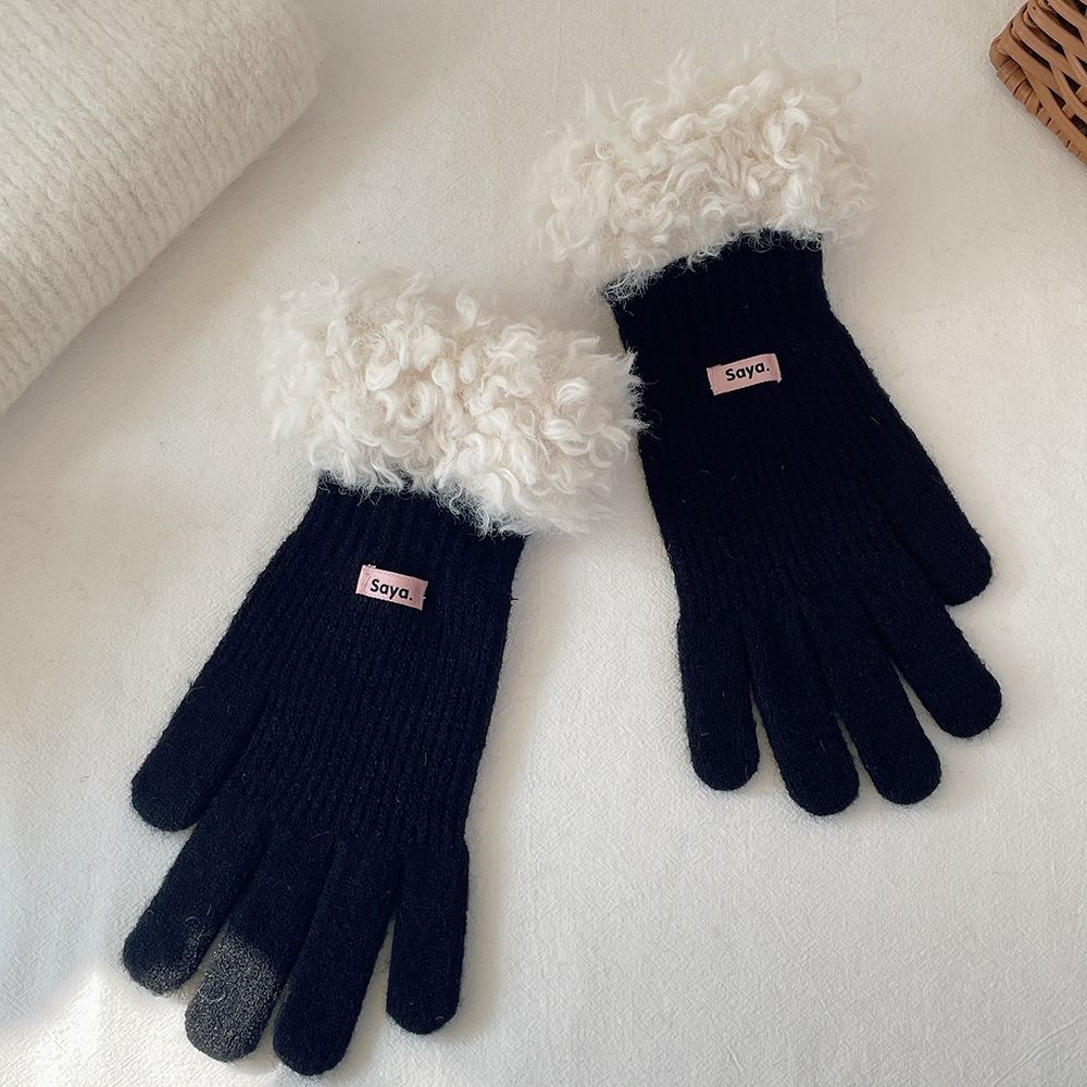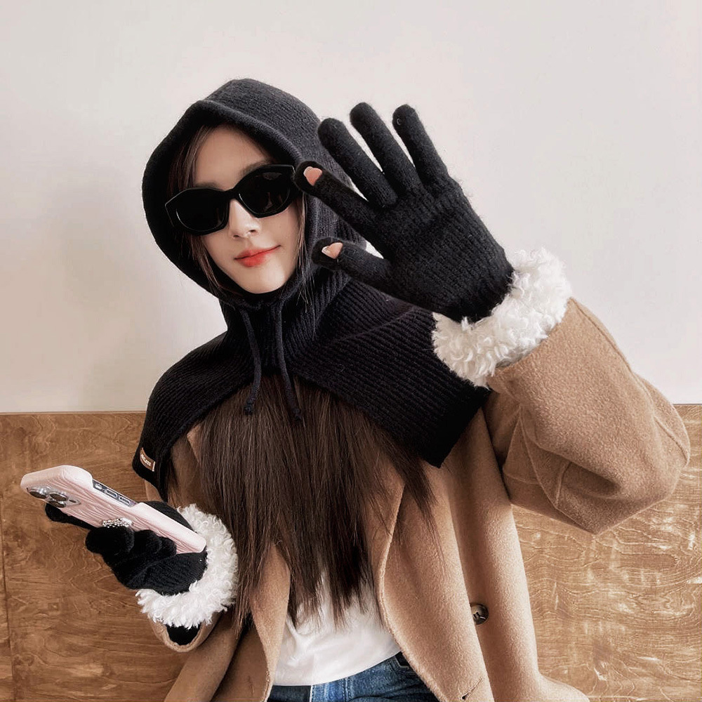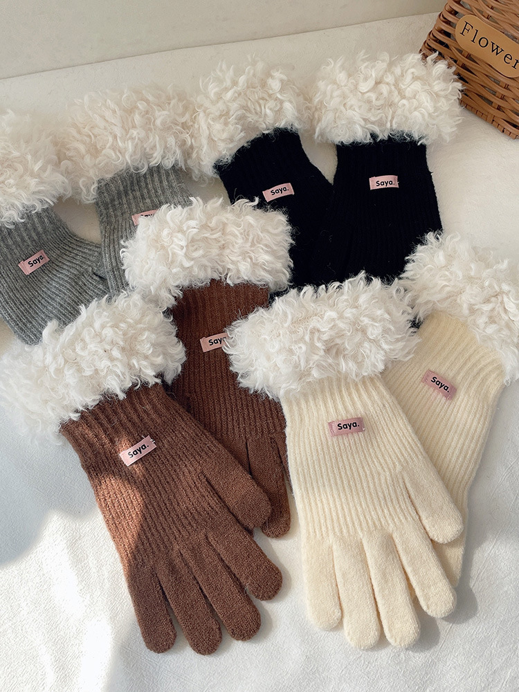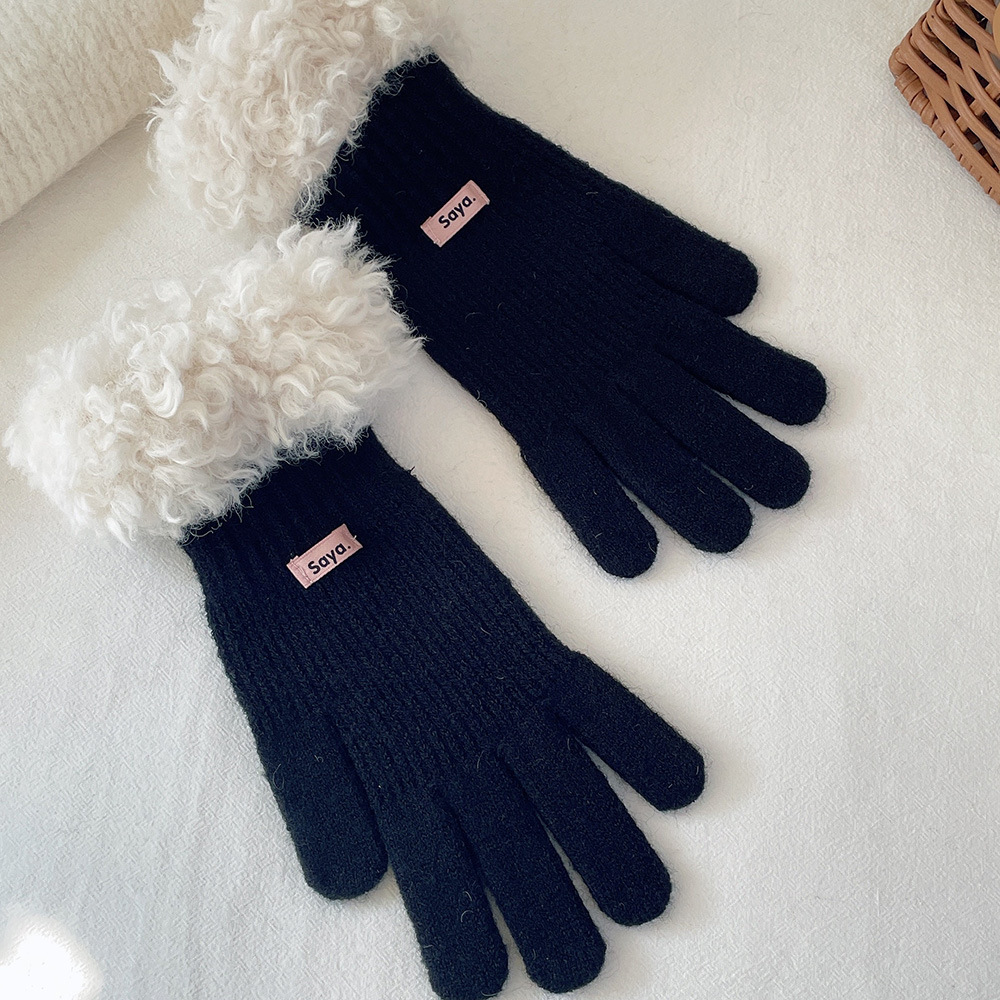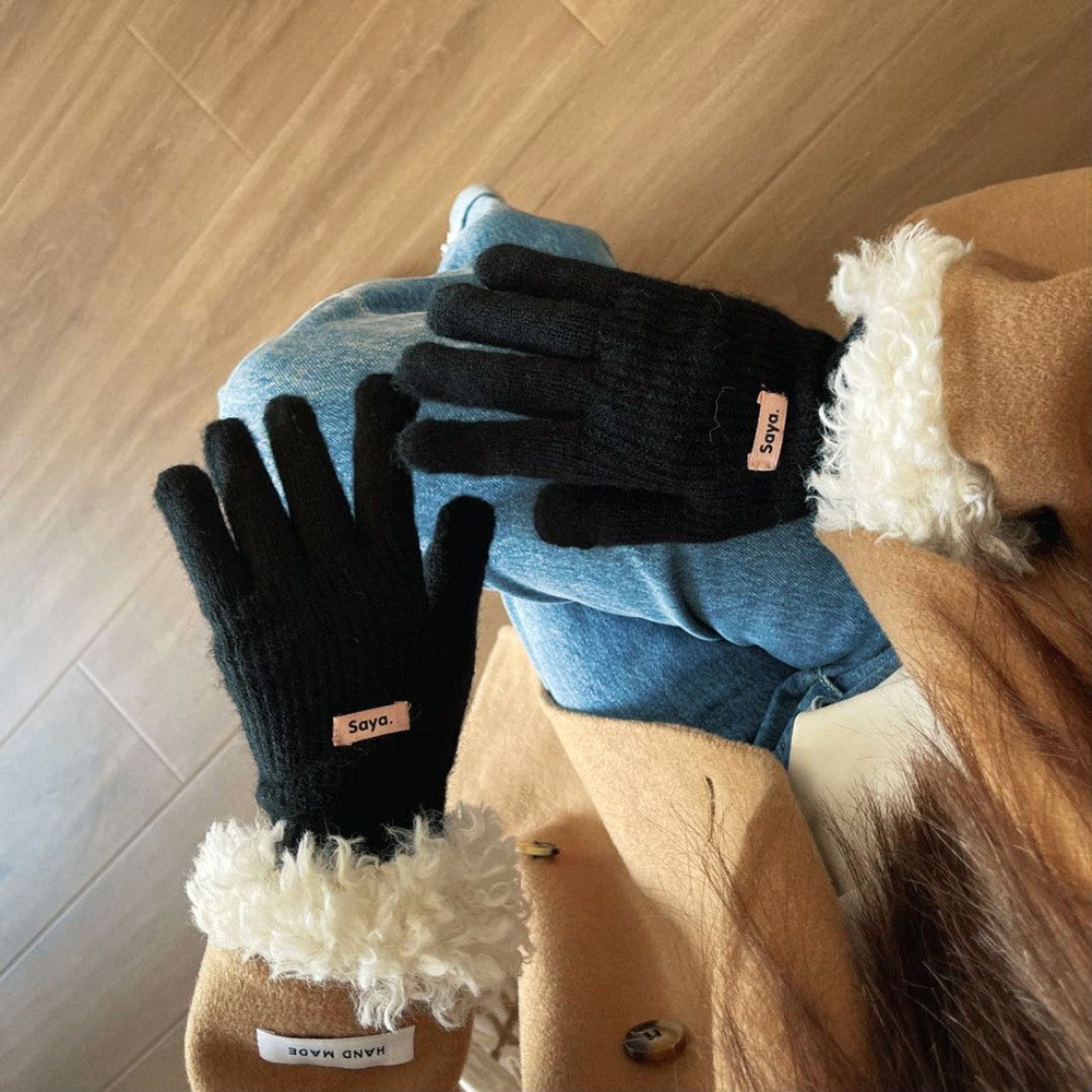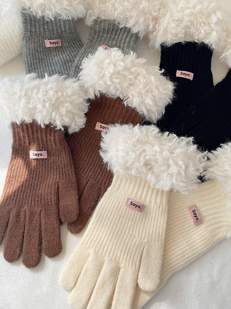 고가 마오 니트 울 장갑 여성용 이슬 두 손가락 풀 커버 터치 스크린 장갑 손목 방풍 및 보온 장갑스토어 가기