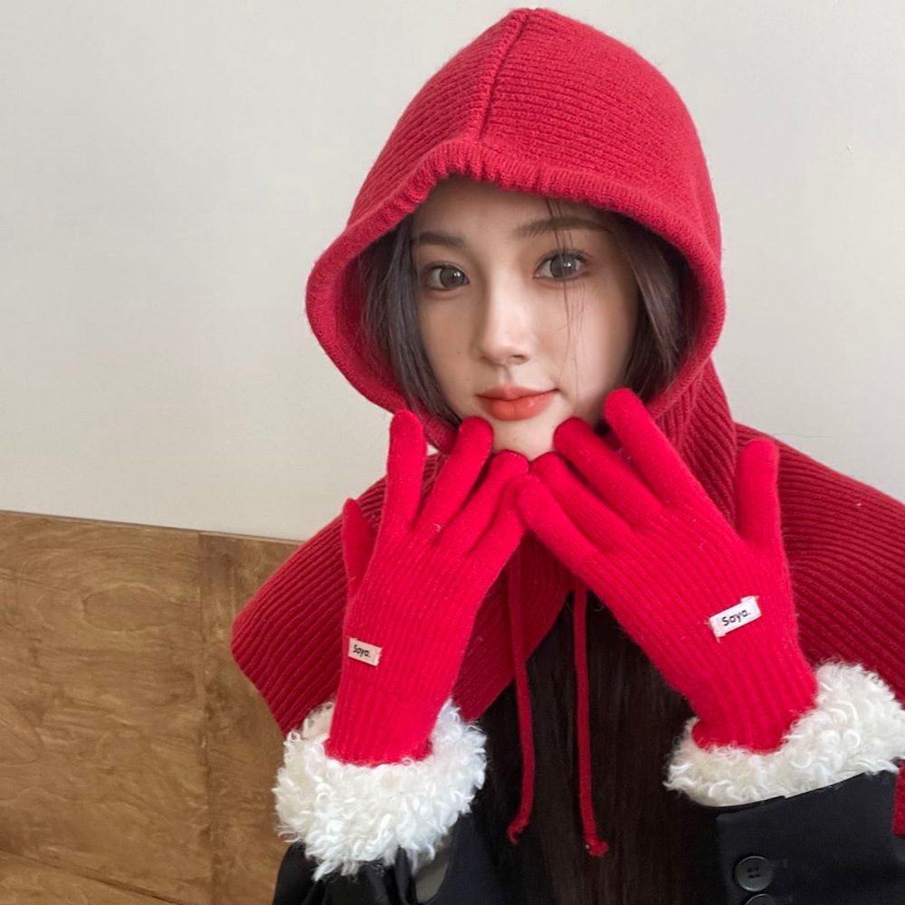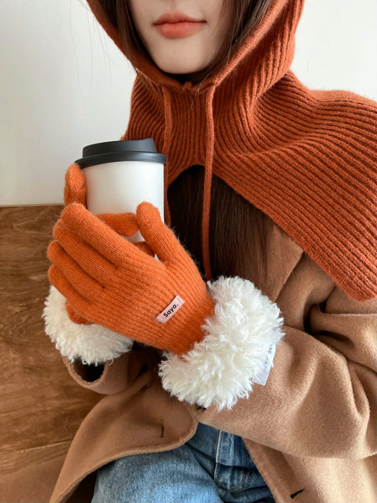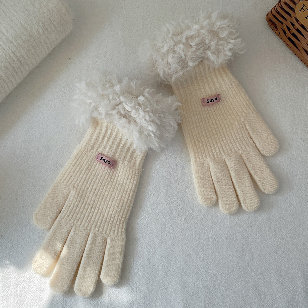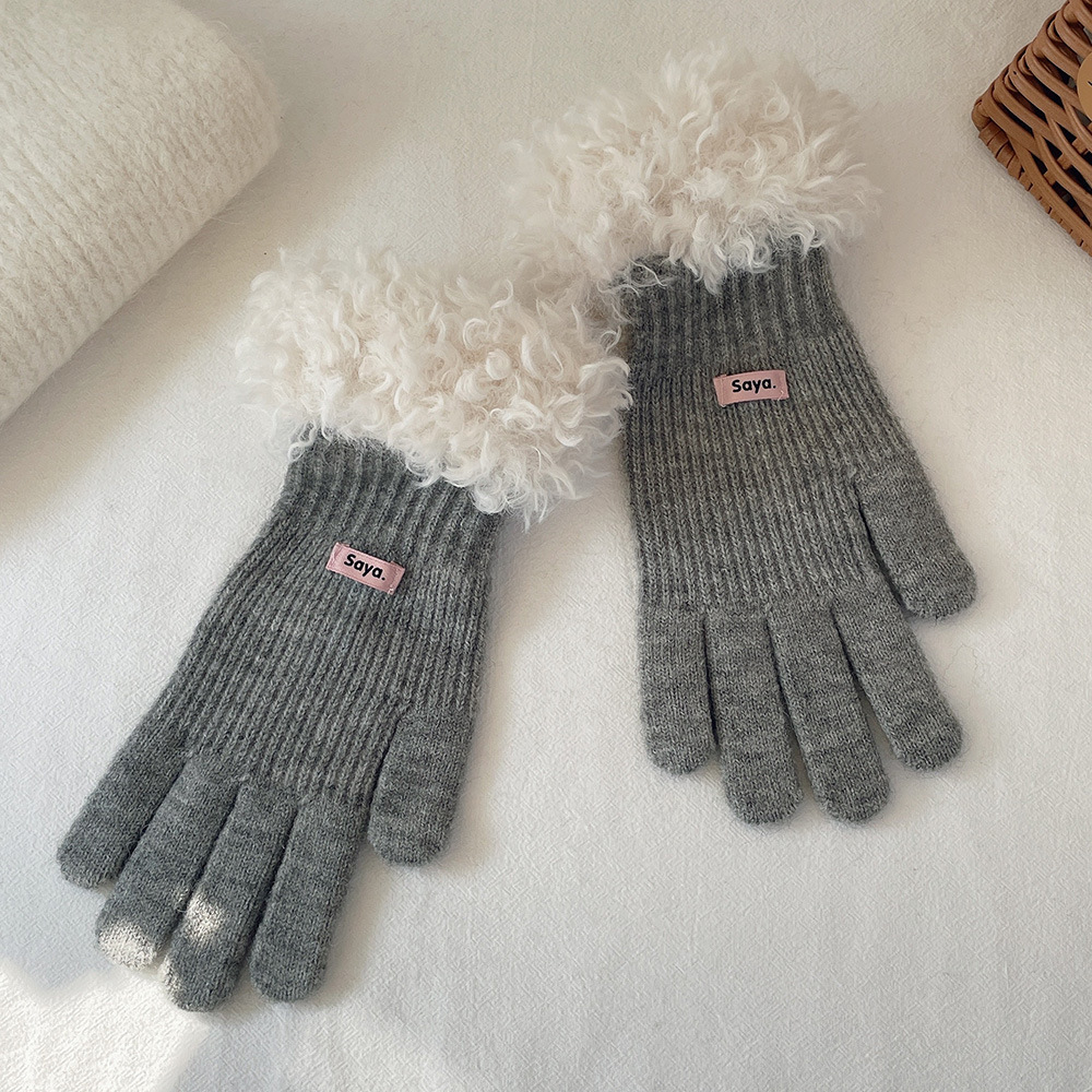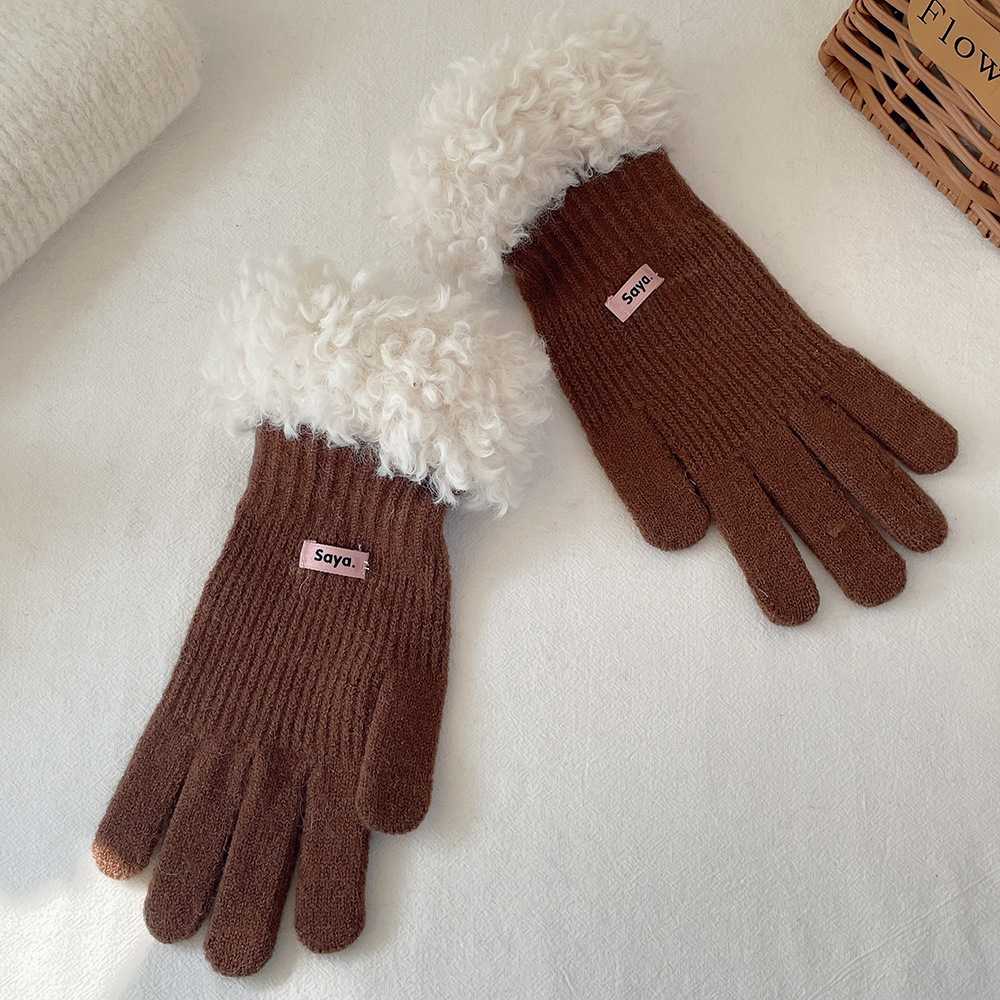고가 마오 니트 울 장갑 여성용 이슬 두 손가락 풀 커버 터치 스크린 장갑 손목 방풍 및 보온 장갑스토어 가기