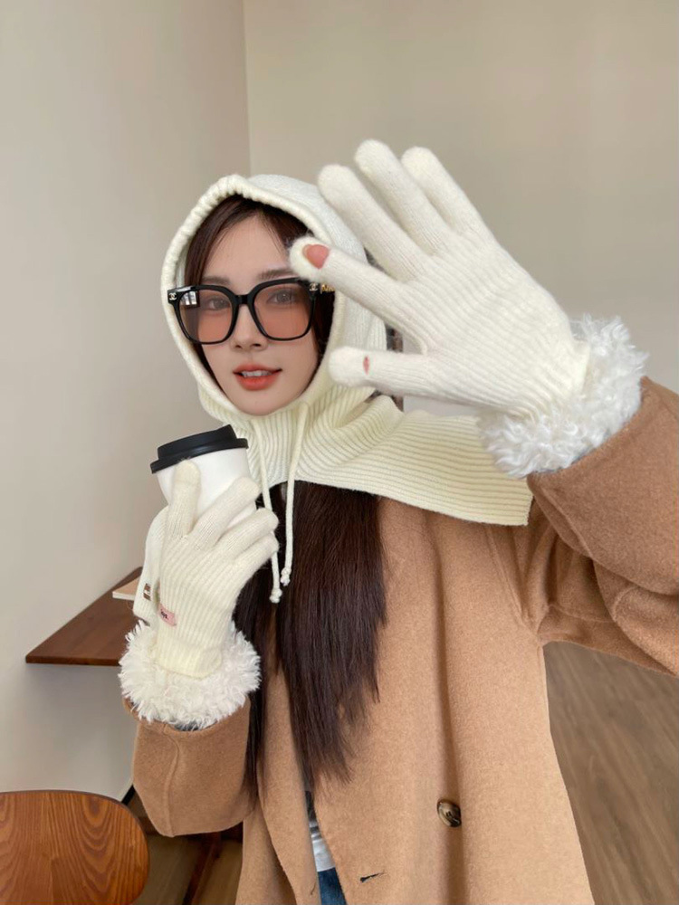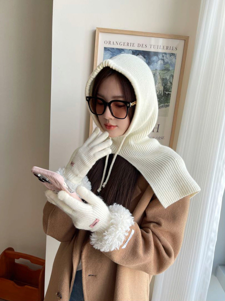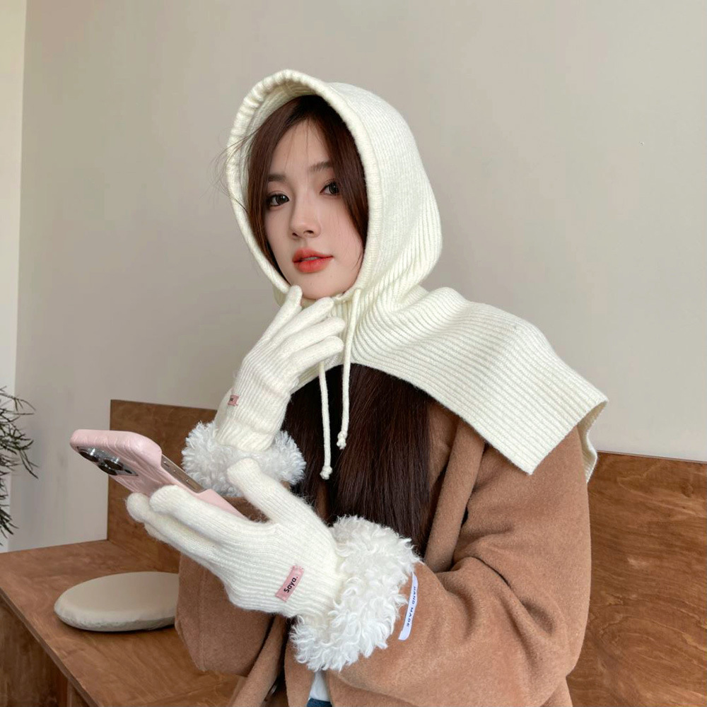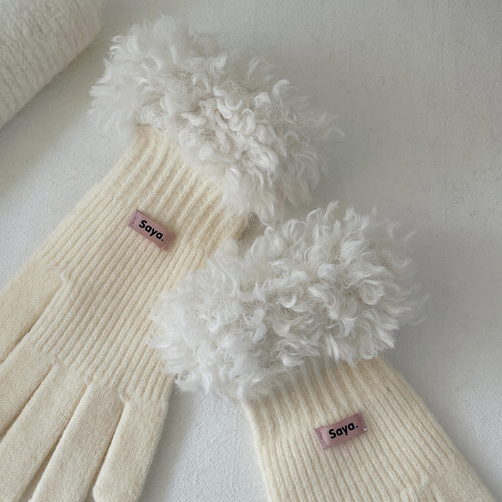 • 손목 마오 마오 루 두 손가락 장갑 밀크 화이트