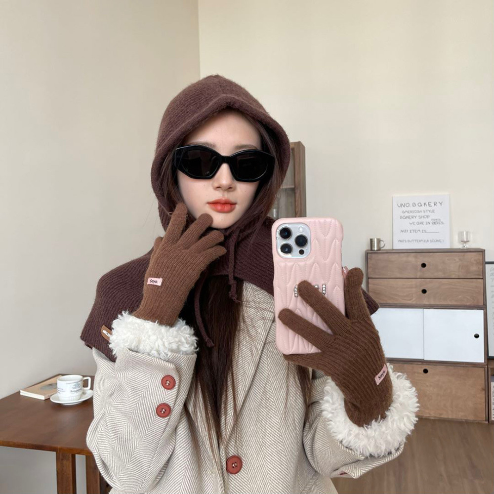 • 손목 마오마오 이슬 두 손가락 장갑 다크 브라운