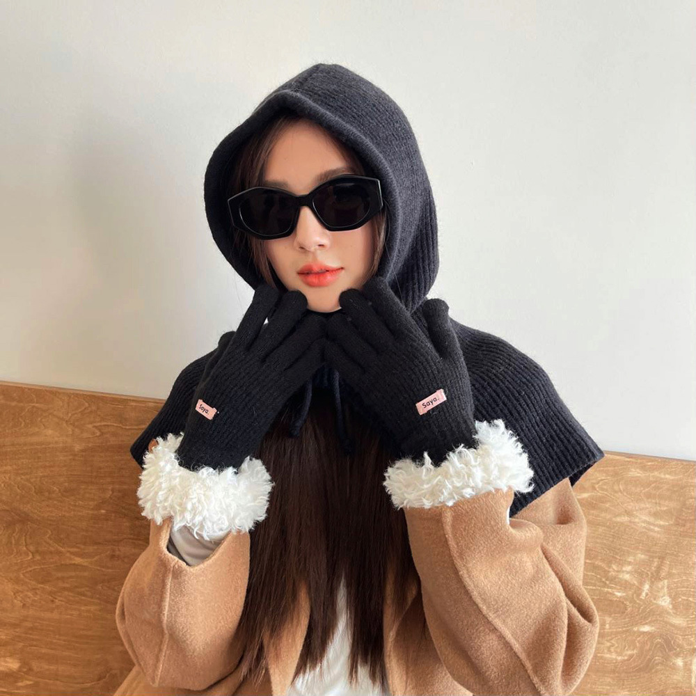 • 손목 마오마오 이슬 두 손가락 장갑 블랙