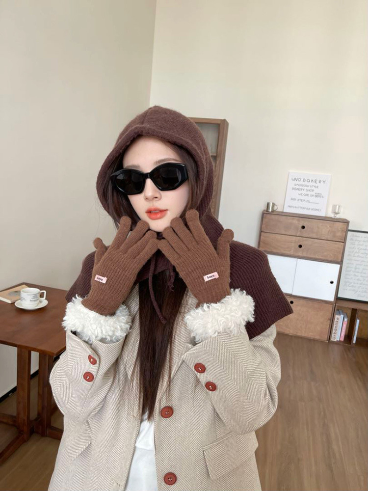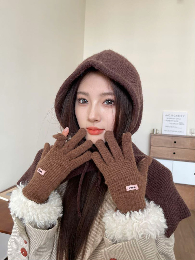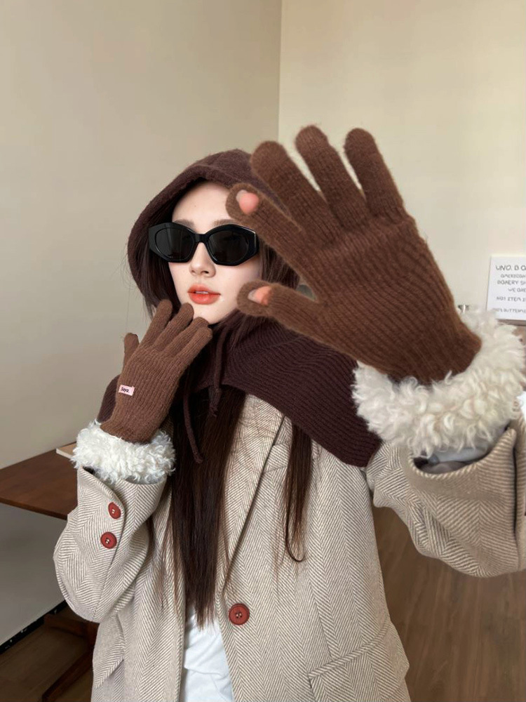 • 손목 마오 마오 루 두 손가락 장갑 다크 브라운