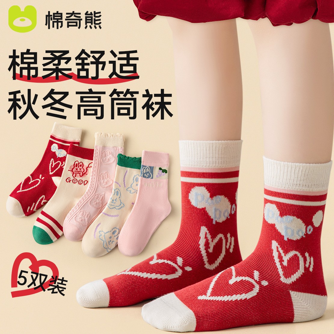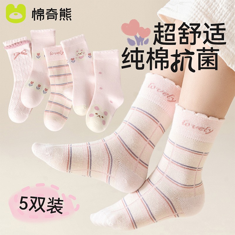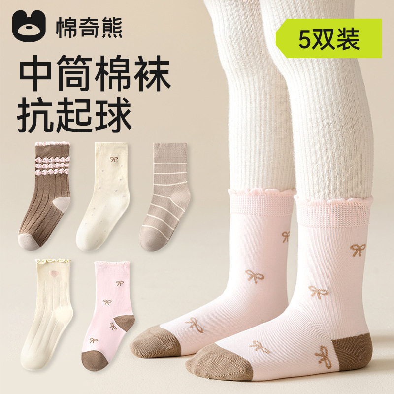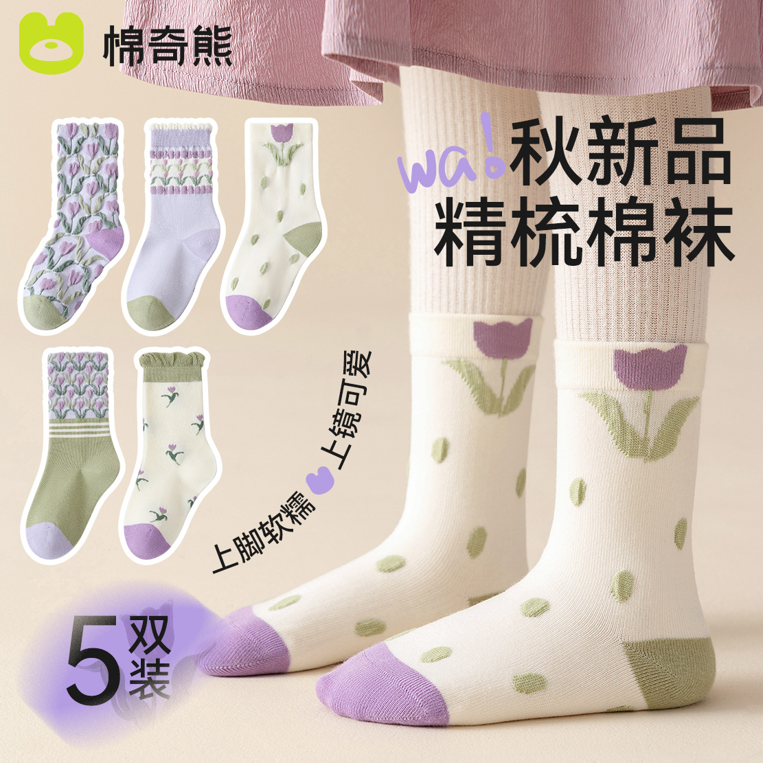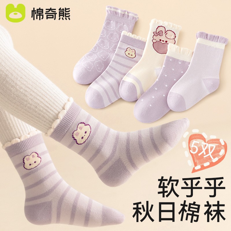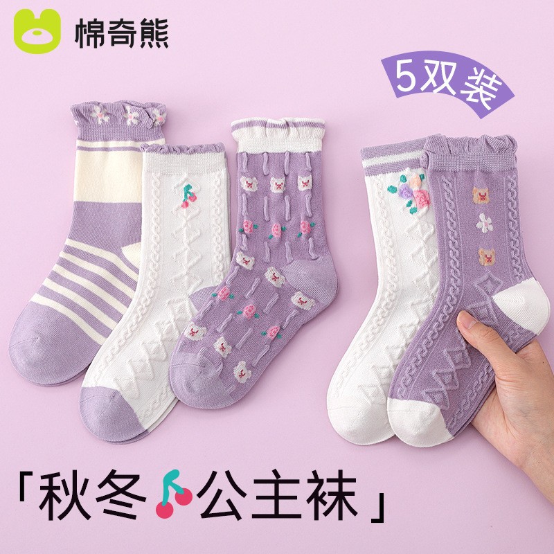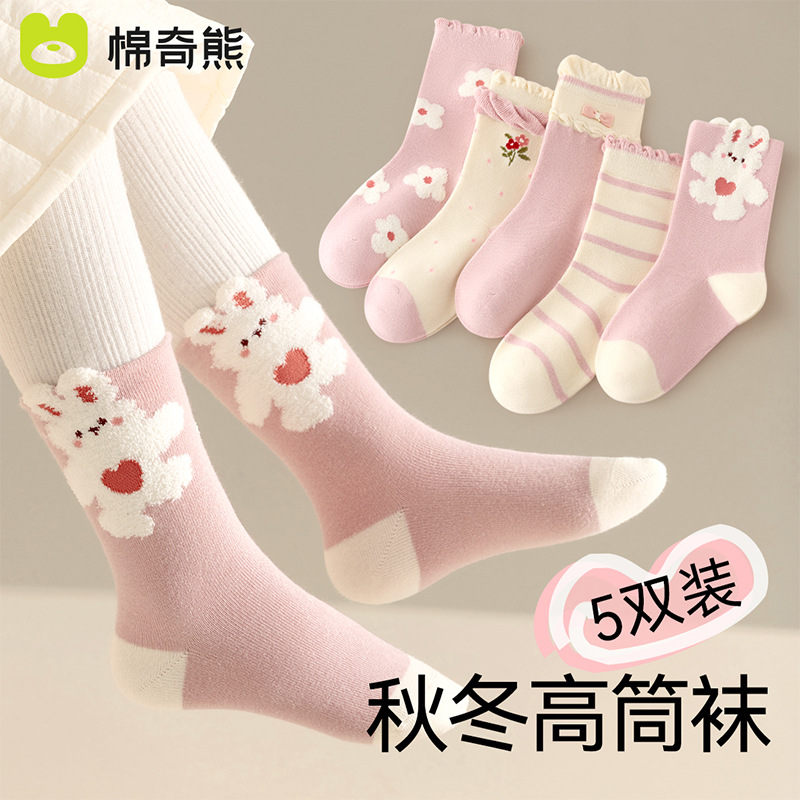 어린이 양말 소녀 가을과 겨울 코튼 중간 길이 양말 코튼 양말 아기 봄과 가을 소녀 겨울 긴 튜브 여성의 보물 어린이 양말